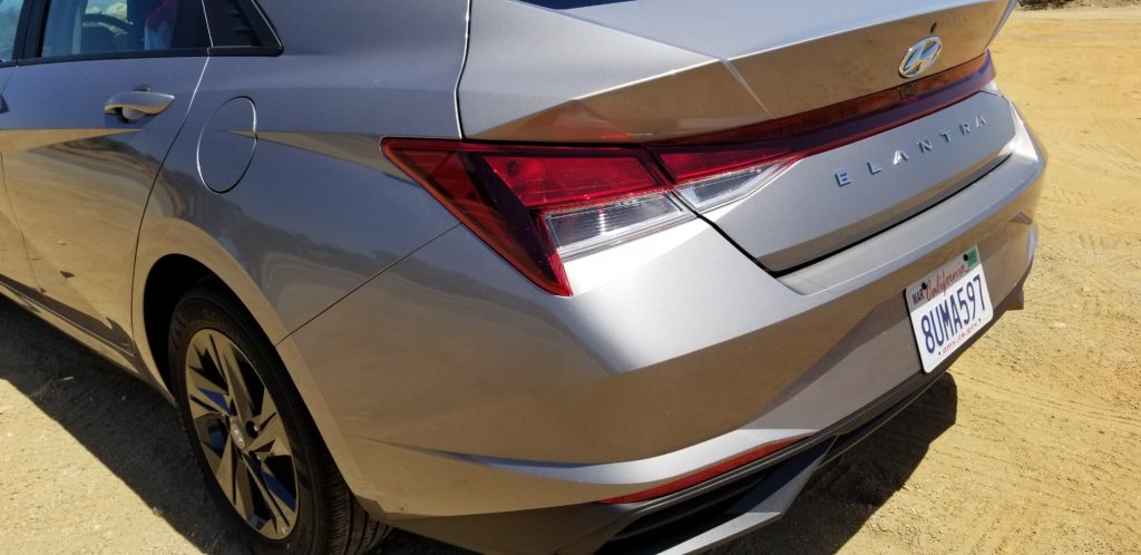 Moving to the side of the vehicle, you’ll notice the sharp character lines that run along the body, giving the Elantra a sense of dynamism and flow. The rear of the car is just as striking as the front, with a sculpted bumper and taillights that wrap around the sides of the vehicle.