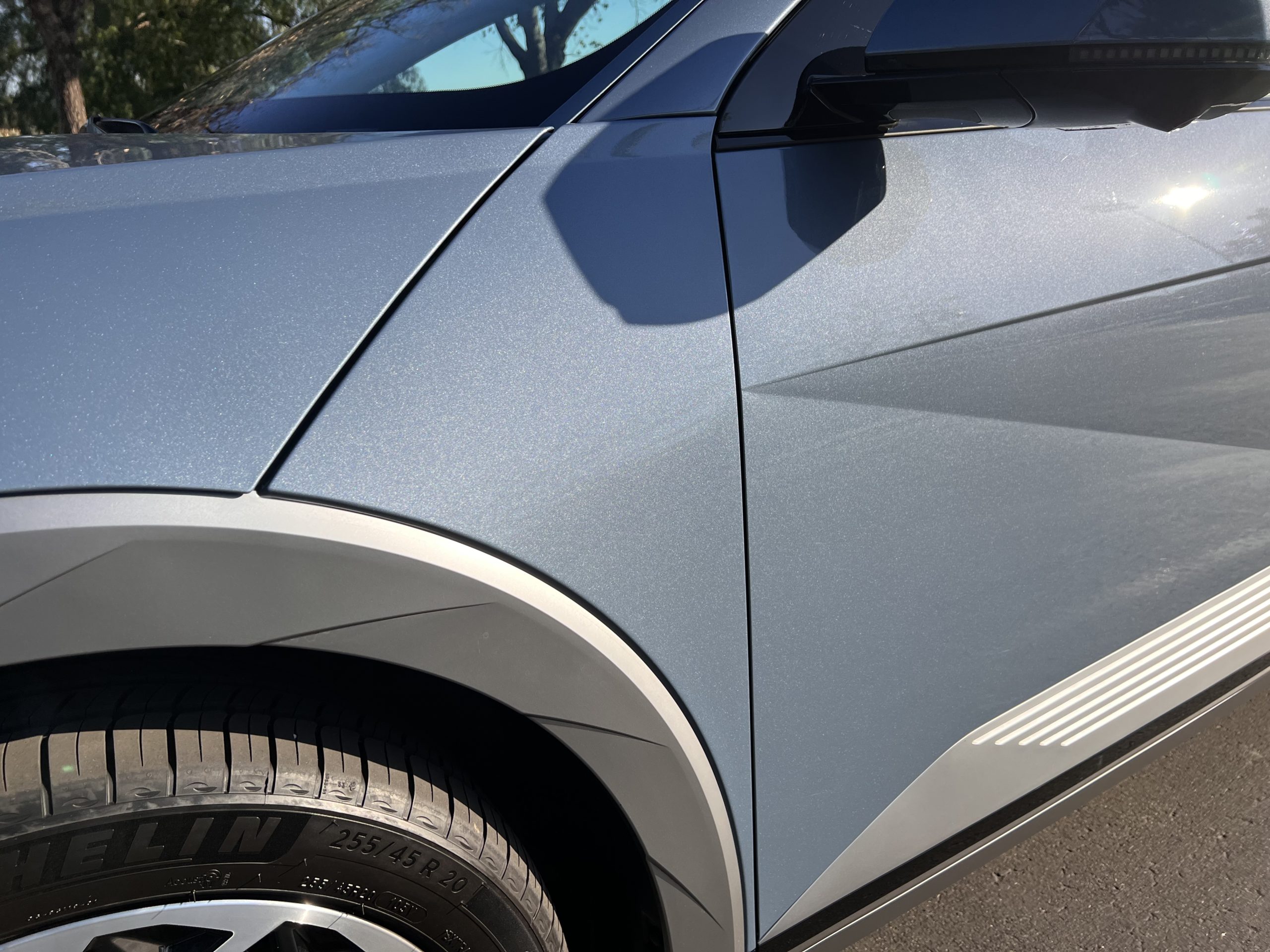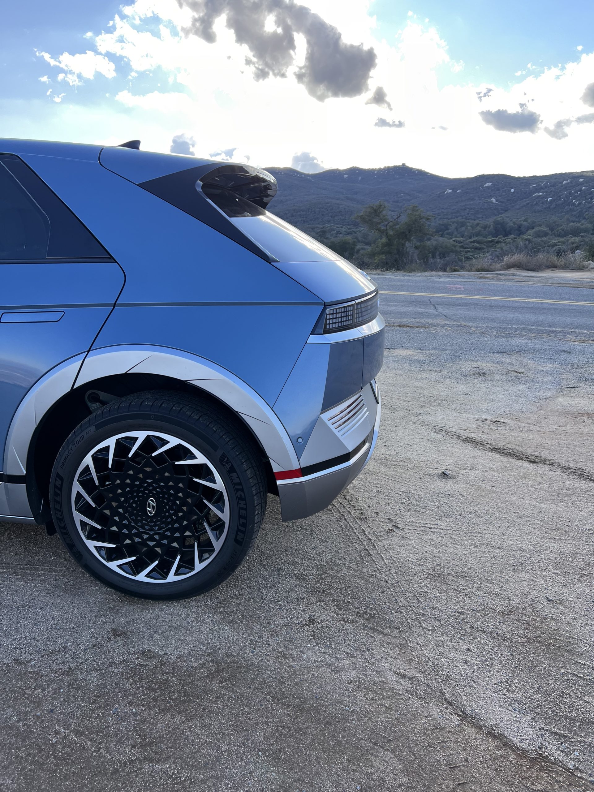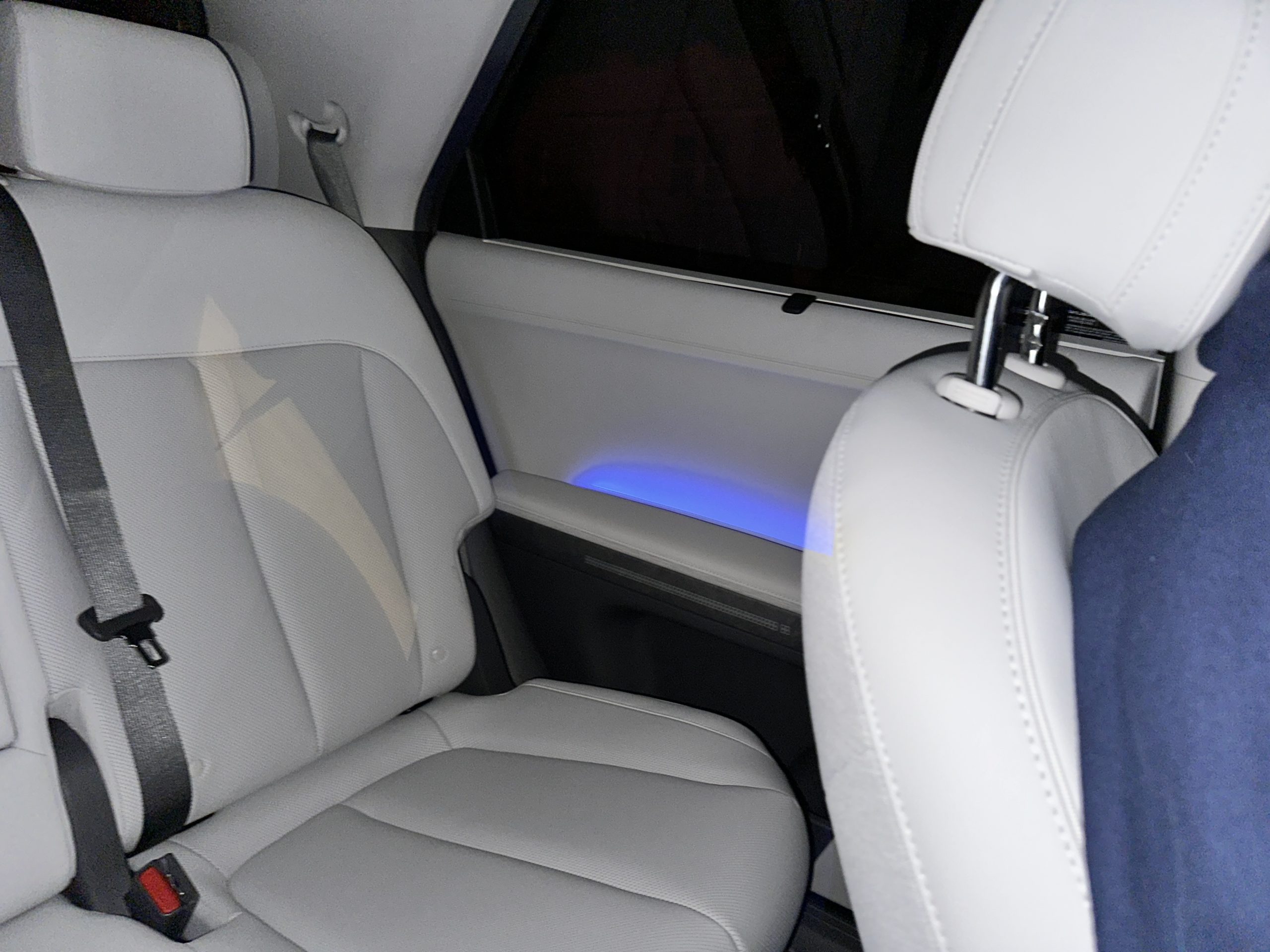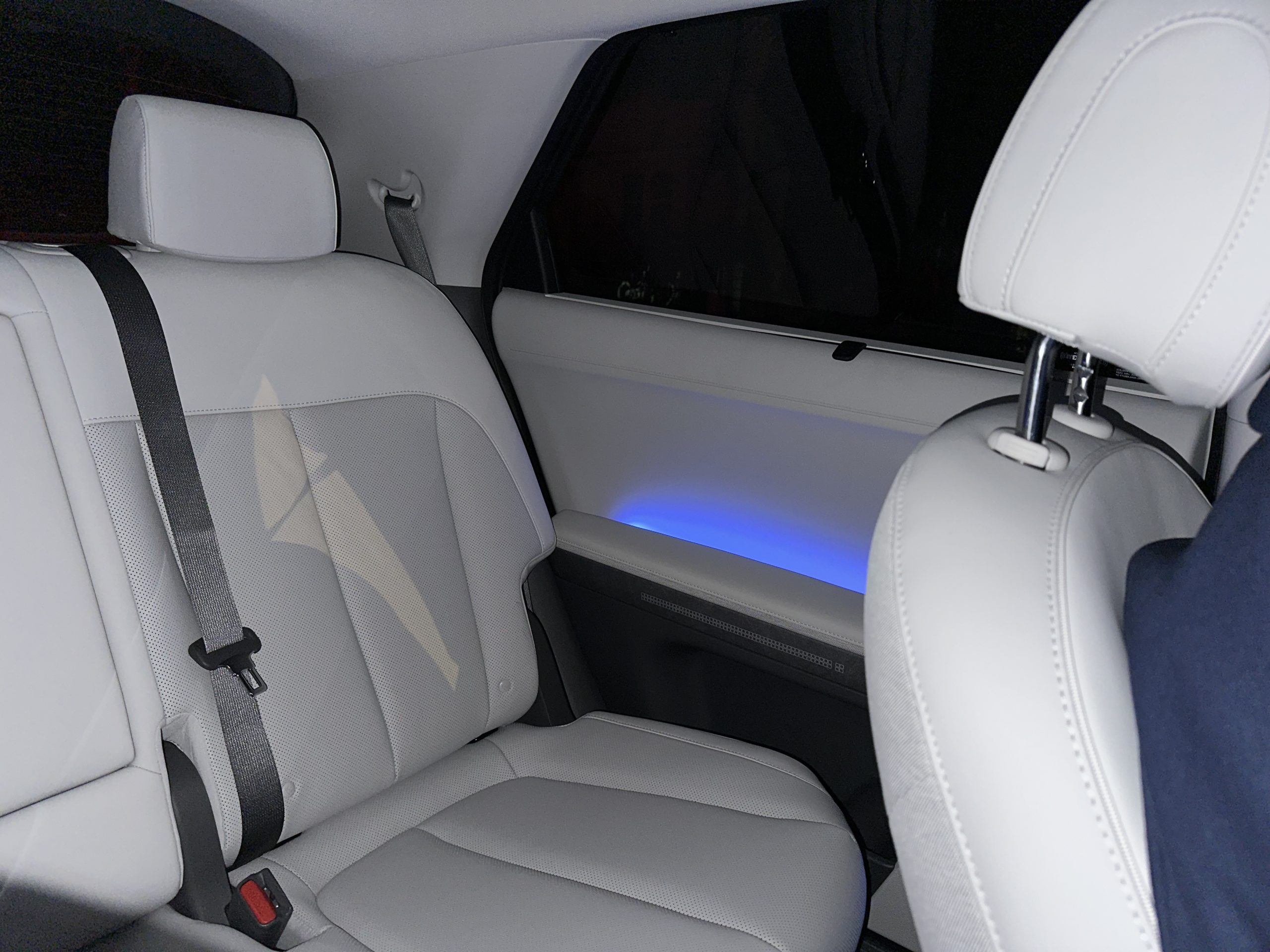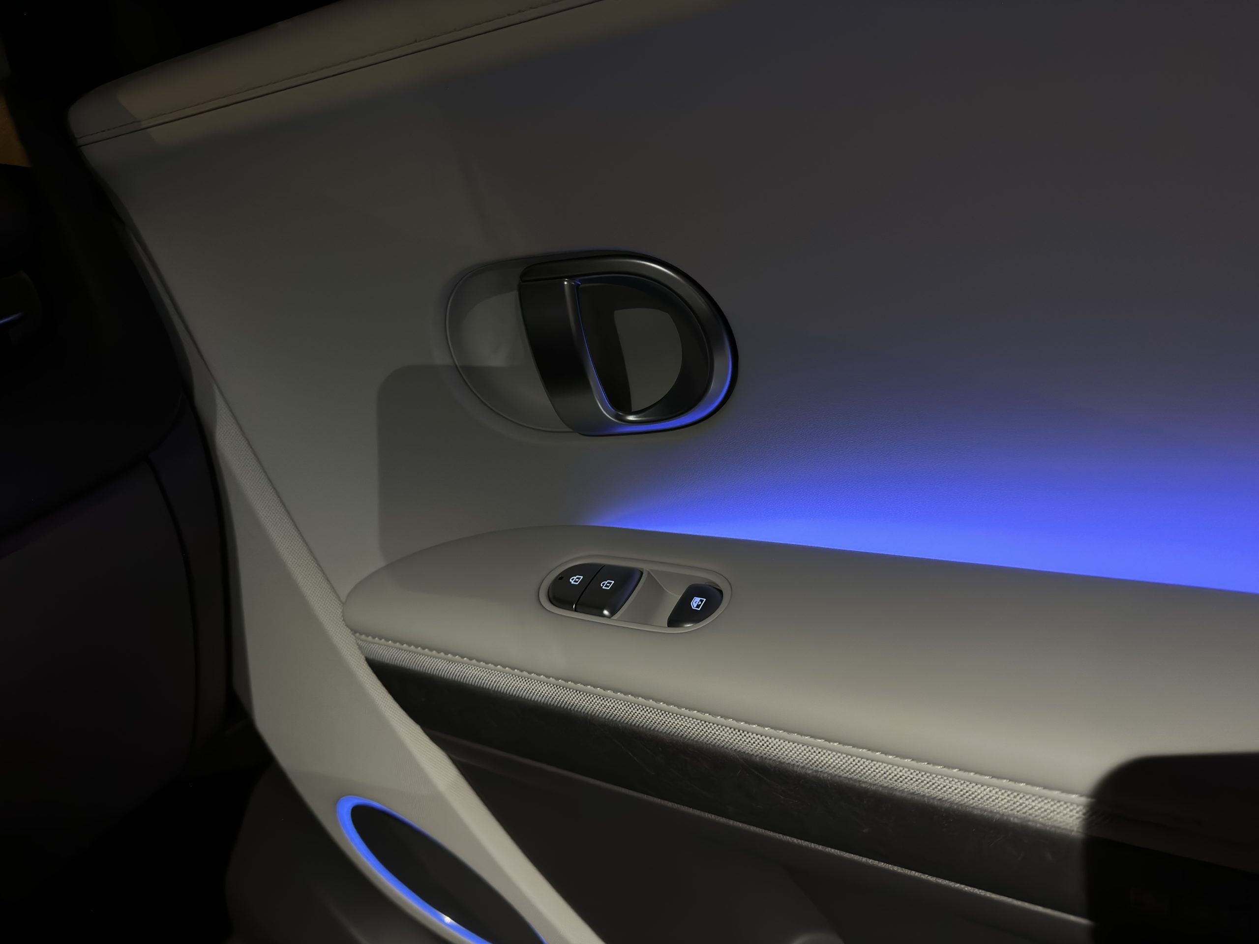 The consistent detailing on both exterior and interior, the pattern carried through harmoniously on eye catching details, never in an over-abundance but rather delicately tasteful. With the white interior this came out exceptionally well, as it matched perfectly with the ocean aqua exterior. It was all just right. The attention to detail was abundant everywhere. It was striking and made me feel to be in a very much higher category of vehicle. I realize the Genesis version of this platform is higher situated, but I doubt it can beat this Hyundai Ioniq5.
