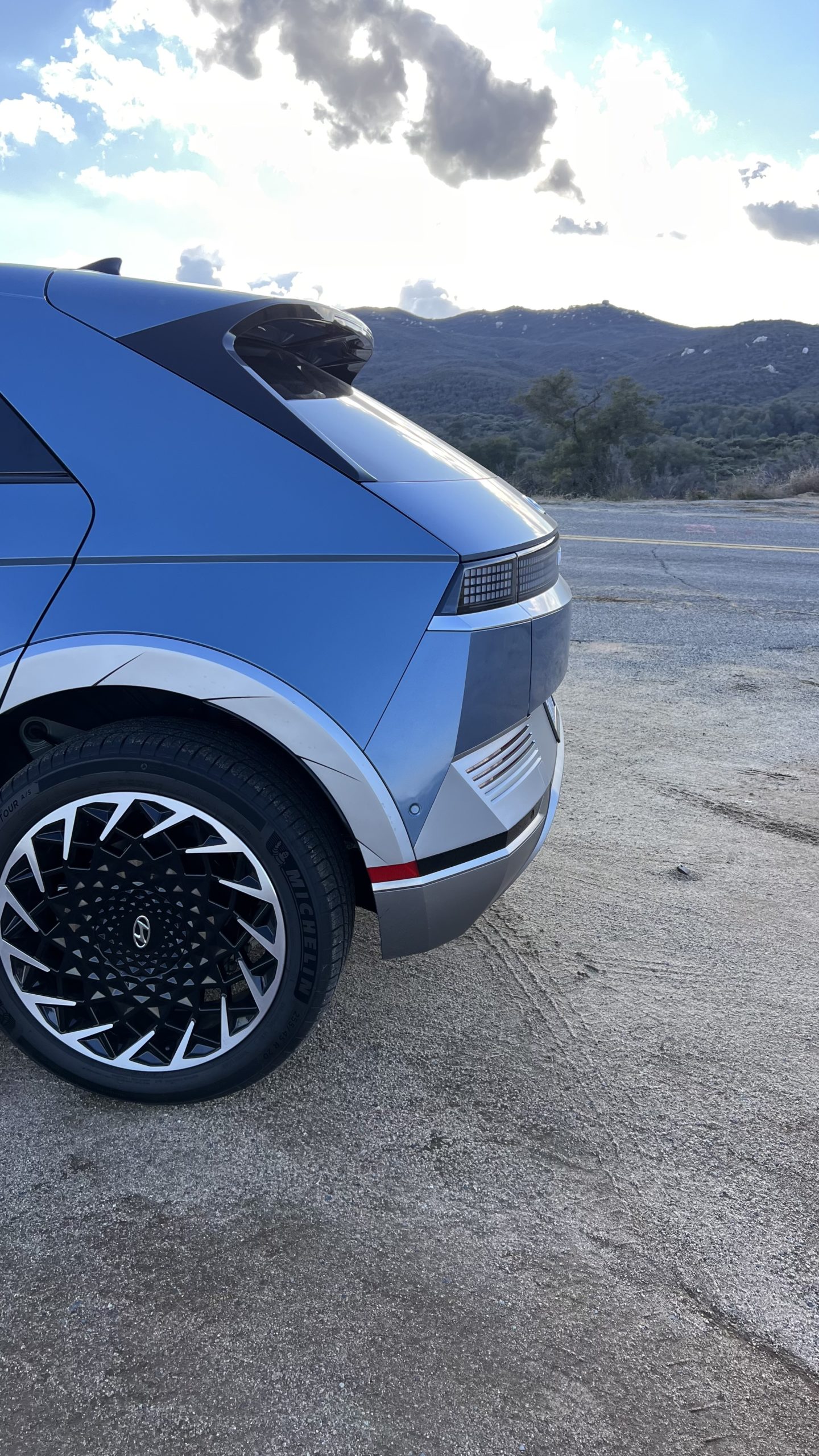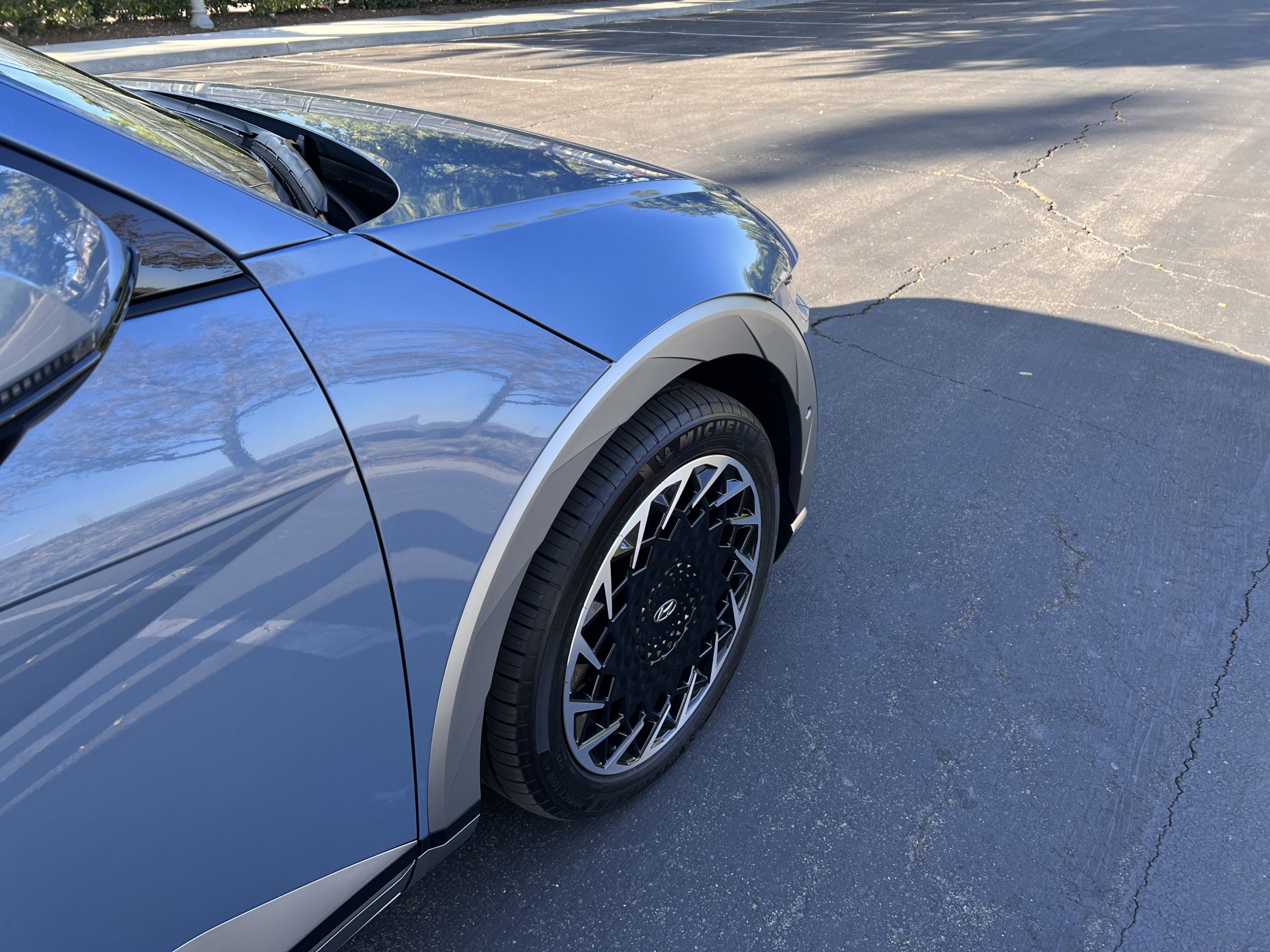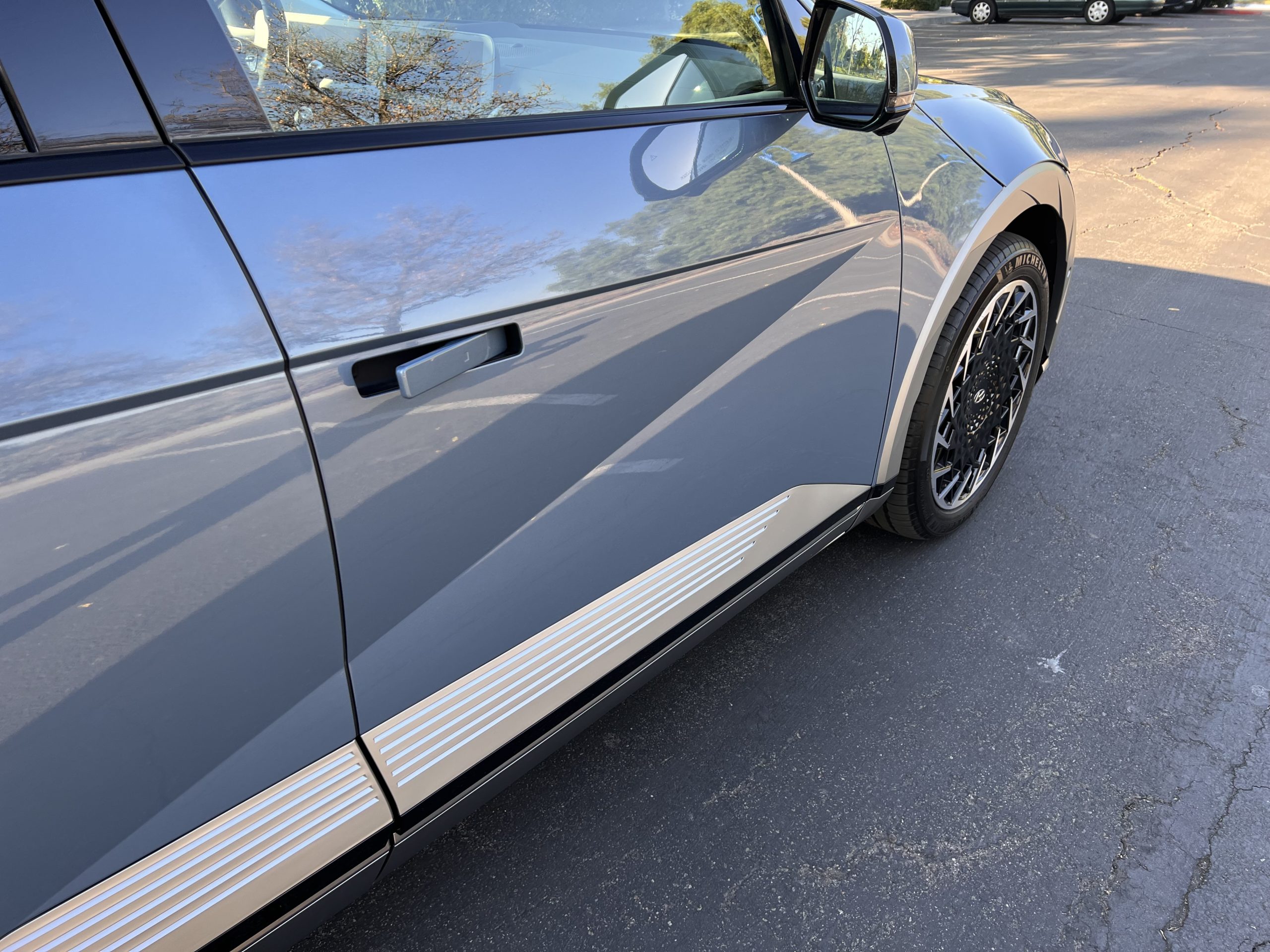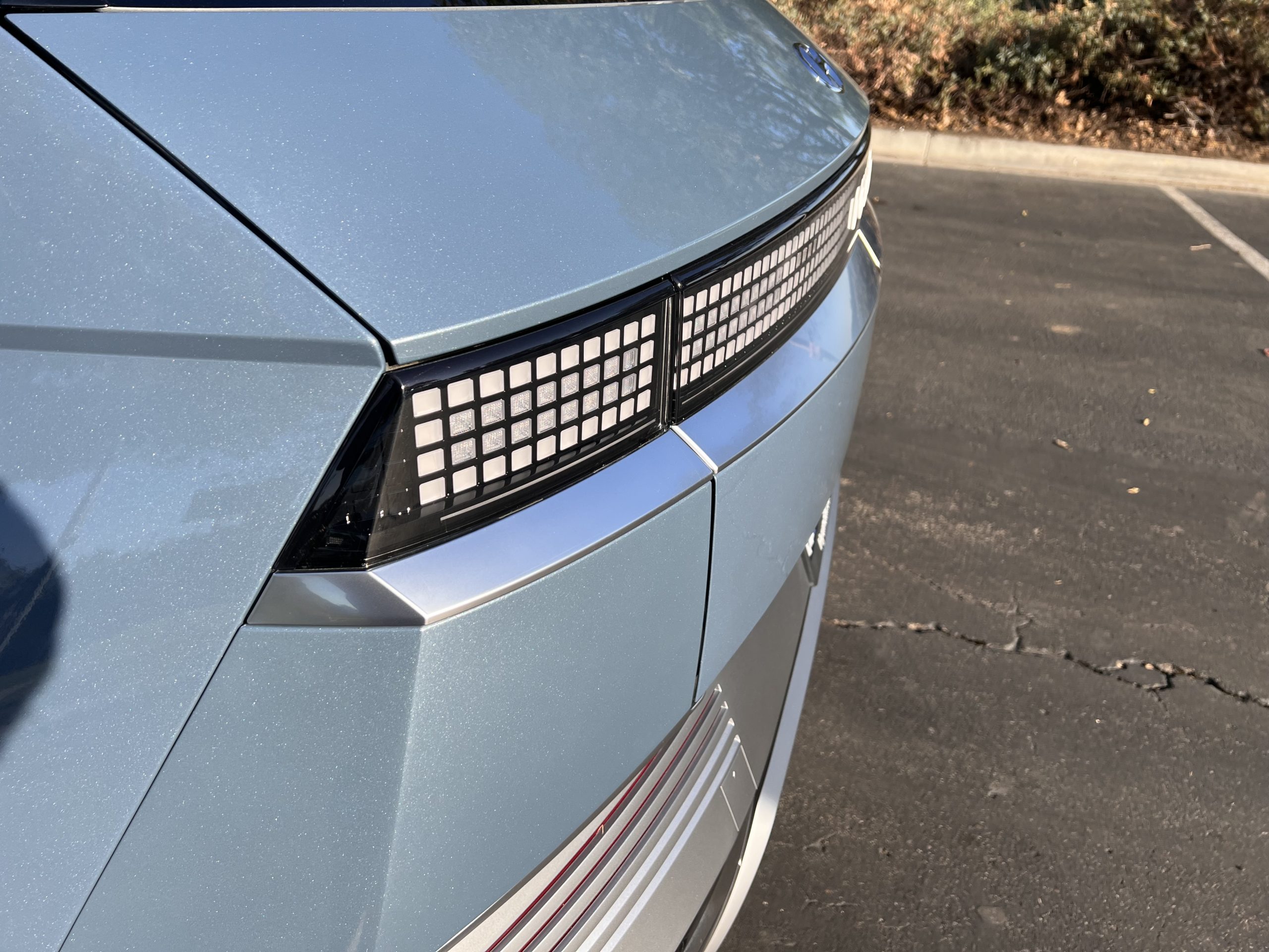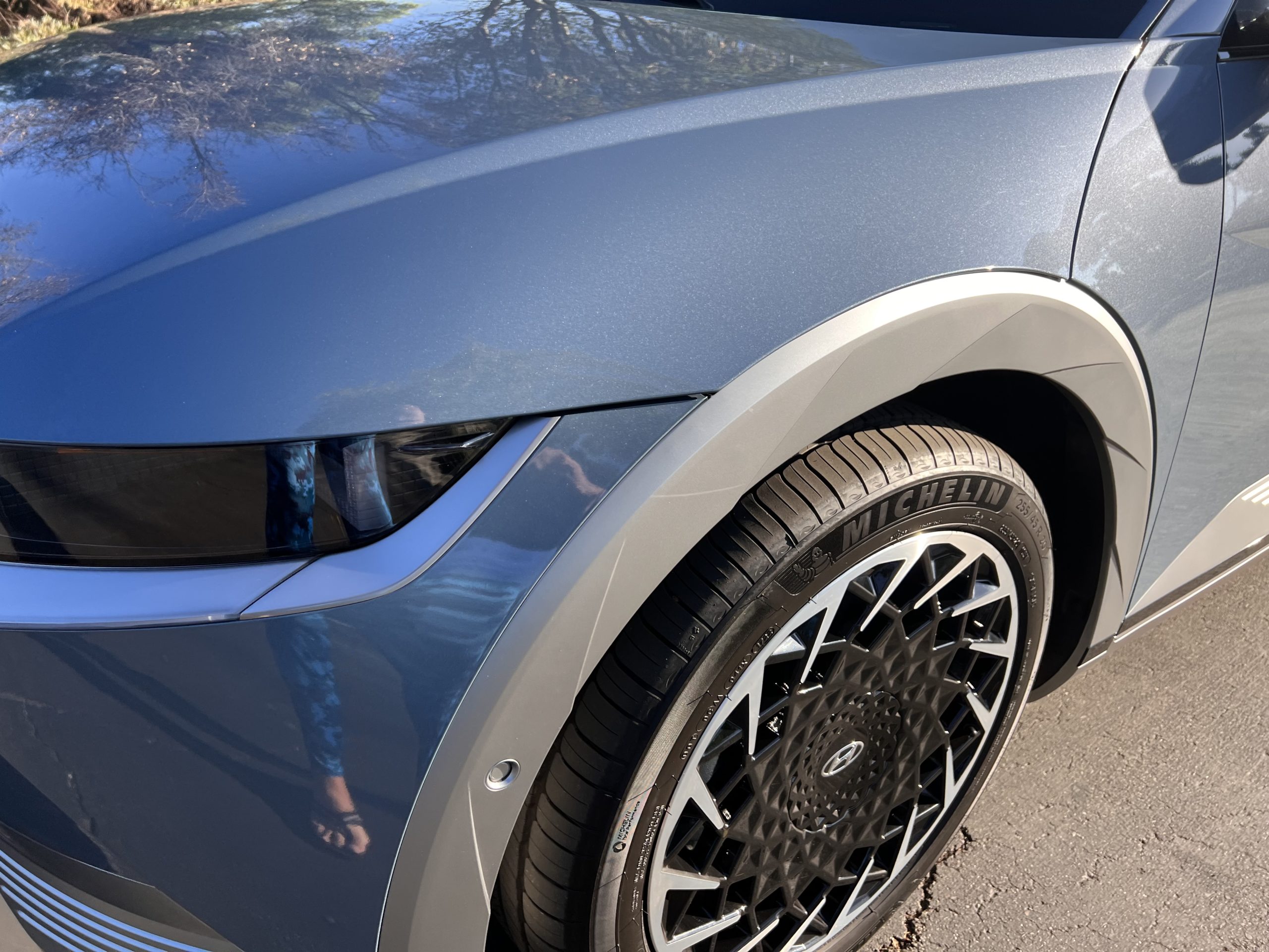 The consistent detailing on both exterior and interior, the pattern carried through harmoniously on eye catching details, never in an over-abundance but rather delicately tasteful. With the white interior this came out exceptionally well, as it matched perfectly with the ocean aqua exterior. It was all just right. The attention to detail was abundant everywhere. It was striking and made me feel to be in a very much higher category of vehicle. I realize the Genesis version of this platform is higher situated, but I doubt it can beat this Hyundai Ioniq5.