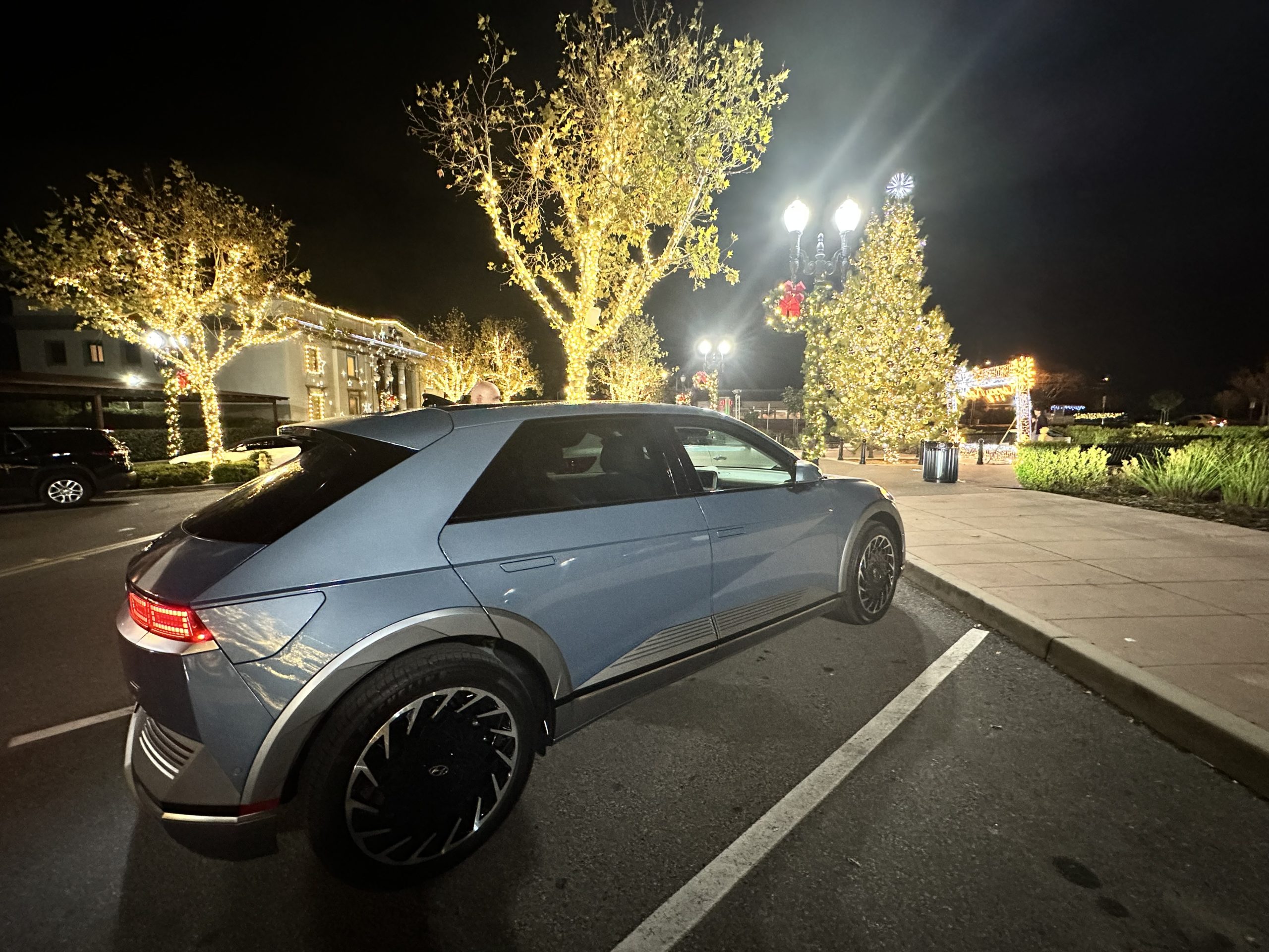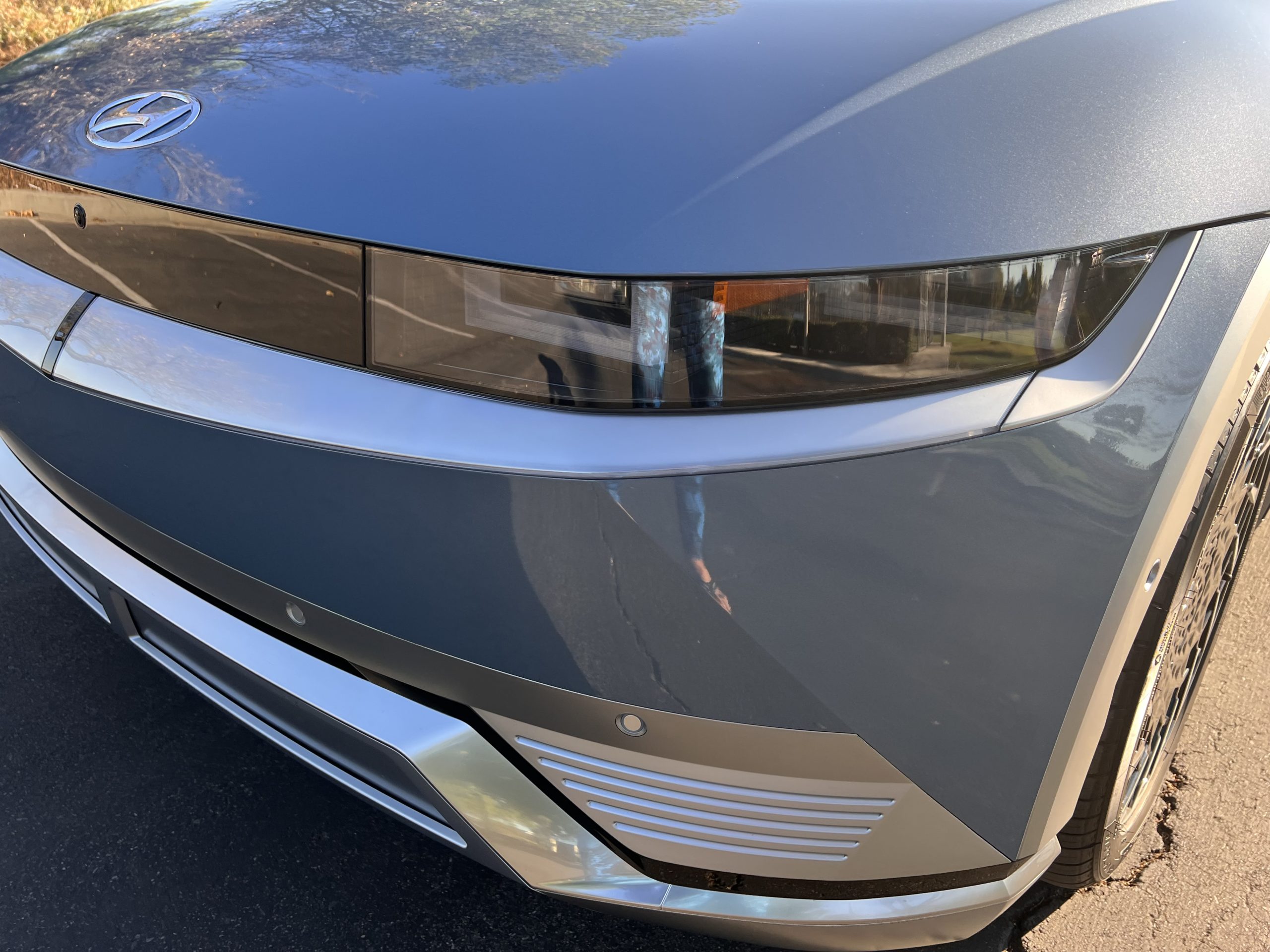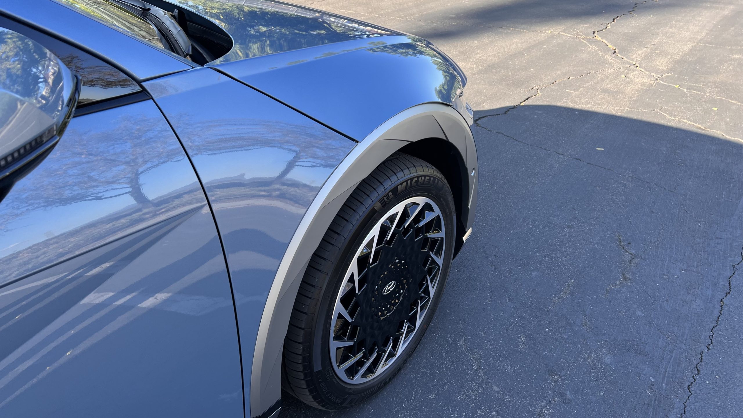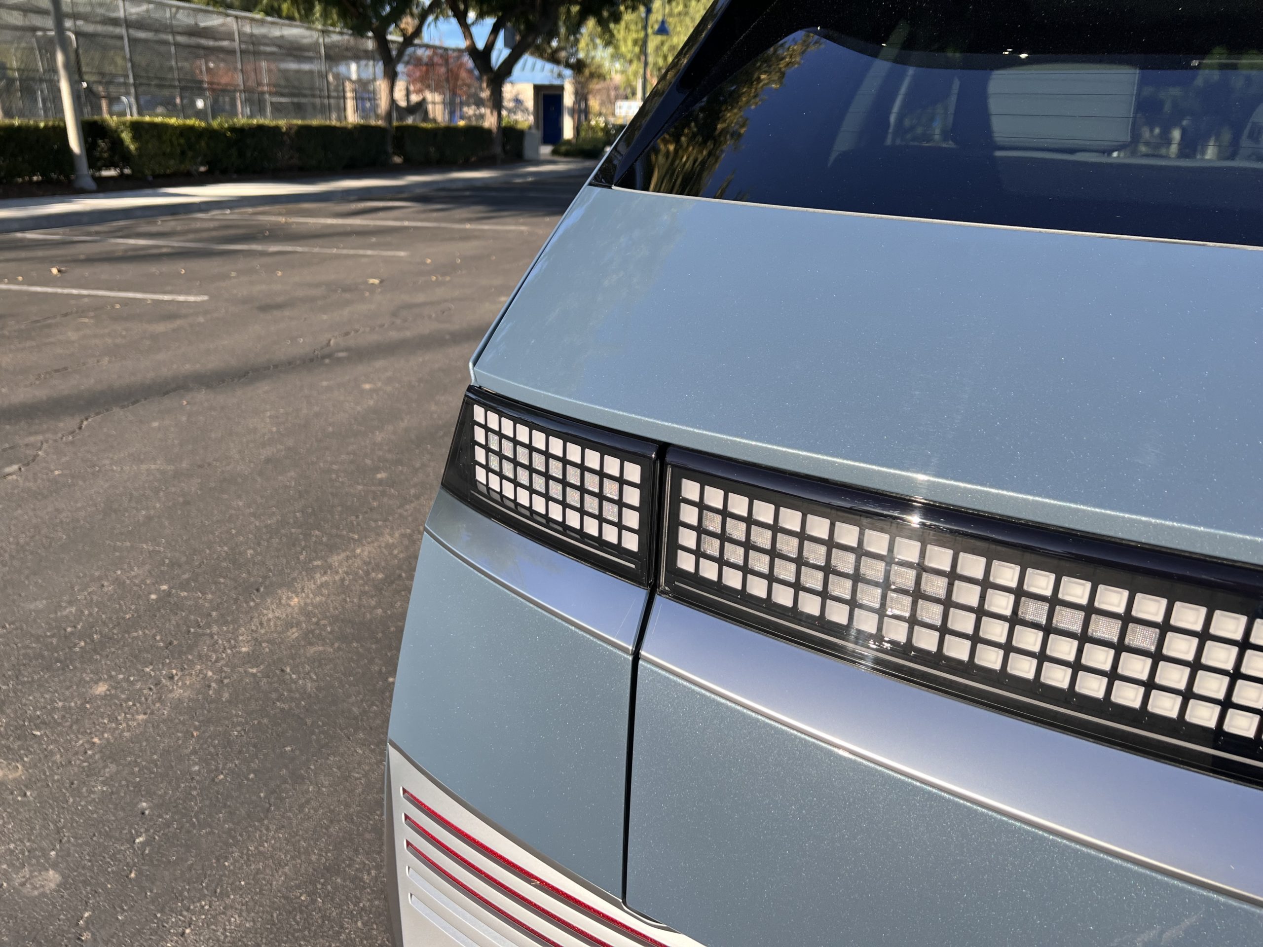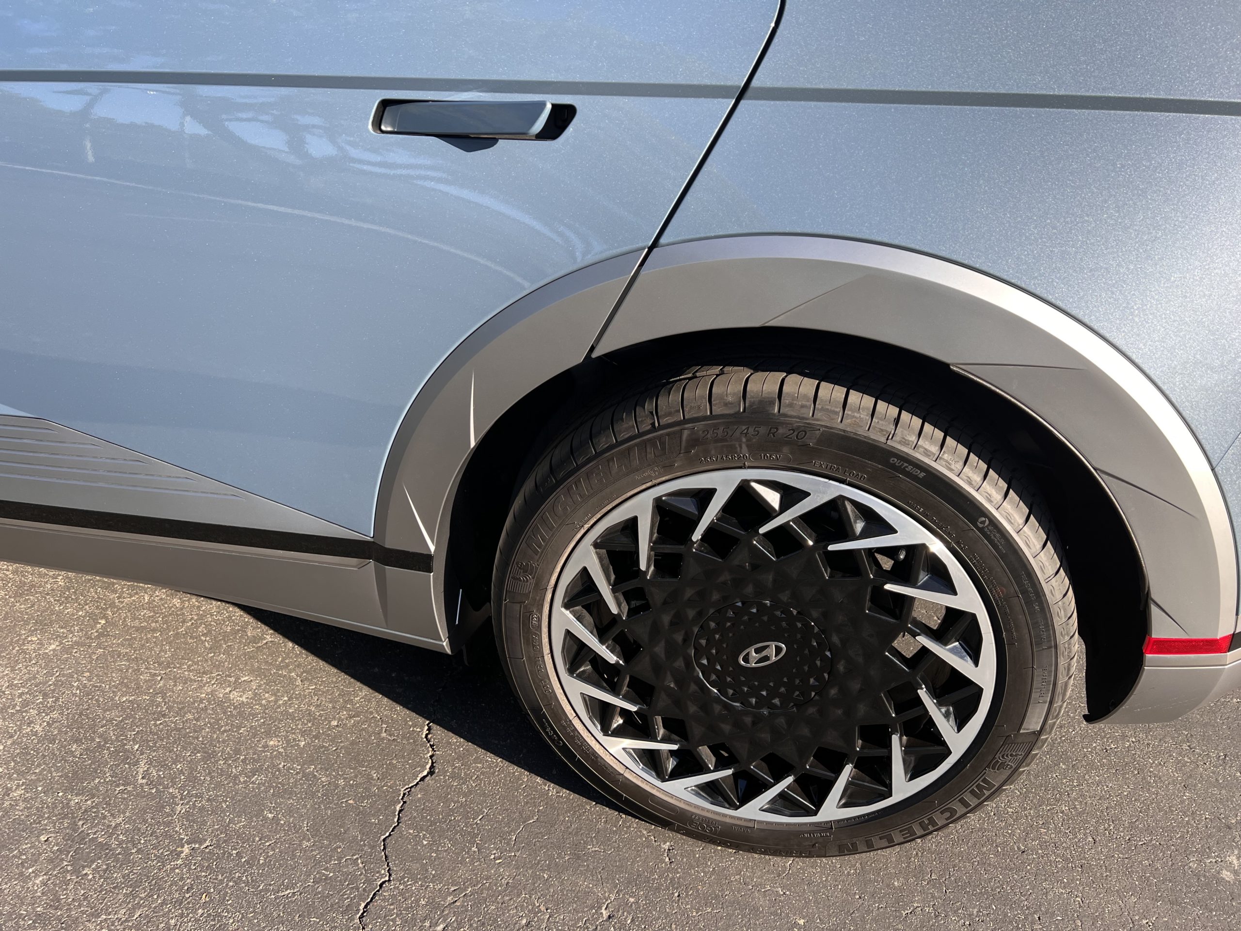 The consistent detailing on both exterior and interior, the pattern carried through harmoniously on eye catching details, never in an over-abundance but rather delicately tasteful. With the white interior this came out exceptionally well, as it matched perfectly with the ocean aqua exterior. It was all just right. The attention to detail was abundant everywhere. It was striking and made me feel to be in a very much higher category of vehicle. I realize the Genesis version of this platform is higher situated, but I doubt it can beat this Hyundai Ioniq5.
