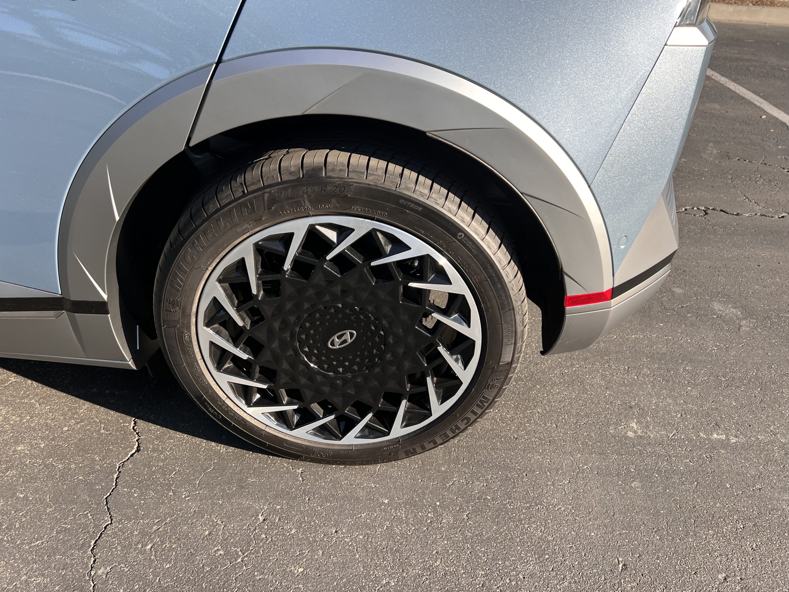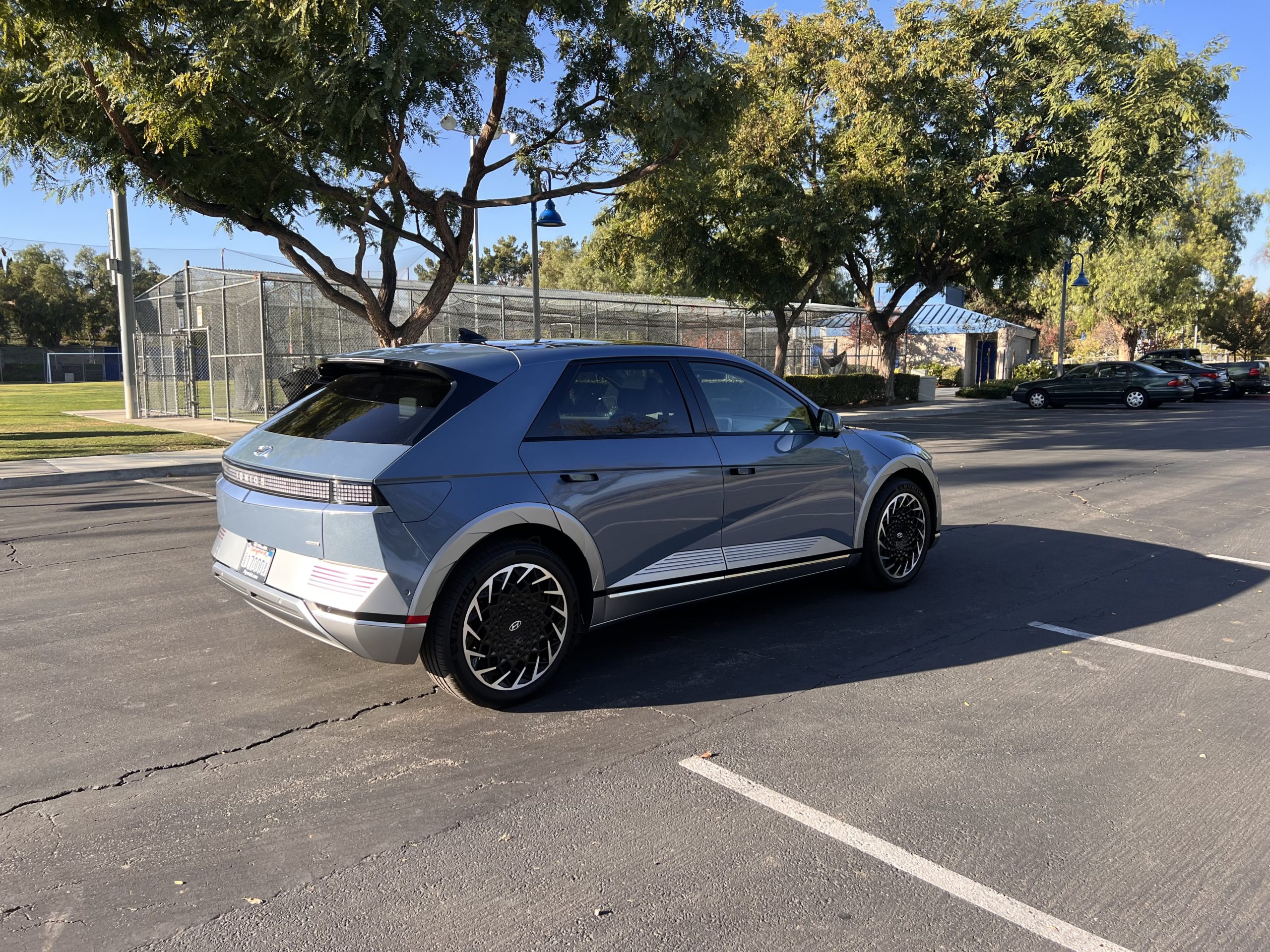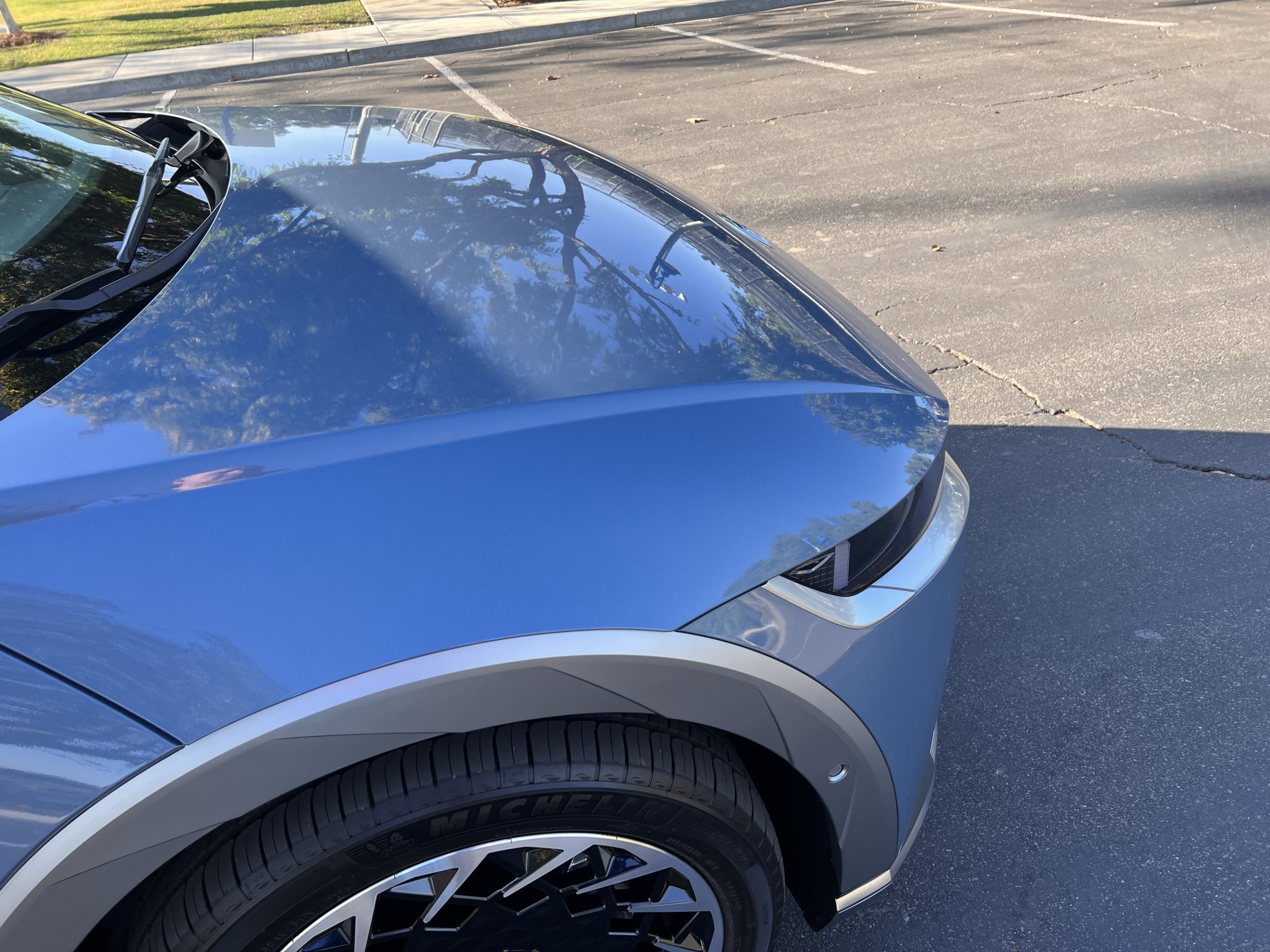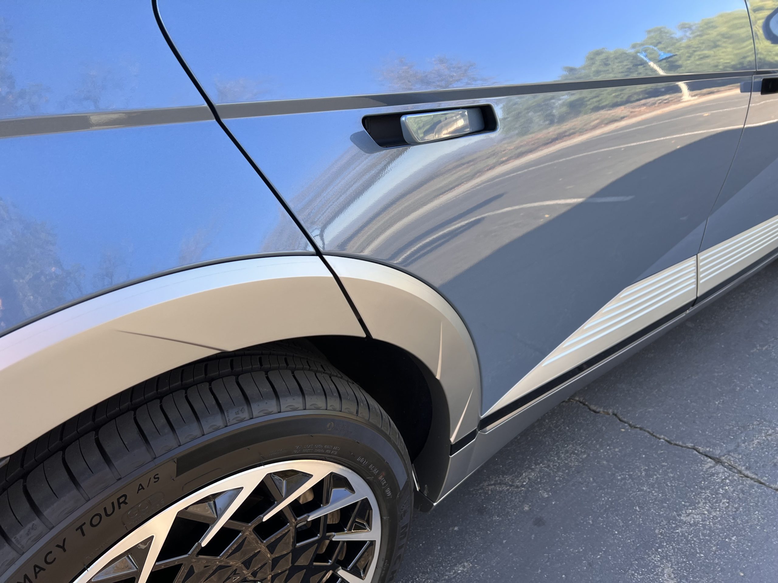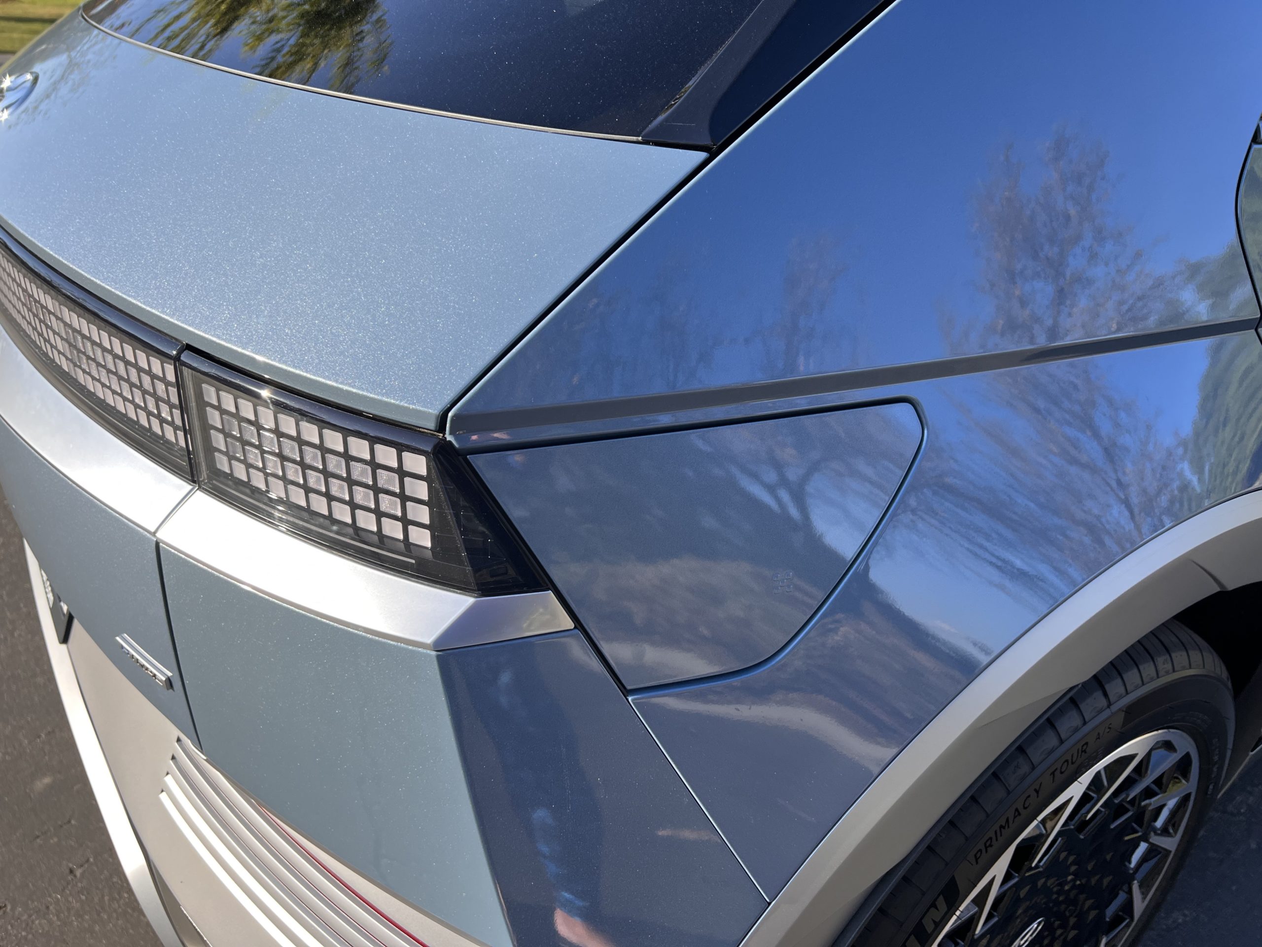 The consistent detailing on both exterior and interior, the pattern carried through harmoniously on eye catching details, never in an over-abundance but rather delicately tasteful. With the white interior this came out exceptionally well, as it matched perfectly with the ocean aqua exterior. It was all just right. The attention to detail was abundant everywhere. It was striking and made me feel to be in a very much higher category of vehicle. I realize the Genesis version of this platform is higher situated, but I doubt it can beat this Hyundai Ioniq5.
