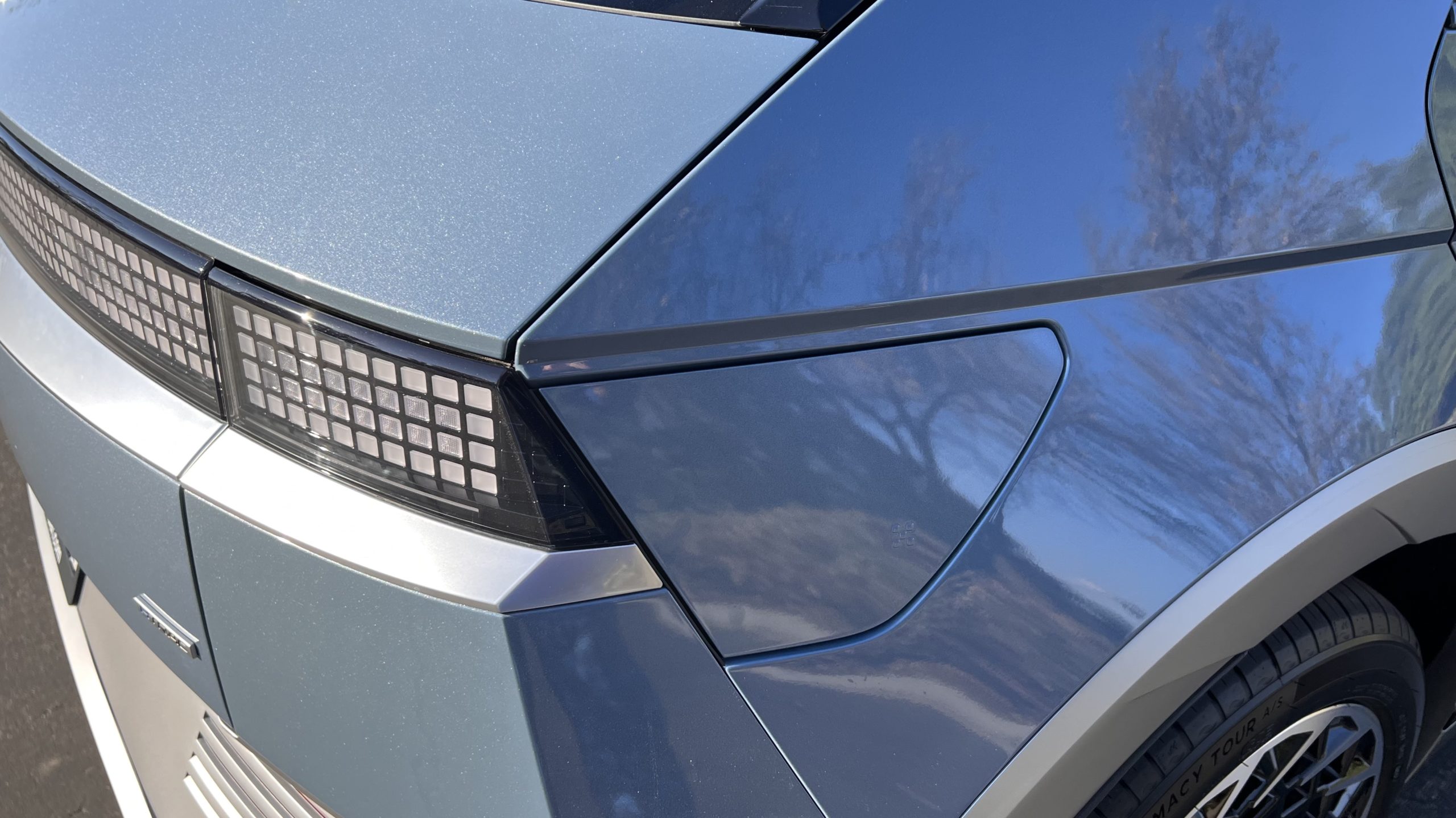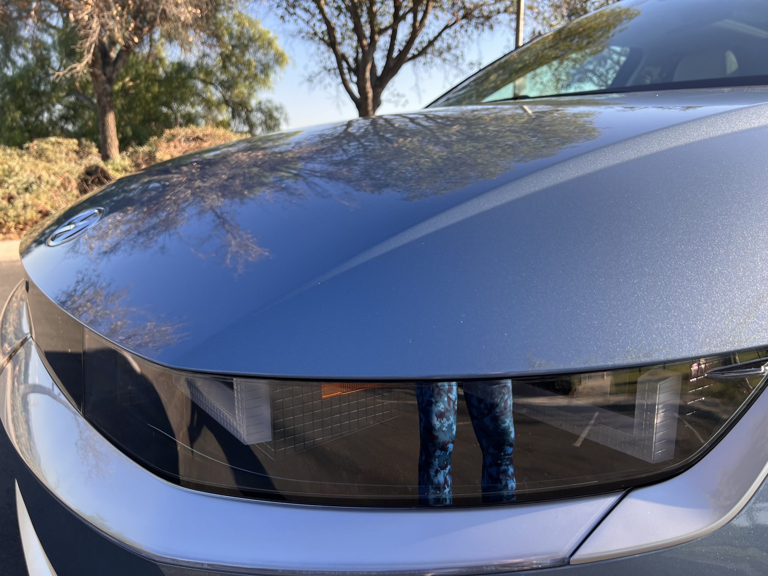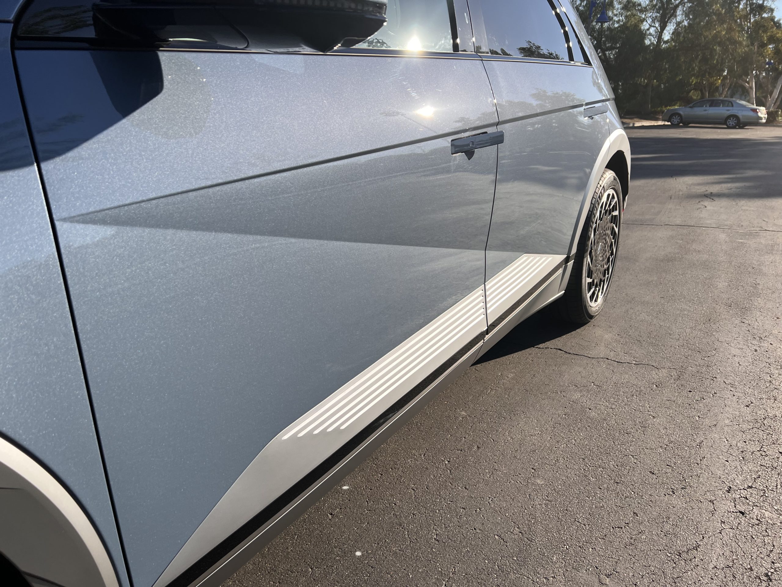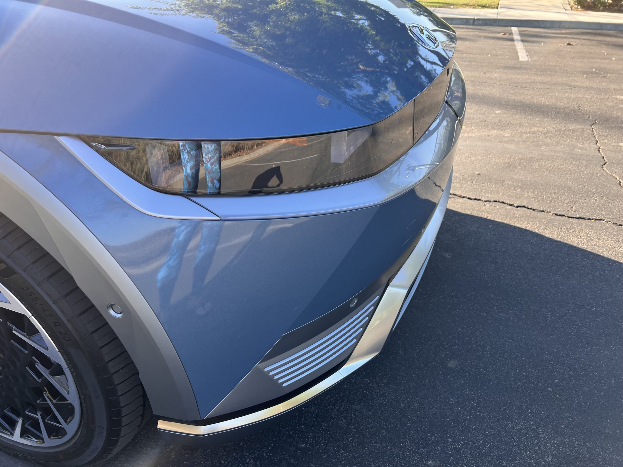 The consistent detailing on both exterior and interior, the pattern carried through harmoniously on eye catching details, never in an over-abundance but rather delicately tasteful. With the white interior this came out exceptionally well, as it matched perfectly with the ocean aqua exterior. It was all just right. The attention to detail was abundant everywhere. It was striking and made me feel to be in a very much higher category of vehicle. I realize the Genesis version of this platform is higher situated, but I doubt it can beat this Hyundai Ioniq5.
