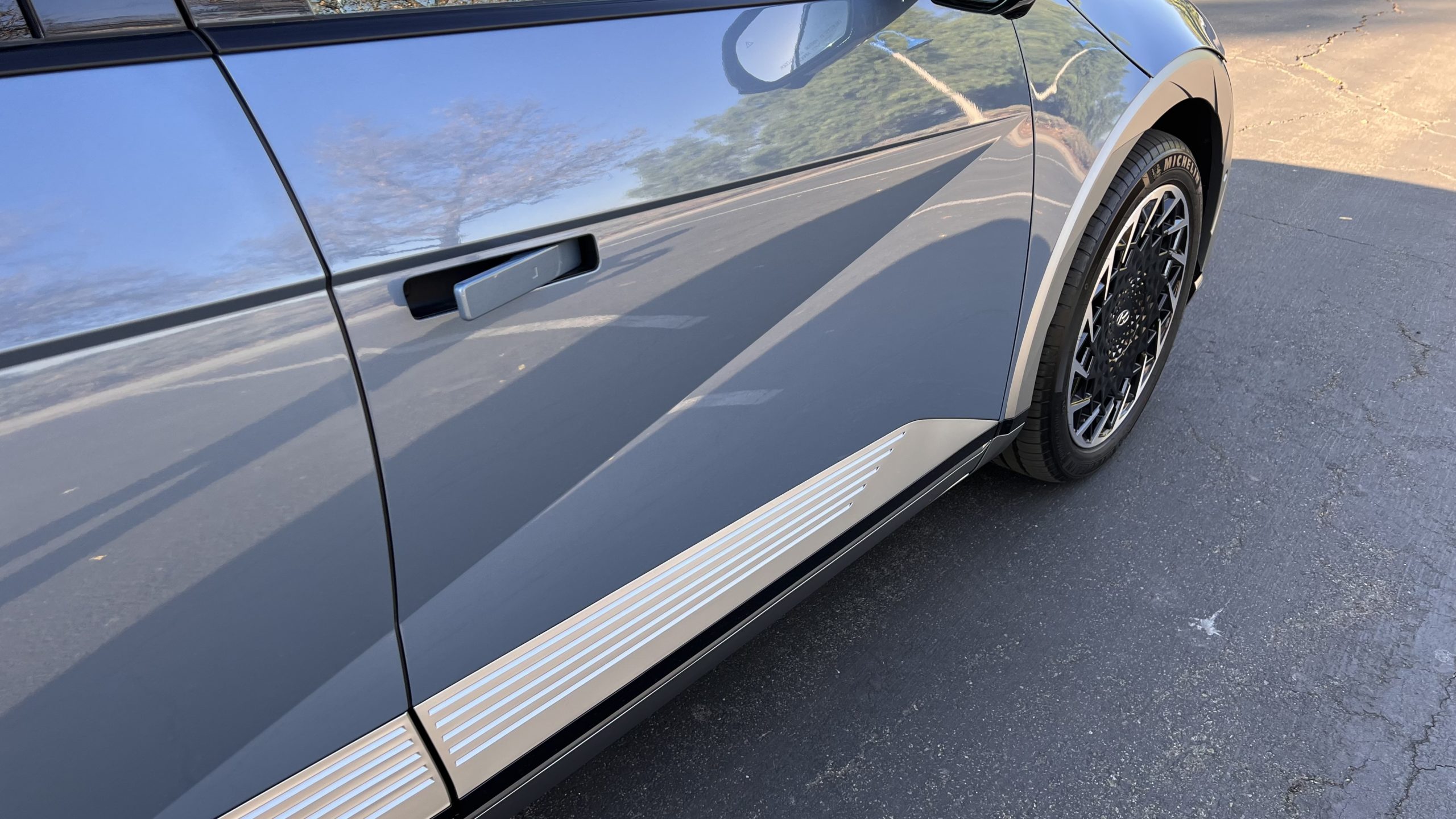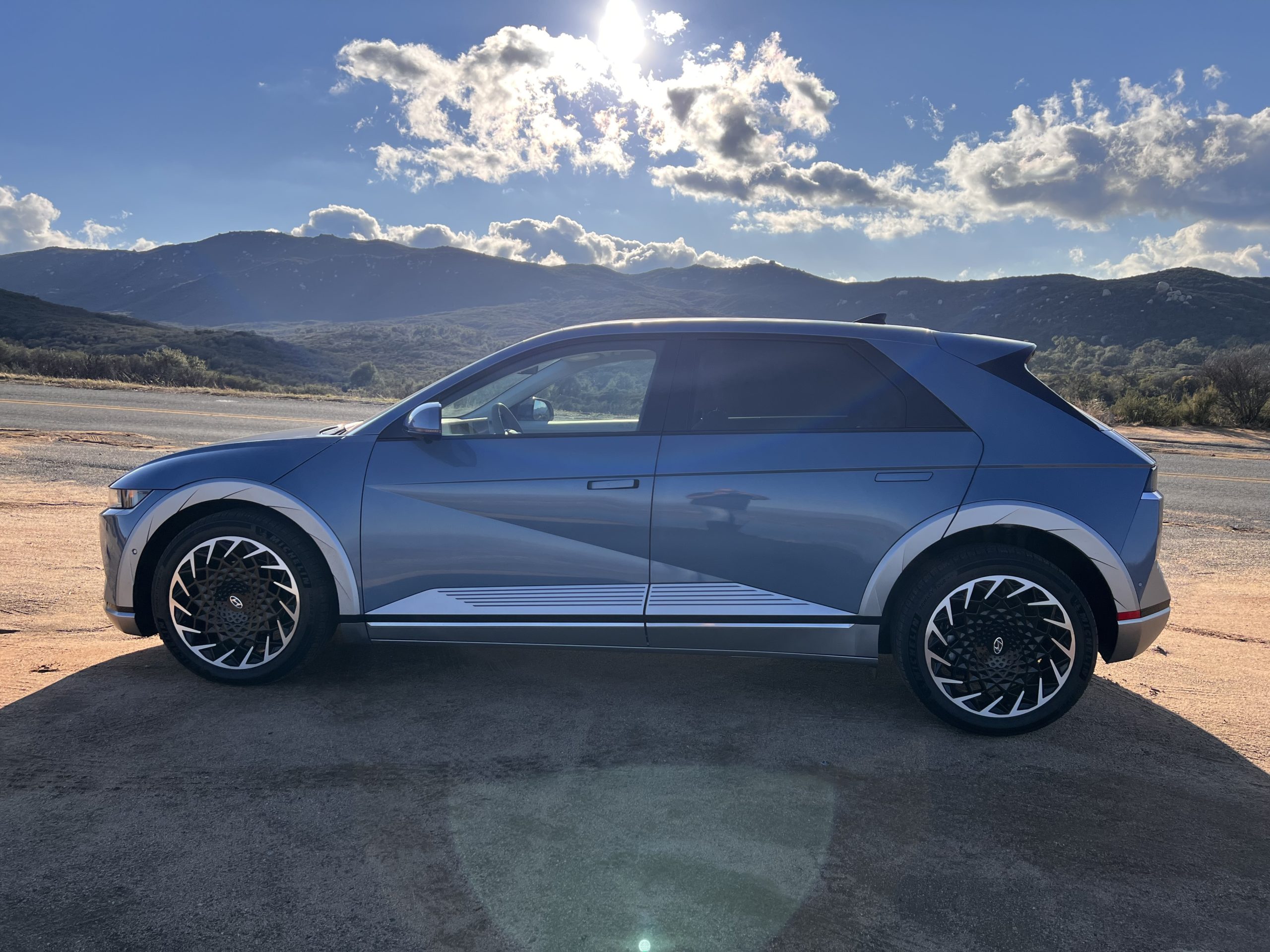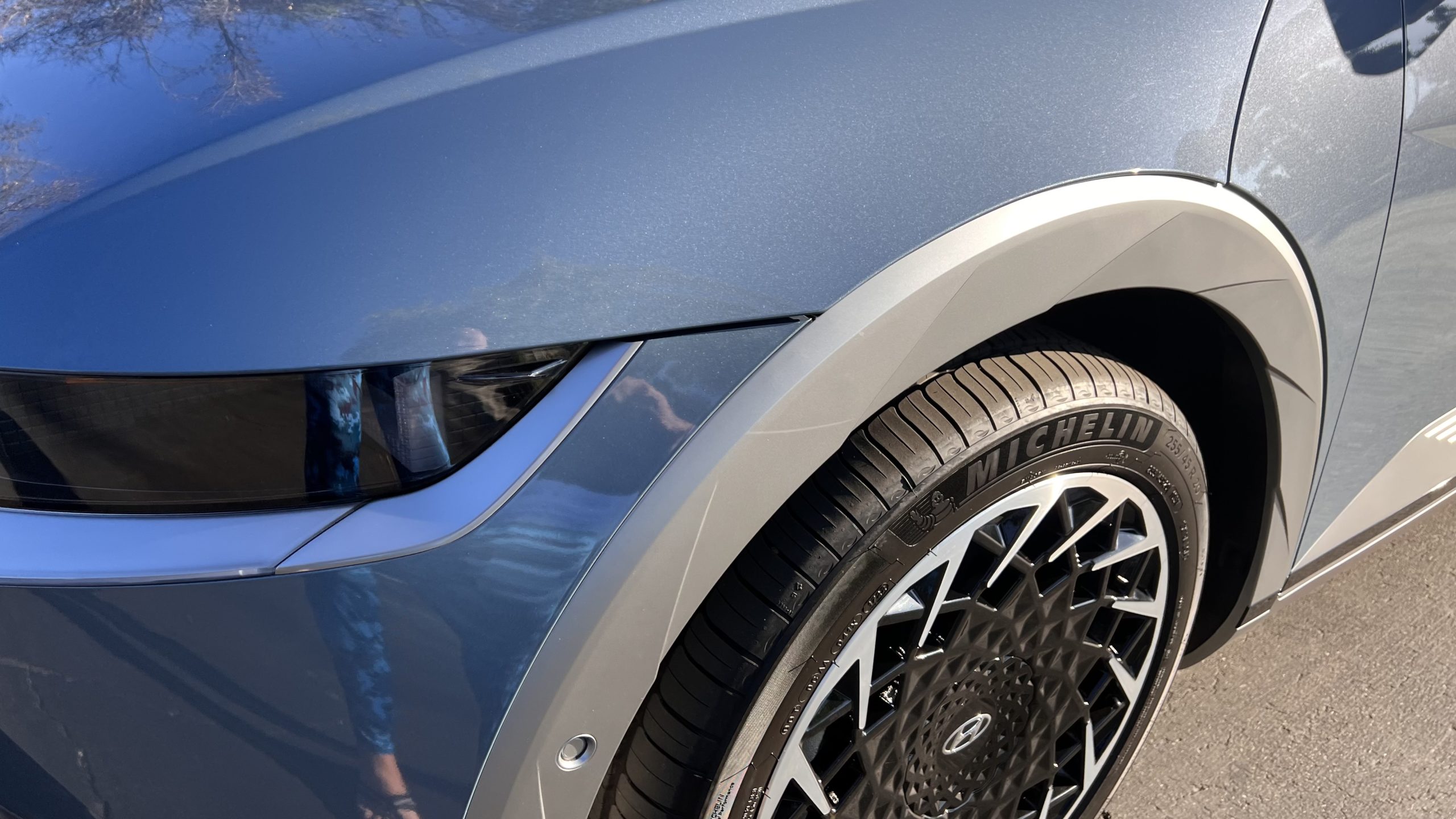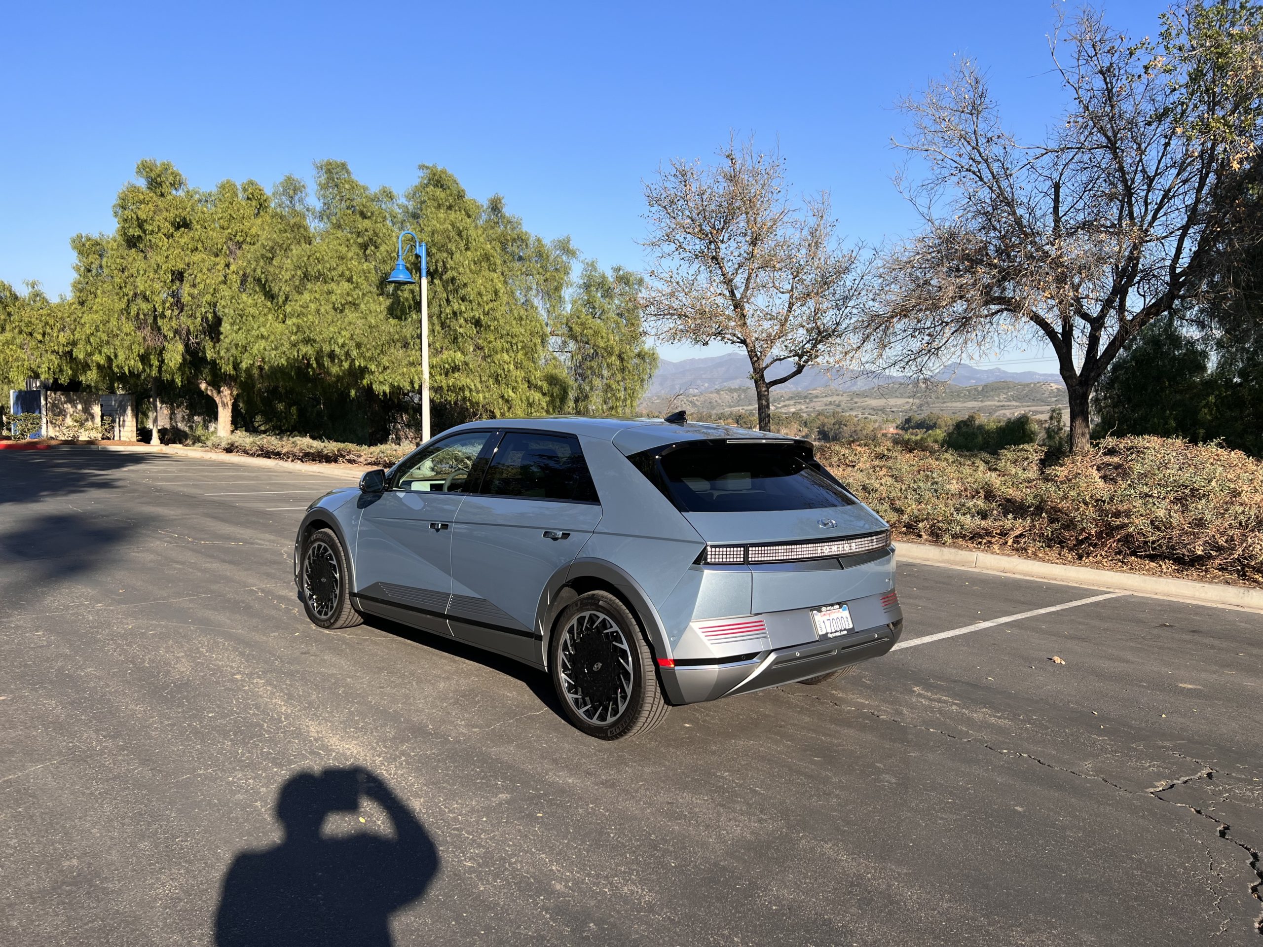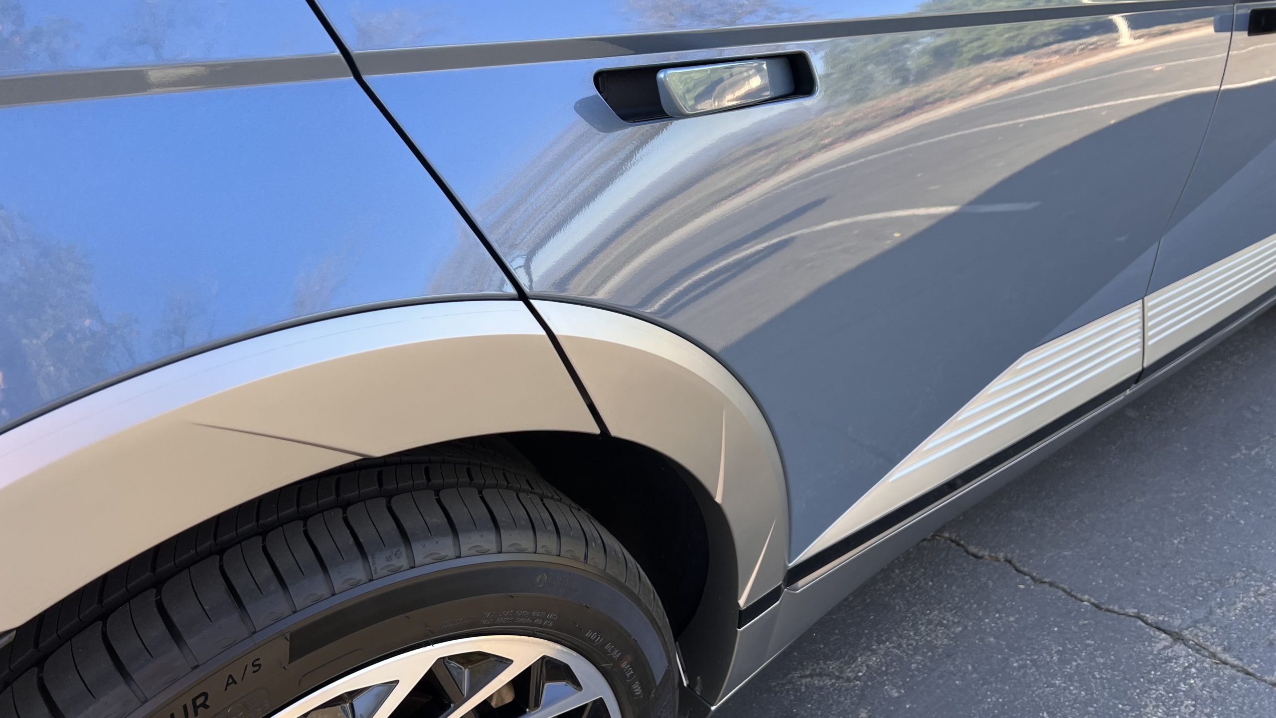 The consistent detailing on both exterior and interior, the pattern carried through harmoniously on eye catching details, never in an over-abundance but rather delicately tasteful. With the white interior this came out exceptionally well, as it matched perfectly with the ocean aqua exterior. It was all just right. The attention to detail was abundant everywhere. It was striking and made me feel to be in a very much higher category of vehicle. I realize the Genesis version of this platform is higher situated, but I doubt it can beat this Hyundai Ioniq5.