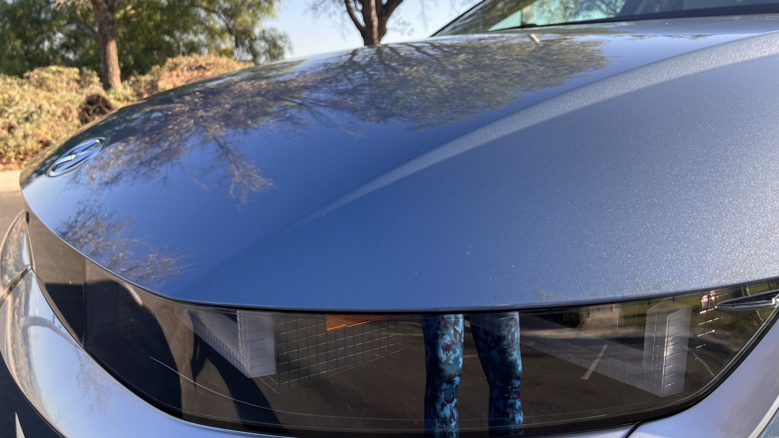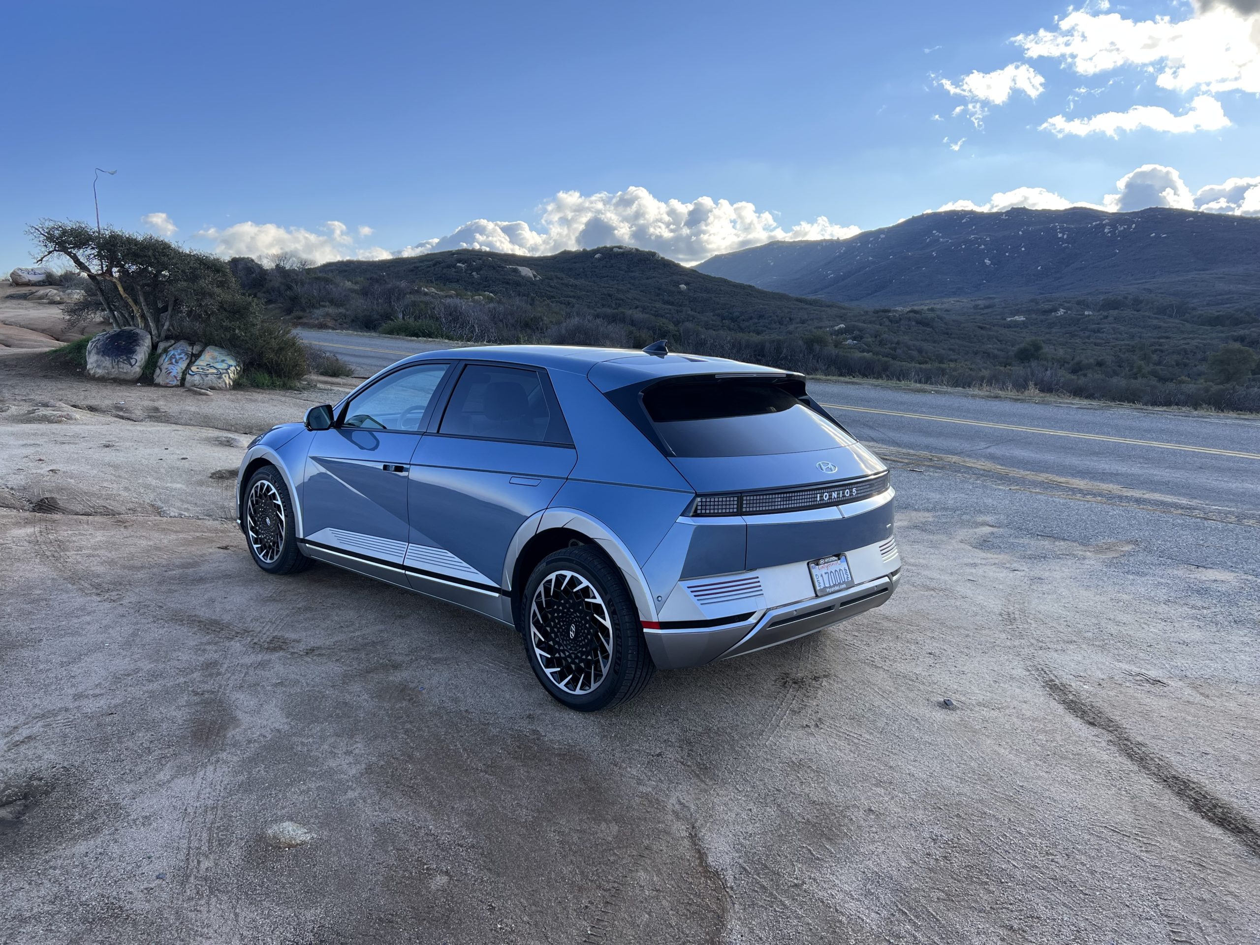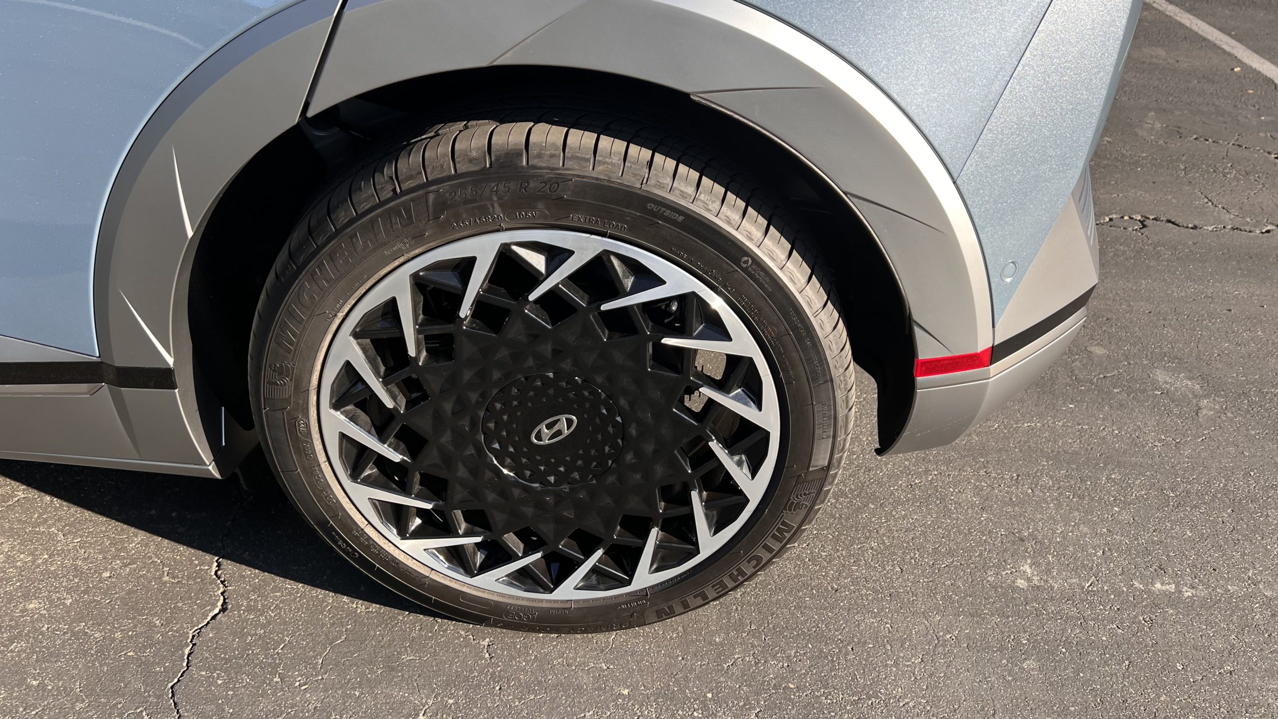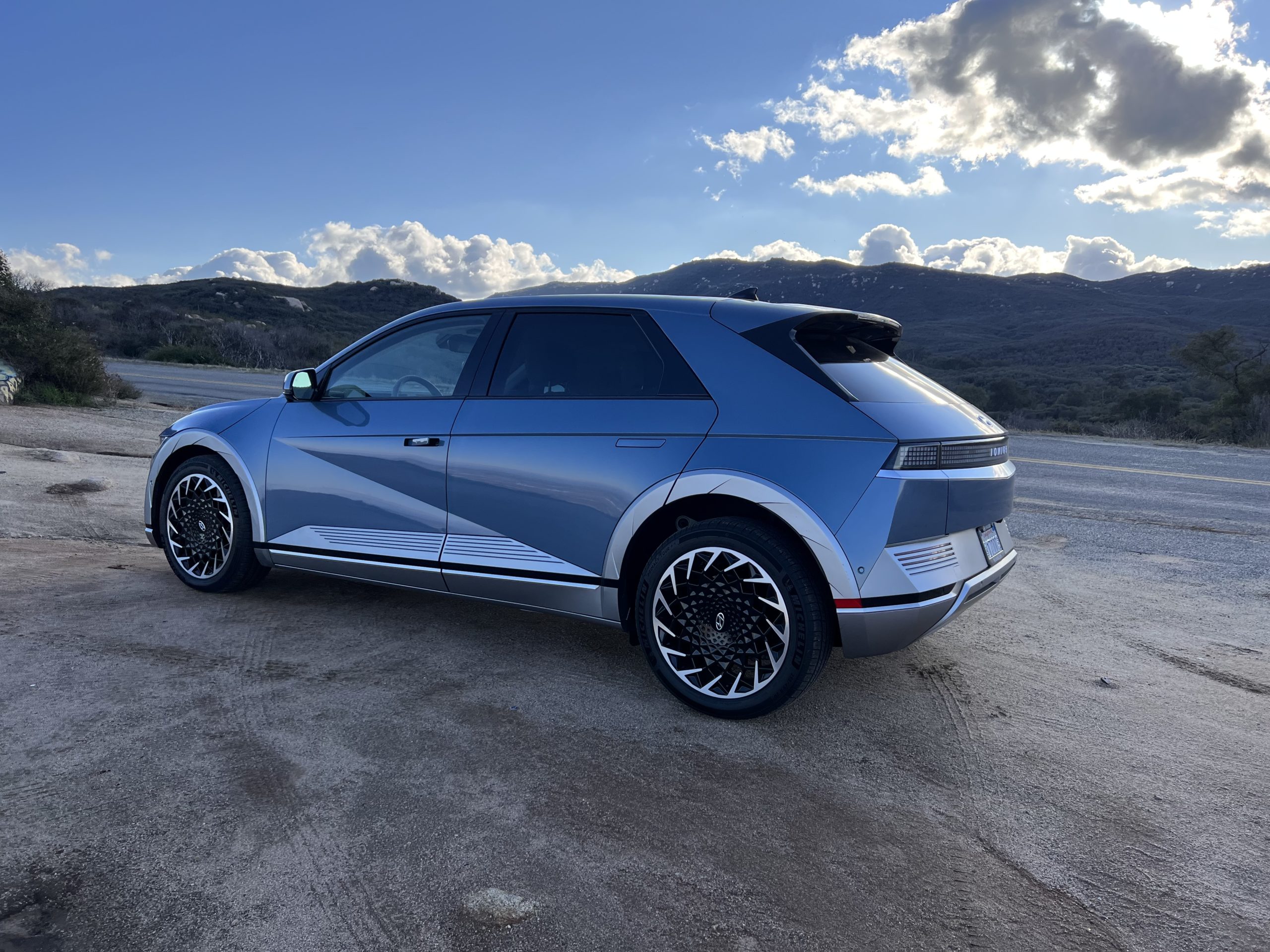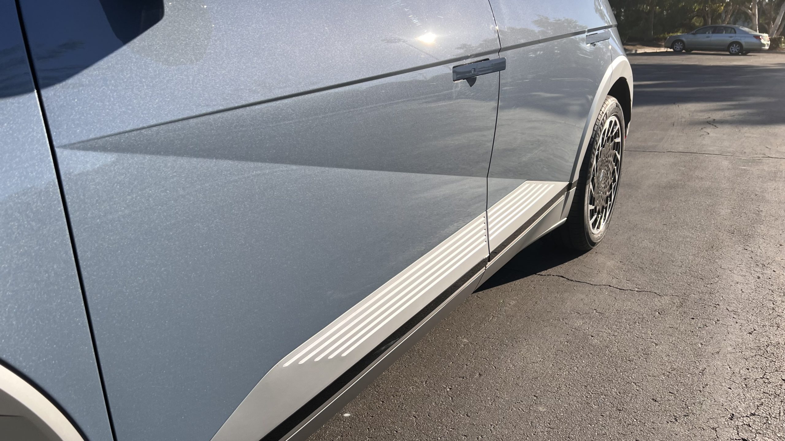 The consistent detailing on both exterior and interior, the pattern carried through harmoniously on eye catching details, never in an over-abundance but rather delicately tasteful. With the white interior this came out exceptionally well, as it matched perfectly with the ocean aqua exterior. It was all just right. The attention to detail was abundant everywhere. It was striking and made me feel to be in a very much higher category of vehicle. I realize the Genesis version of this platform is higher situated, but I doubt it can beat this Hyundai Ioniq5.