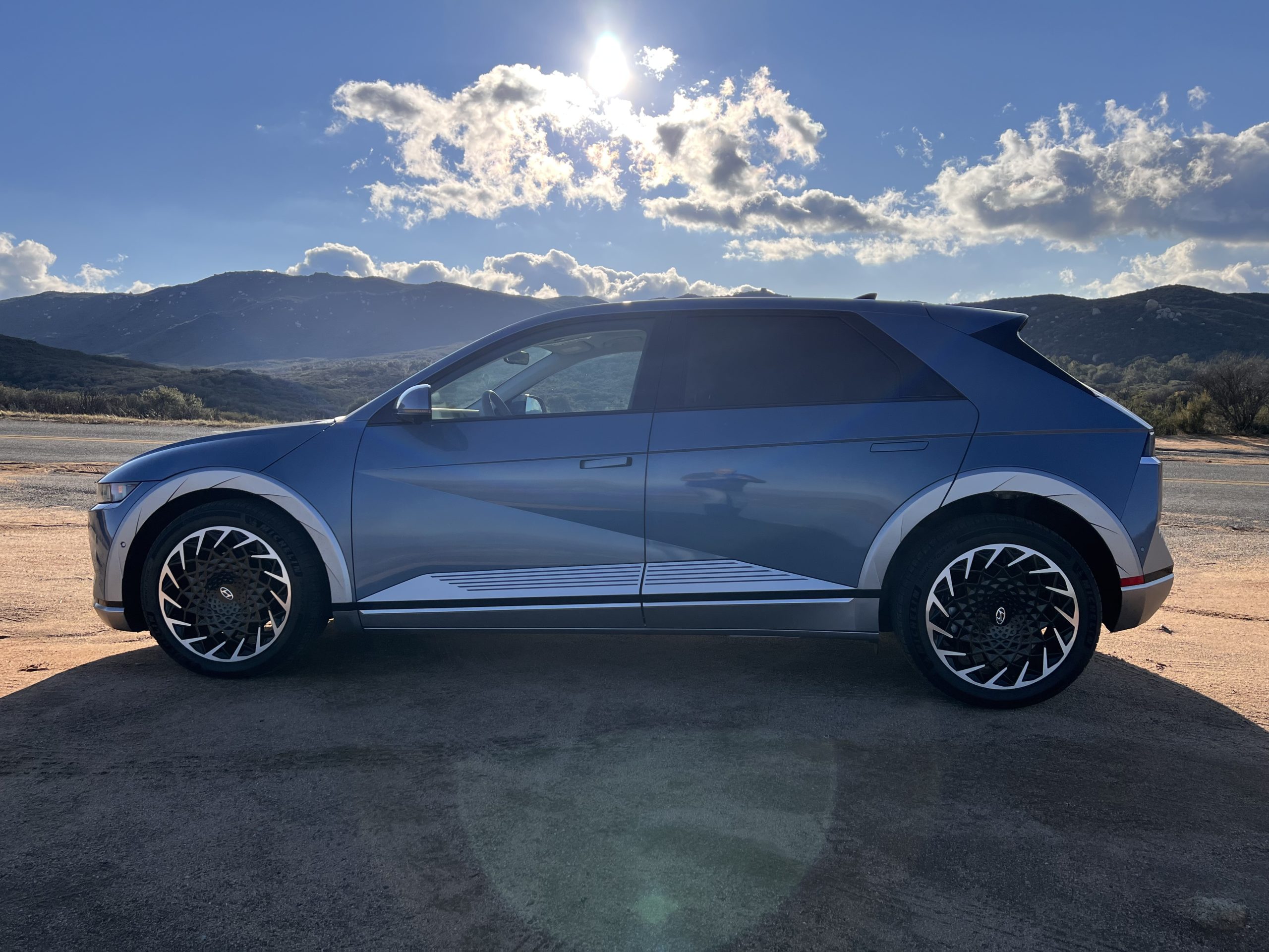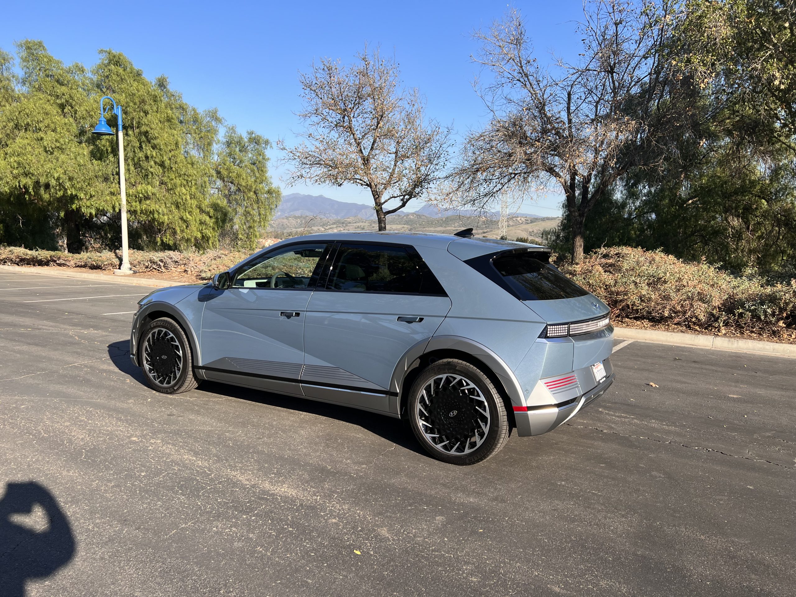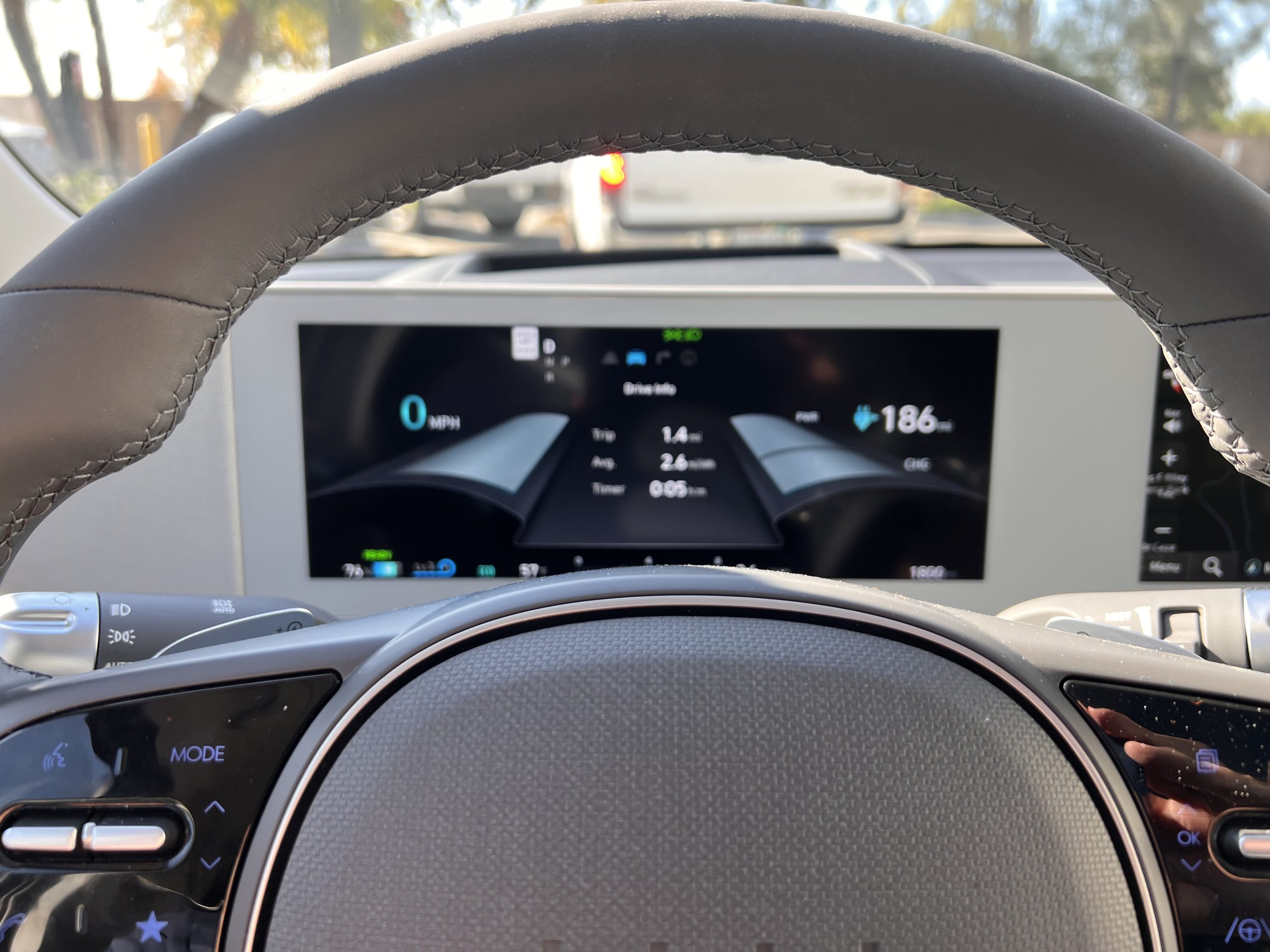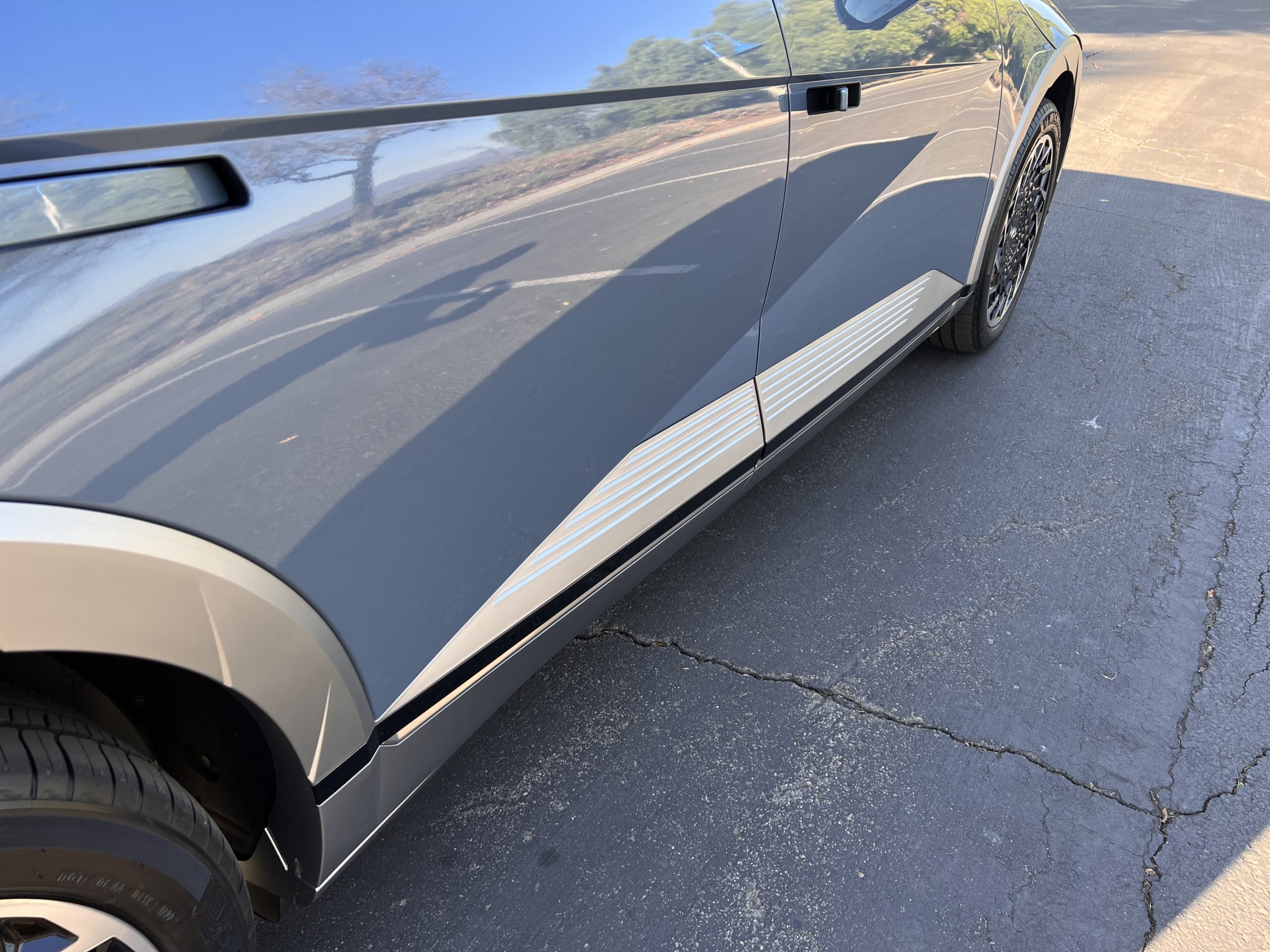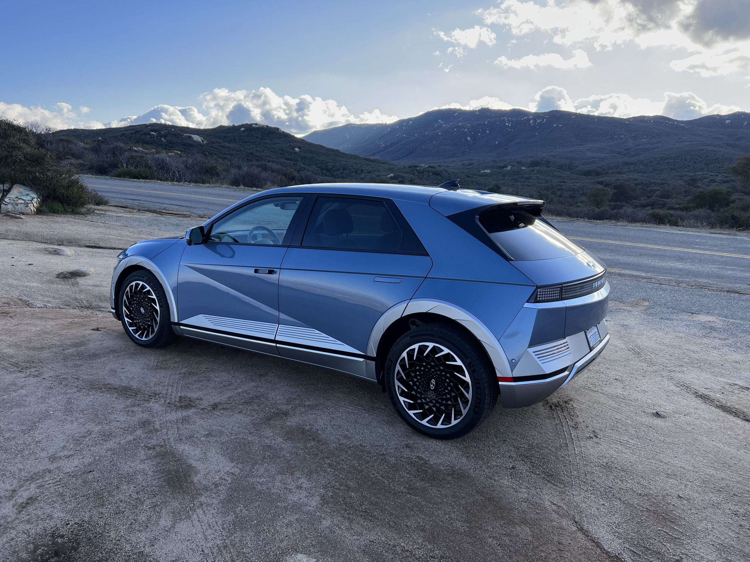 The consistent detailing on both exterior and interior, the pattern carried through harmoniously on eye catching details, never in an over-abundance but rather delicately tasteful. With the white interior this came out exceptionally well, as it matched perfectly with the ocean aqua exterior. It was all just right. The attention to detail was abundant everywhere. It was striking and made me feel to be in a very much higher category of vehicle. I realize the Genesis version of this platform is higher situated, but I doubt it can beat this Hyundai Ioniq5.