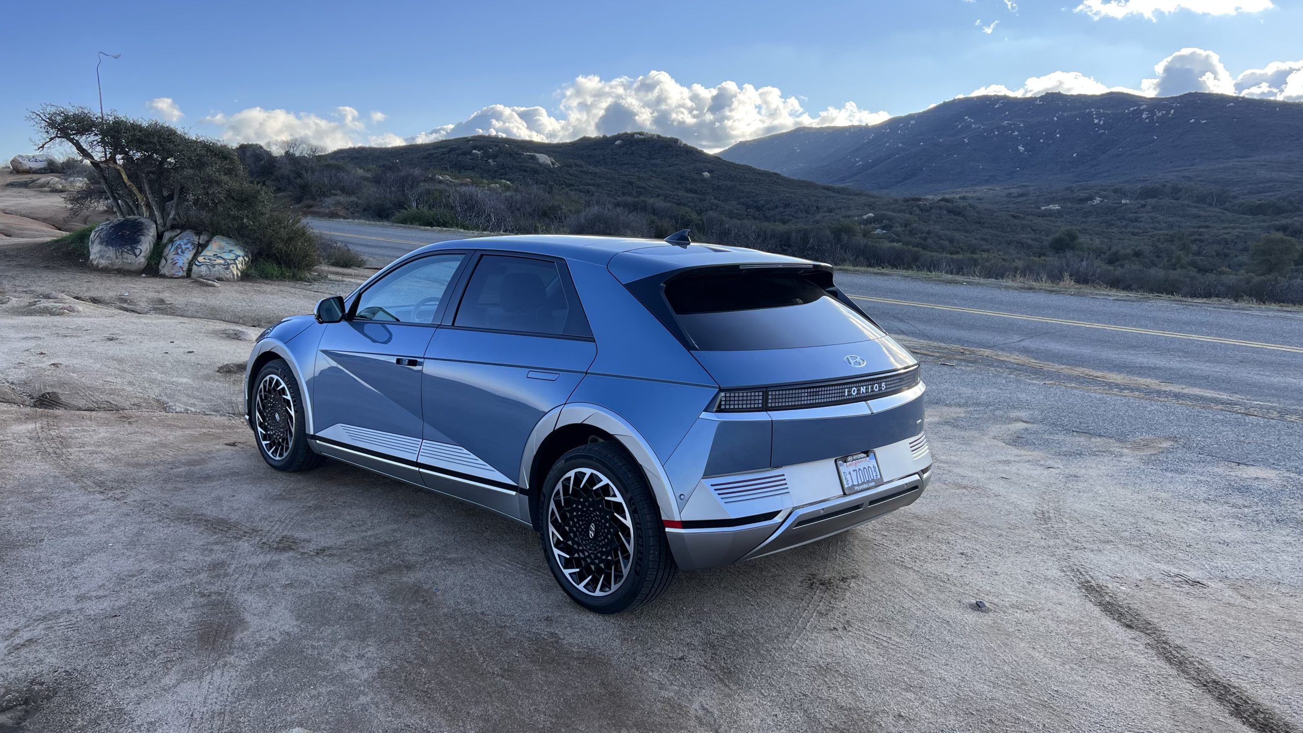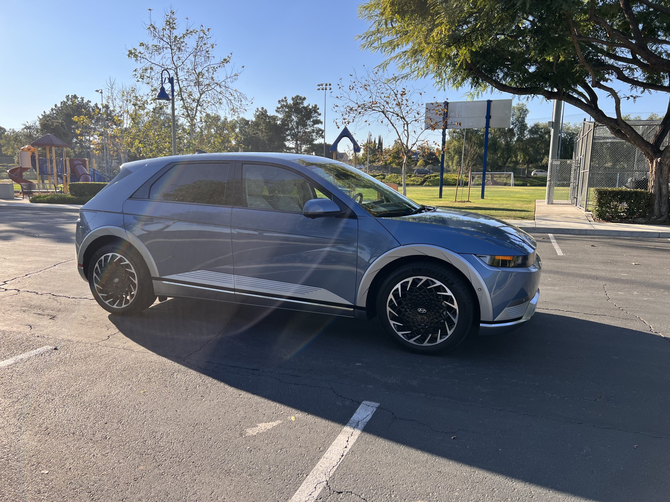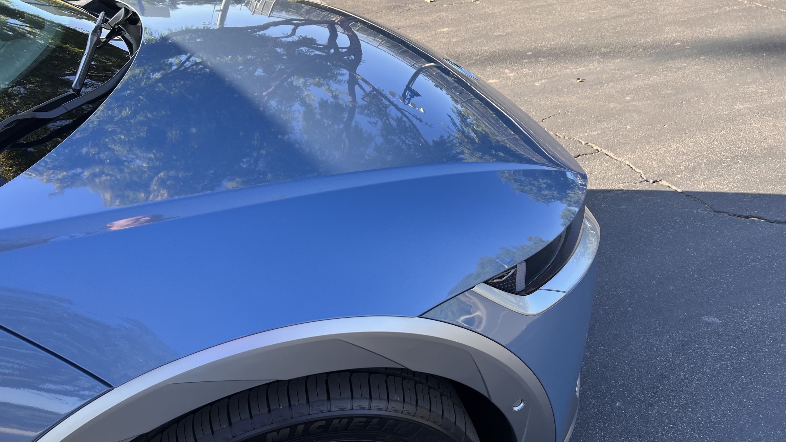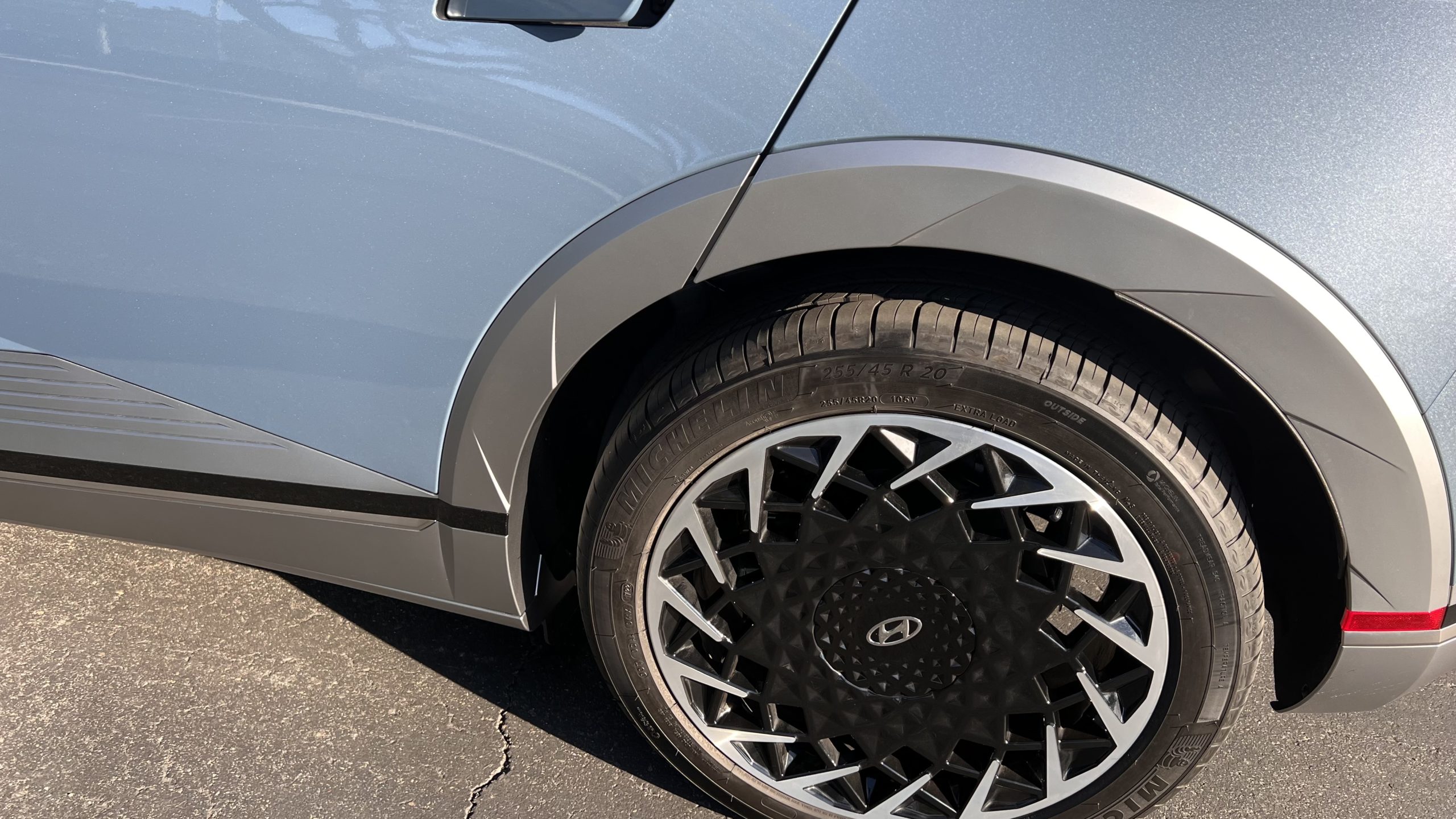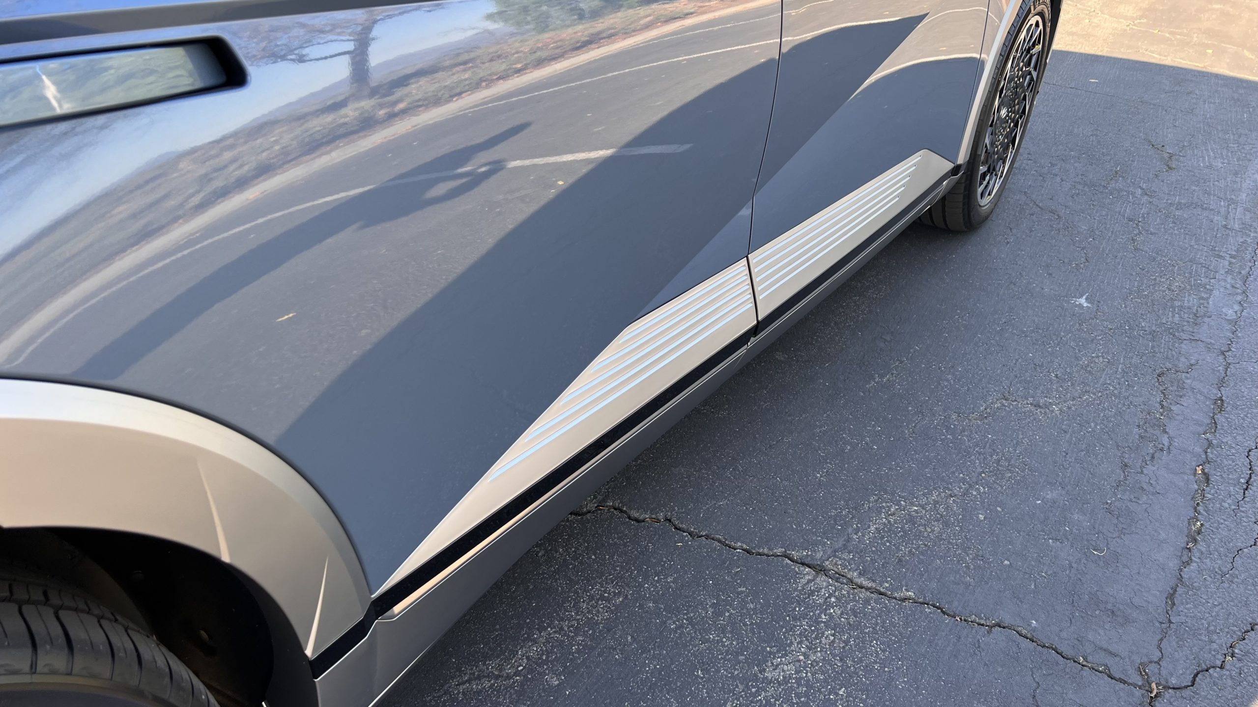The consistent detailing on both exterior and interior, the pattern carried through harmoniously on eye catching details, never in an over-abundance but rather delicately tasteful. With the white interior this came out exceptionally well, as it matched perfectly with the ocean aqua exterior. It was all just right. The attention to detail was abundant everywhere. It was striking and made me feel to be in a very much higher category of vehicle. I realize the Genesis version of this platform is higher situated, but I doubt it can beat this Hyundai Ioniq5.