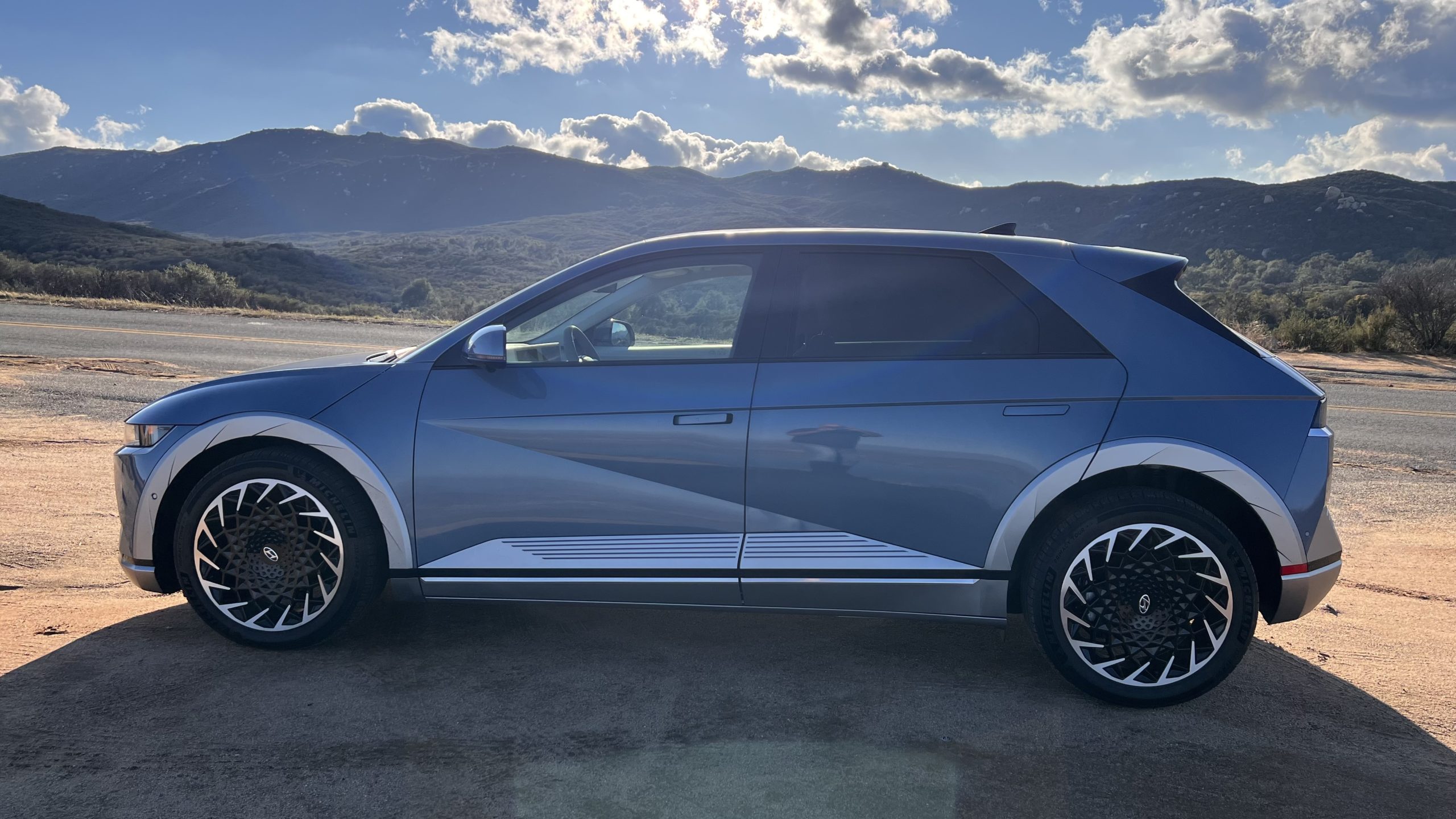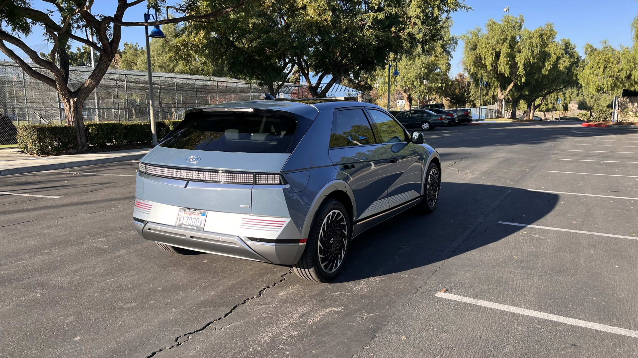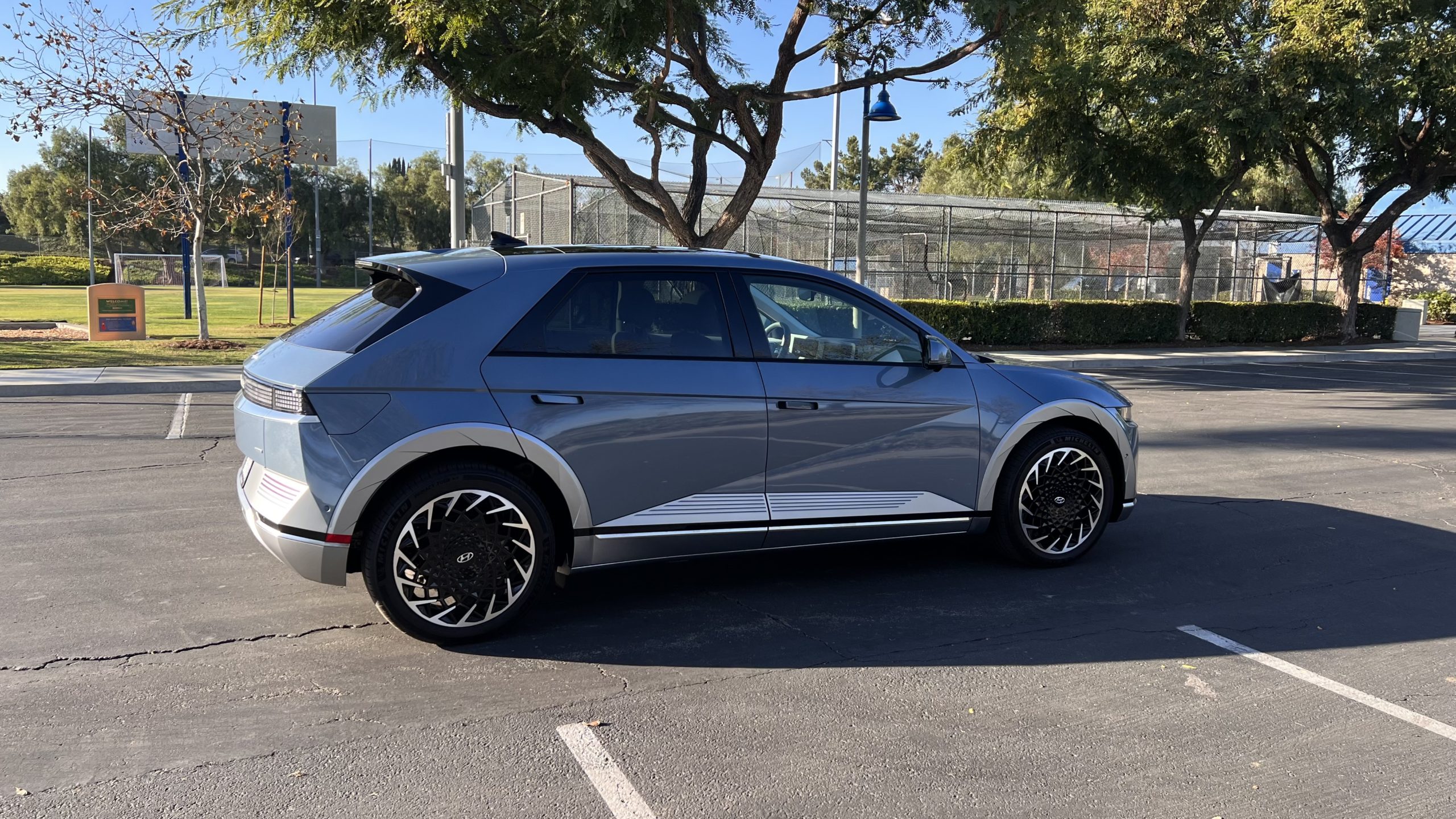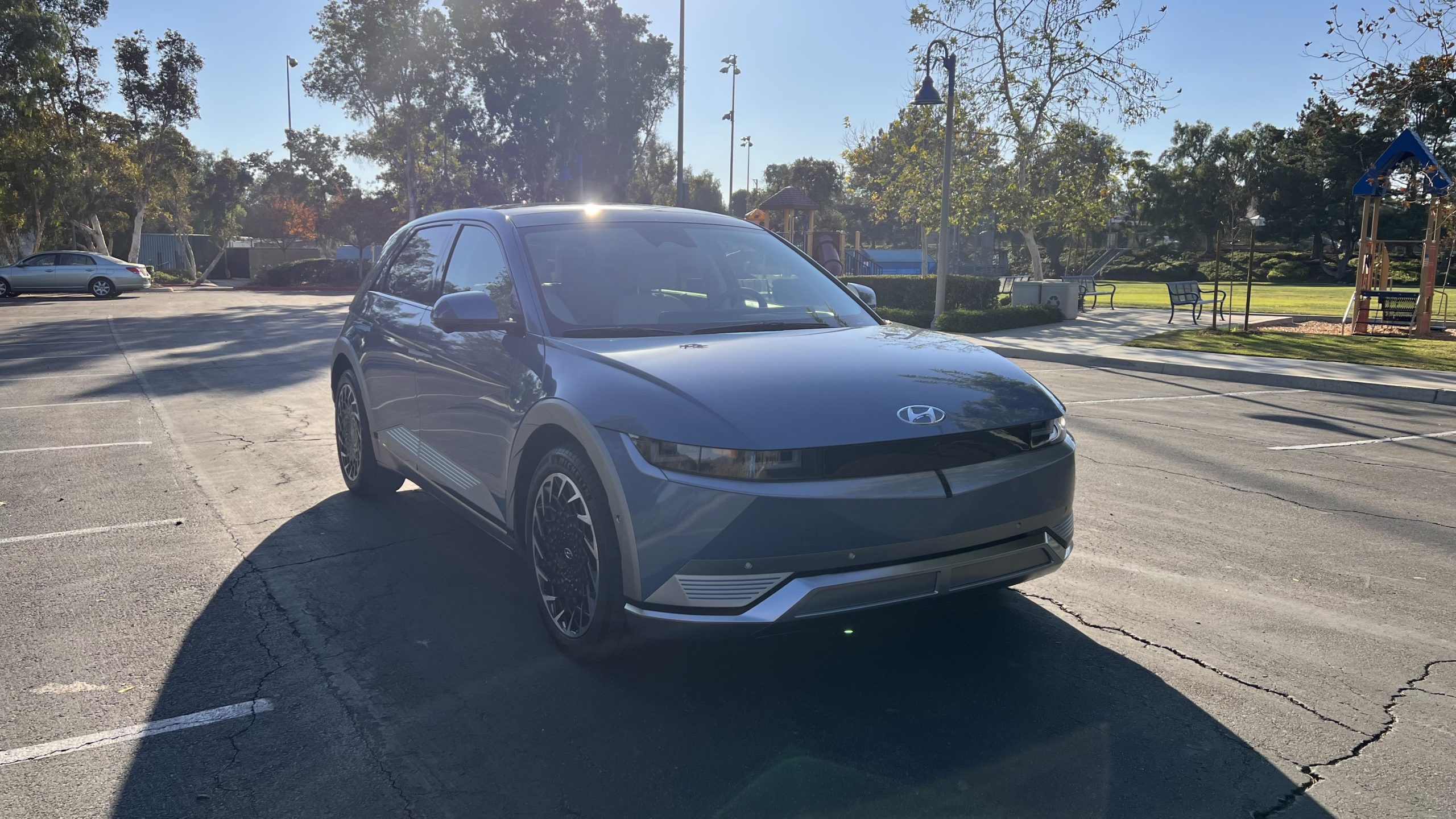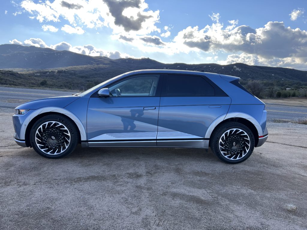 The exterior design is clearly a continuation of what Hyundai had started with the Elantra and Tucson, this time in an almost retro 70’s Ital Design guise. It looks as fresh as the Golf 1 and the Lancia Delta looked when they came out, and the proportions are similar as well, although the Ioniq5 is much larger than either of those. It is large. It is called and SUV. It does offer All Wheel Drive. To me it defies the SUV category since it isn’t in my face 4WD tough off road, but rather looks sophisticated and elegant, and with the slanted tailgate angle is not about packing at much interior space inside, nor does it have a monstrous tail gate spoiler like the VW ID3. It is just right.