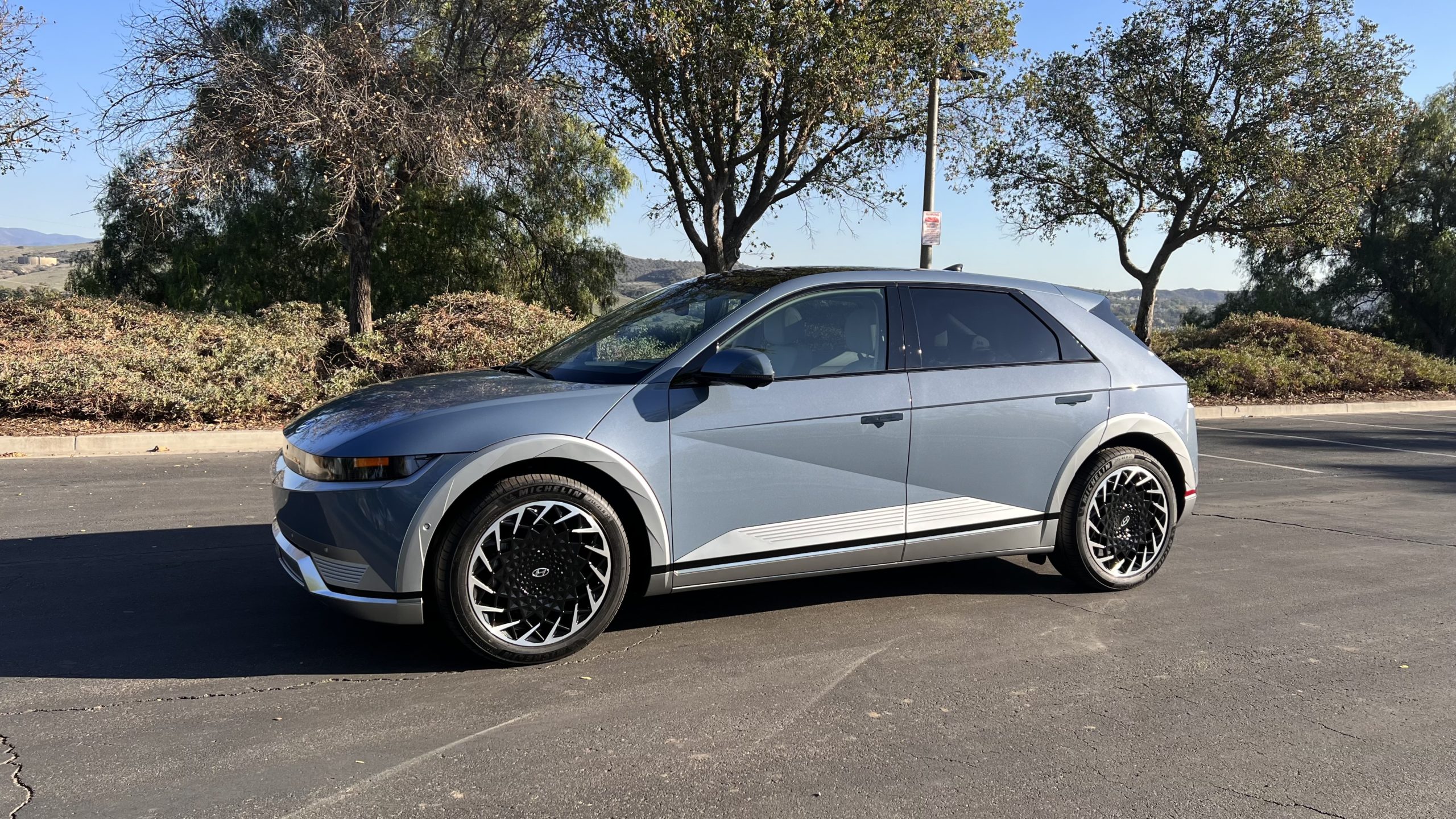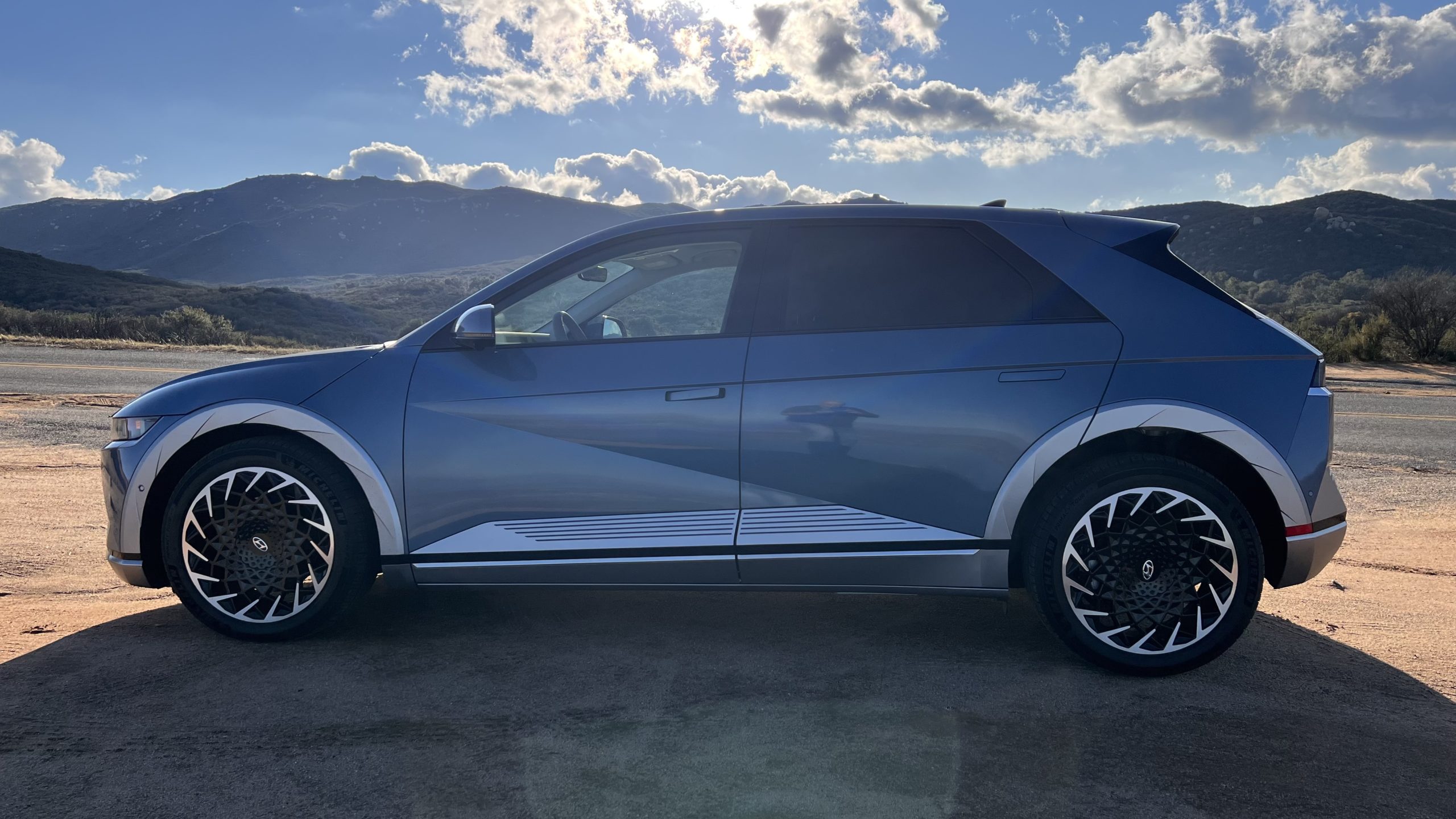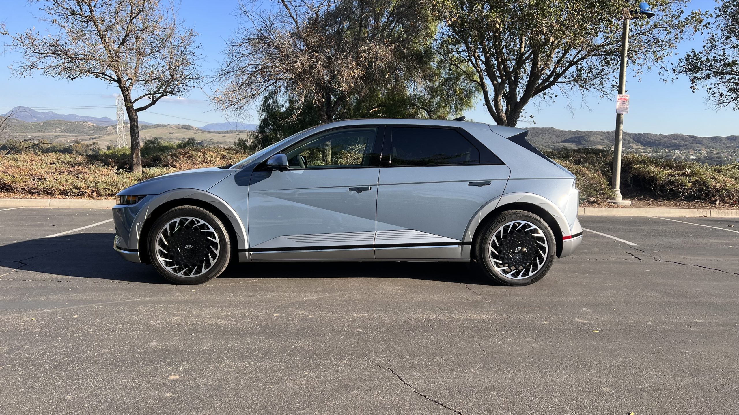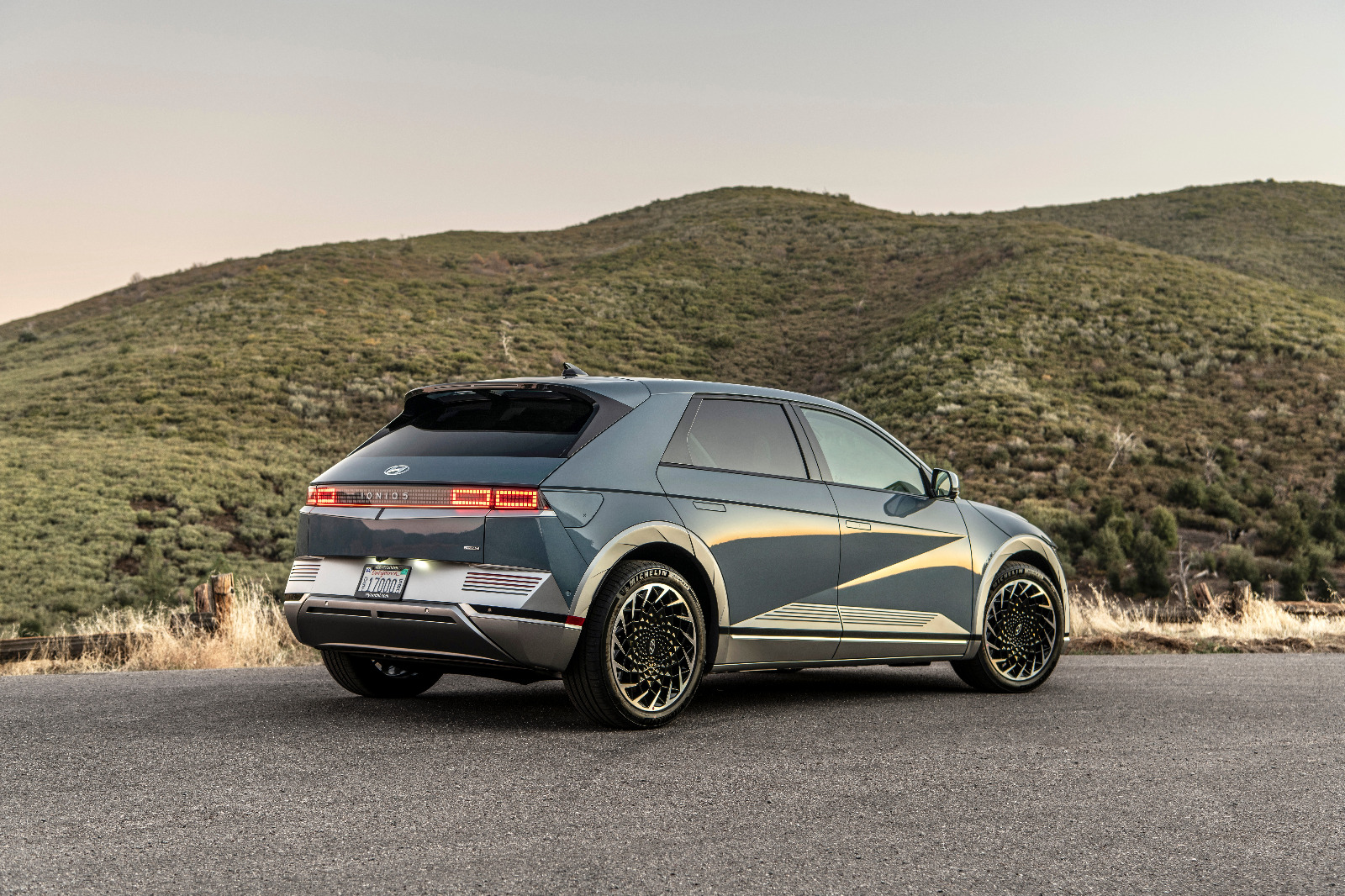 The exterior design is clearly a continuation of what Hyundai had started with the Elantra and Tucson, this time in an almost retro 70’s Ital Design guise. It looks as fresh as the Golf 1 and the Lancia Delta looked when they came out, and the proportions are similar as well, although the Ioniq5 is much larger than either of those. It is large. It is called and SUV. It does offer All Wheel Drive. To me it defies the SUV category since it isn’t in my face 4WD tough off road, but rather looks sophisticated and elegant, and with the slanted tailgate angle is not about packing at much interior space inside, nor does it have a monstrous tail gate spoiler like the VW ID3. It is just right.