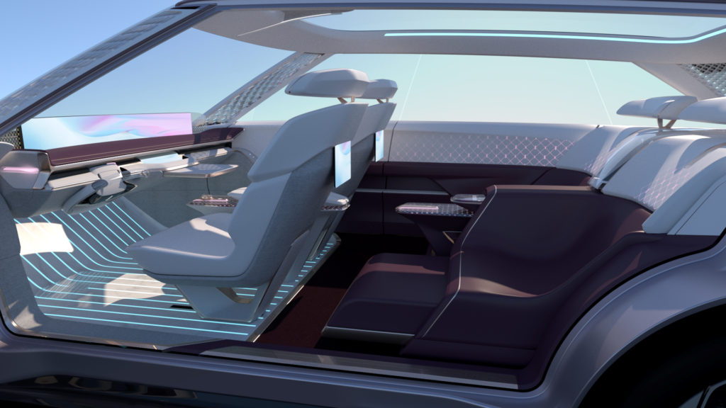 A coast-to-coast curved horizontal display creates a digital panorama in which content flows seamlessly into an integrated center control screen, then into the second-row screen, creating a unique experience for all passengers. New materials such as leather and chrome alternatives and several unique finishes – work in harmony to create a modern, luxurious experience.
