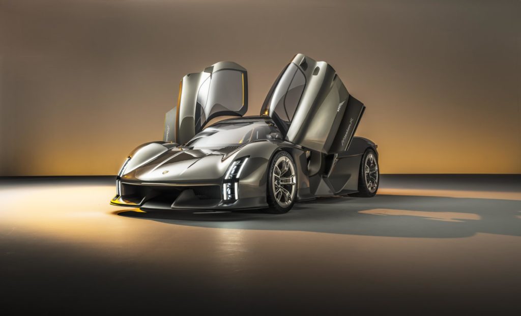 Extreme lightweight construction and an all-electric drive concept with powerful electric motors are the basis for the outstanding power-to-weight ratio. By way of comparison, the Porsche 918 Spyder has a power-to-weight ratio of 0.5 PS per kg.