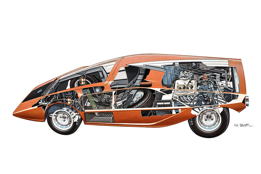 Gandini’s design was not merely an exercise in form; it was a functional expression of the era’s technological aspirations. The Stratos Zero was a testbed for innovative engineering solutions. Its chassis, derived from a Lancia Fulvia, was modified to accommodate the car’s extreme proportions. The suspension, steering, and braking systems were engineered to handle the demands of such a low, wide vehicle.