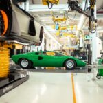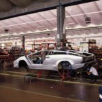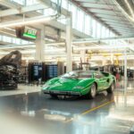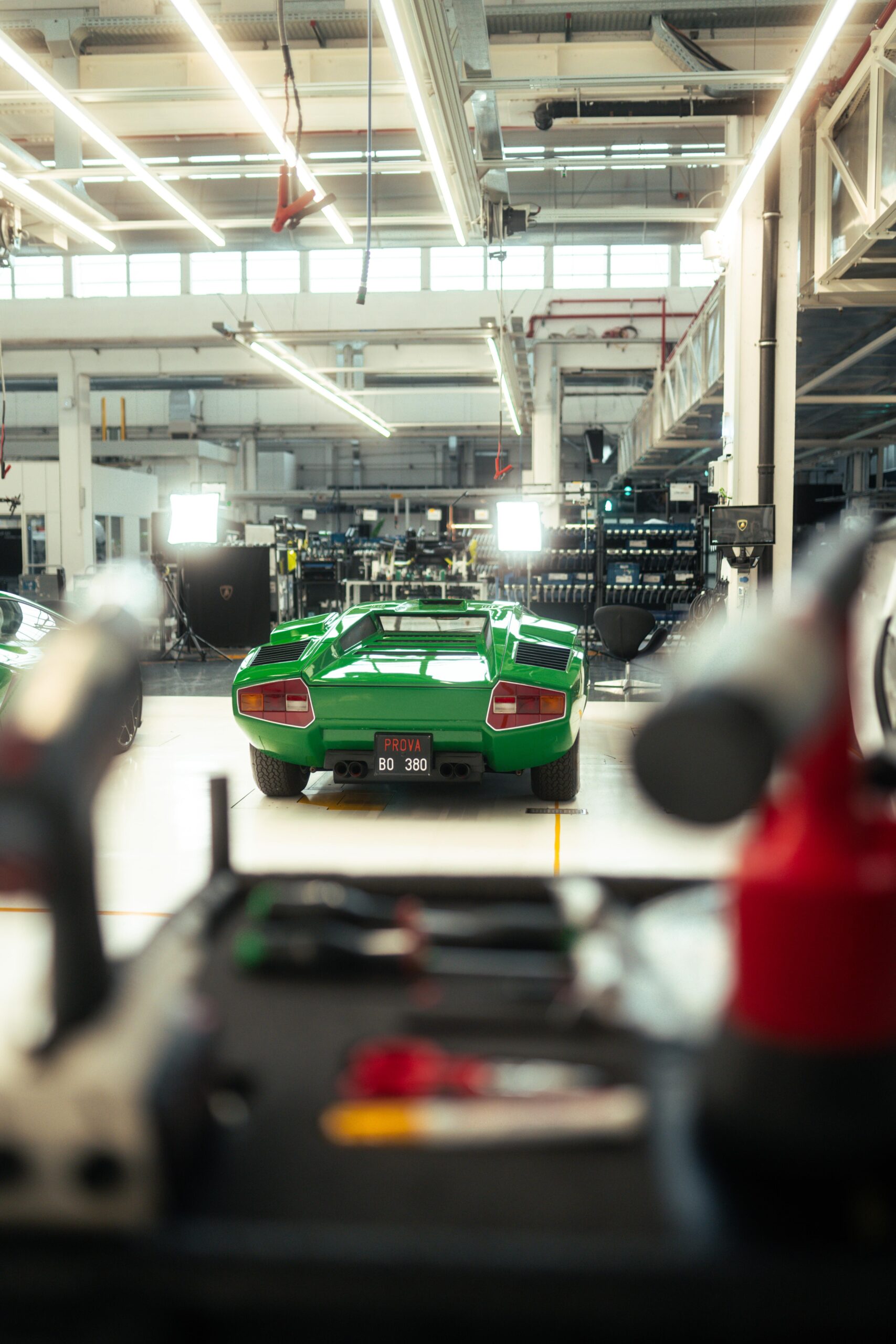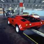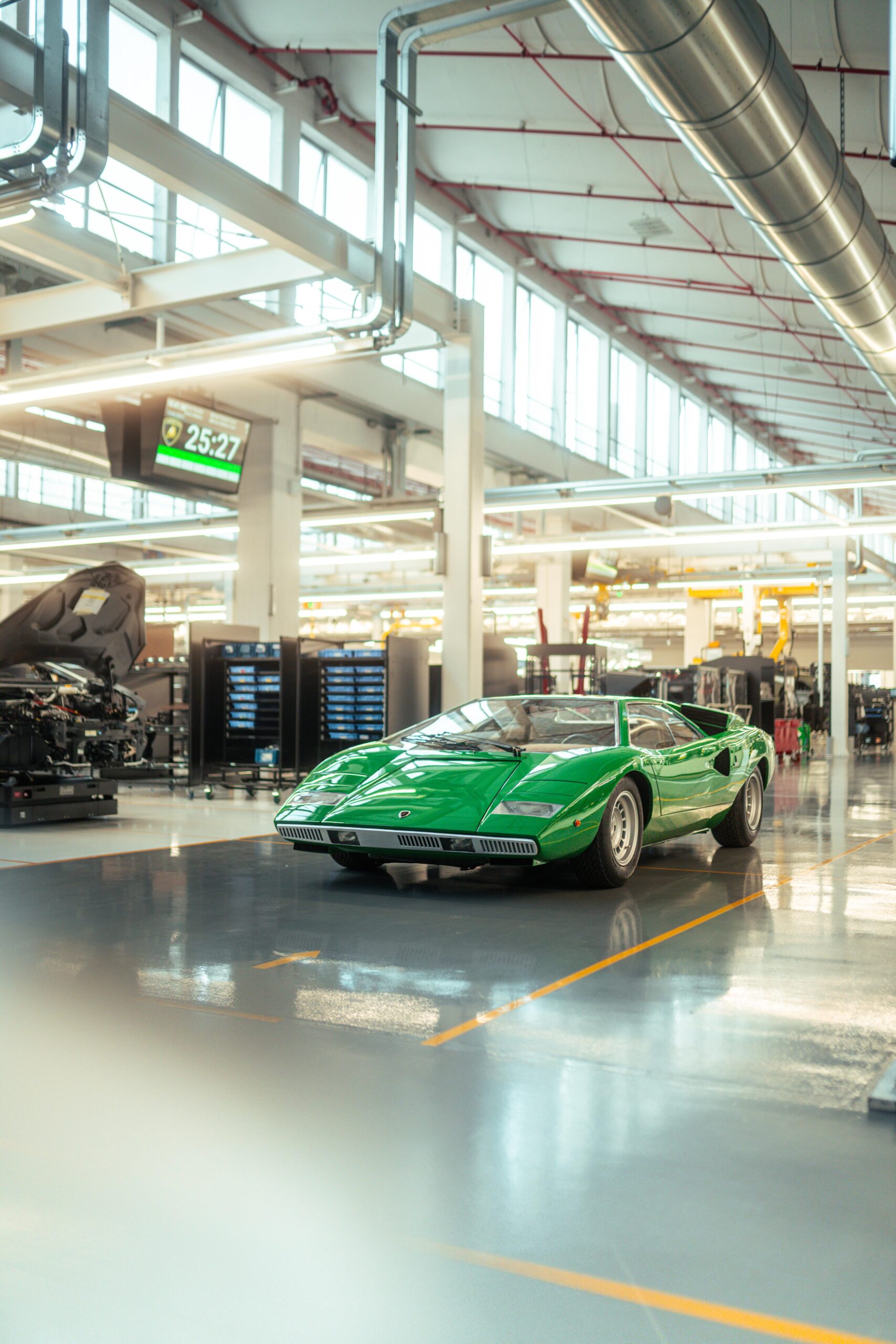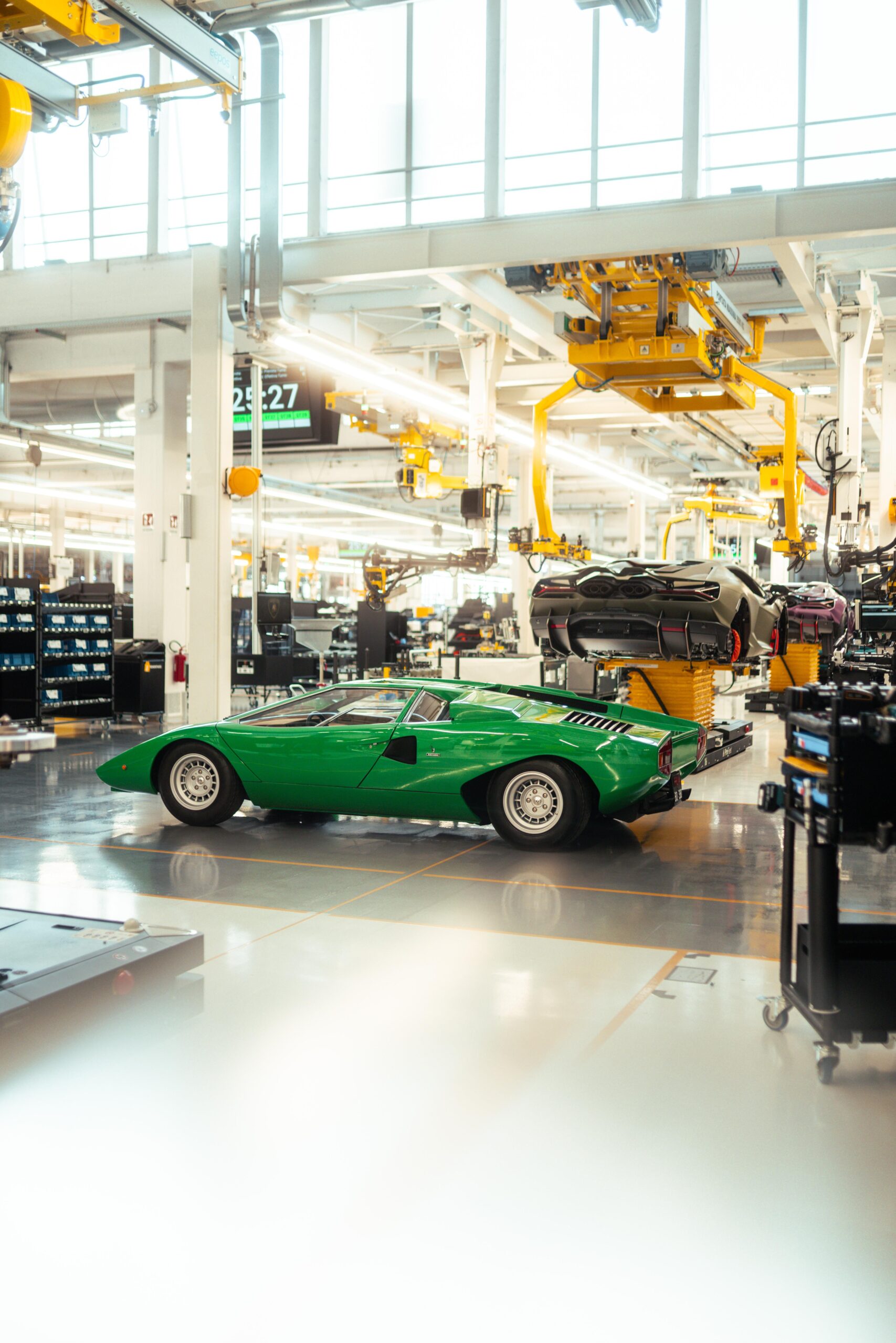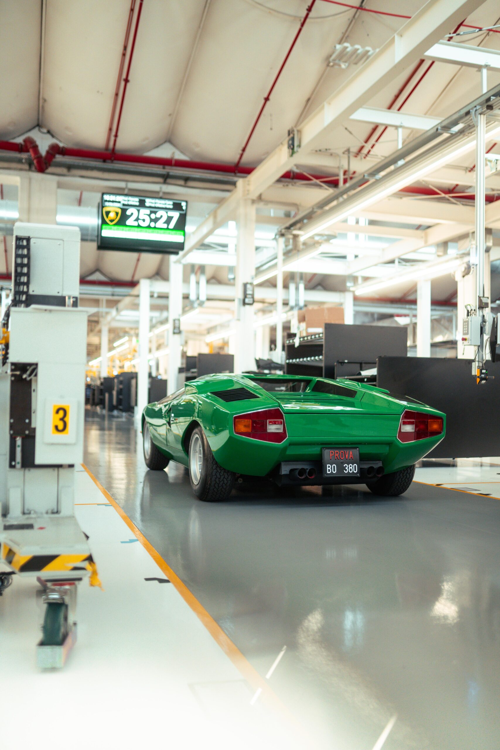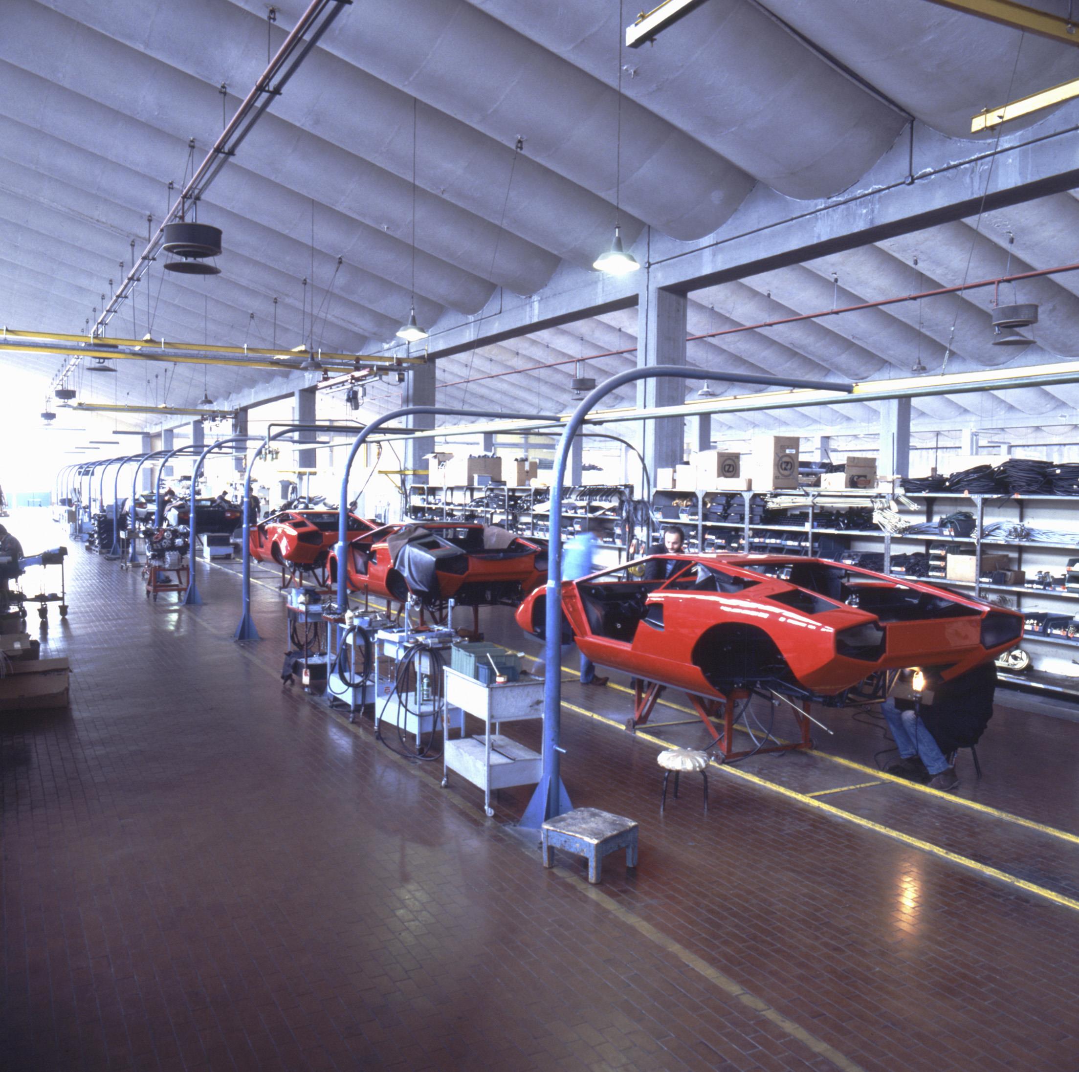 The original Lamborghini factory comprised a 12,000 m2 covered area, with construction starting in 1963 and finishing in 1966, the same time as the gearbox and differential also started to be produced in-house. The factory included the production area, offices, testing rooms and service workshop. Production included two production lines: one for the engines and mechanical parts and the other for car assembly. On 18 October 1968, Lamborghini announced the forthcoming completion of the construction of three new industrial buildings, adding 3,500 m2 of covered area. Today the factory is quite different, covering an area of 346,000 m2, but the area where the Countach was assembled, known as the No.1 Countach Assembly Line, remains the same, and is now where the Revuelto, the new Lamborghini 12-cylinder plug-in hybrid car, is produced. During the Countach years, the assembly line was simple and small scale, with all the operations carried out manually. The bodywork panels were beaten and then checked on a wooden template before being welded together and adjusted on the car body mold. This final processing was essential, given that each part, having been produced and assembled by hand, appeared identical to the others but in reality each was slightly different. The complete body, still in raw aluminum, was then combined with the frame. This unit, sitting on an industrial trolley that ran on rails, traveled between the various assembly stations where the different mechanical parts were fitted. The Countach was also the first to involve the Lamborghini Upholstery Department, which in the beginning was only for the fitting and assembly of the interiors in partnership with external suppliers. It eventually became completely autonomous, including in terms of leather upholstery and stitching, becoming an essential part of the personalization still offered today by Lamborghini to its clients through the Ad Personam program. Today, the production line has changed, as has the machinery and materials used and is much more organized, efficient and ergonomic. While in the 1970s aluminum was used, now there is carbon fiber, which is also produced at the Sant’Agata Bolognese site. What hasn’t changed is the passion and care with which the operators produce the new cars.