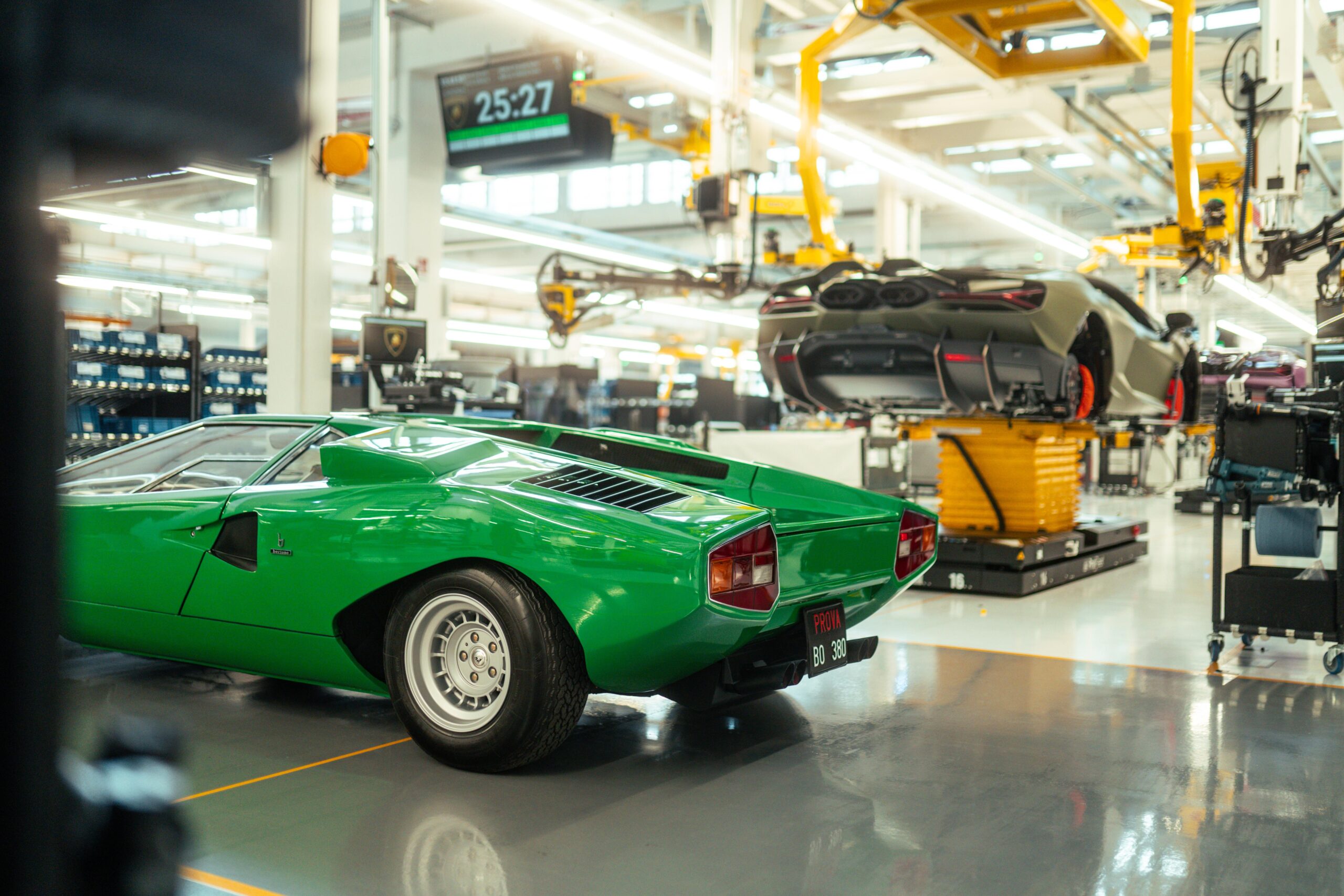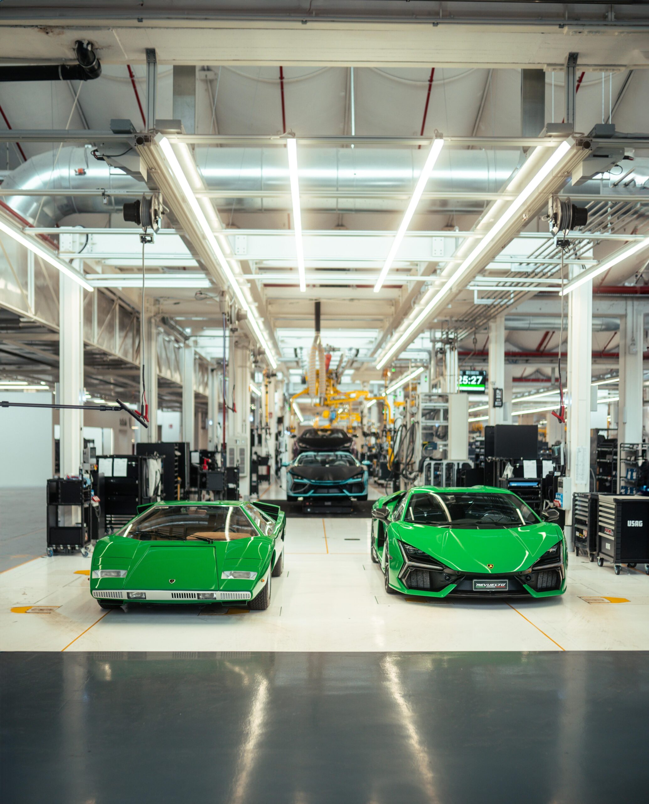 It was in March of 1974 when mass production of the Countach started at the Lamborghini factory in Sant’Agata Bolognese; a model that entered into legend and remained on the market for a full 16 years. The Countach was the first Lamborghini whose bodywork was made “in-house” with panel-beating carried out by hand, and the first whose interiors were produced by the Lamborghini Upholstery Department, a real revolution which, 50 years on, has become a tradition at Sant’Agata Bolognese. On the occasion of this anniversary, Lamborghini has brought back the very first Countach LP 400 to the production line on which it was created, and where today the Lamborghini Revuelto is produced, for a past and present photo shoot. Furthermore, Lamborghini has made some exclusive images of the Countach line available from its archives.