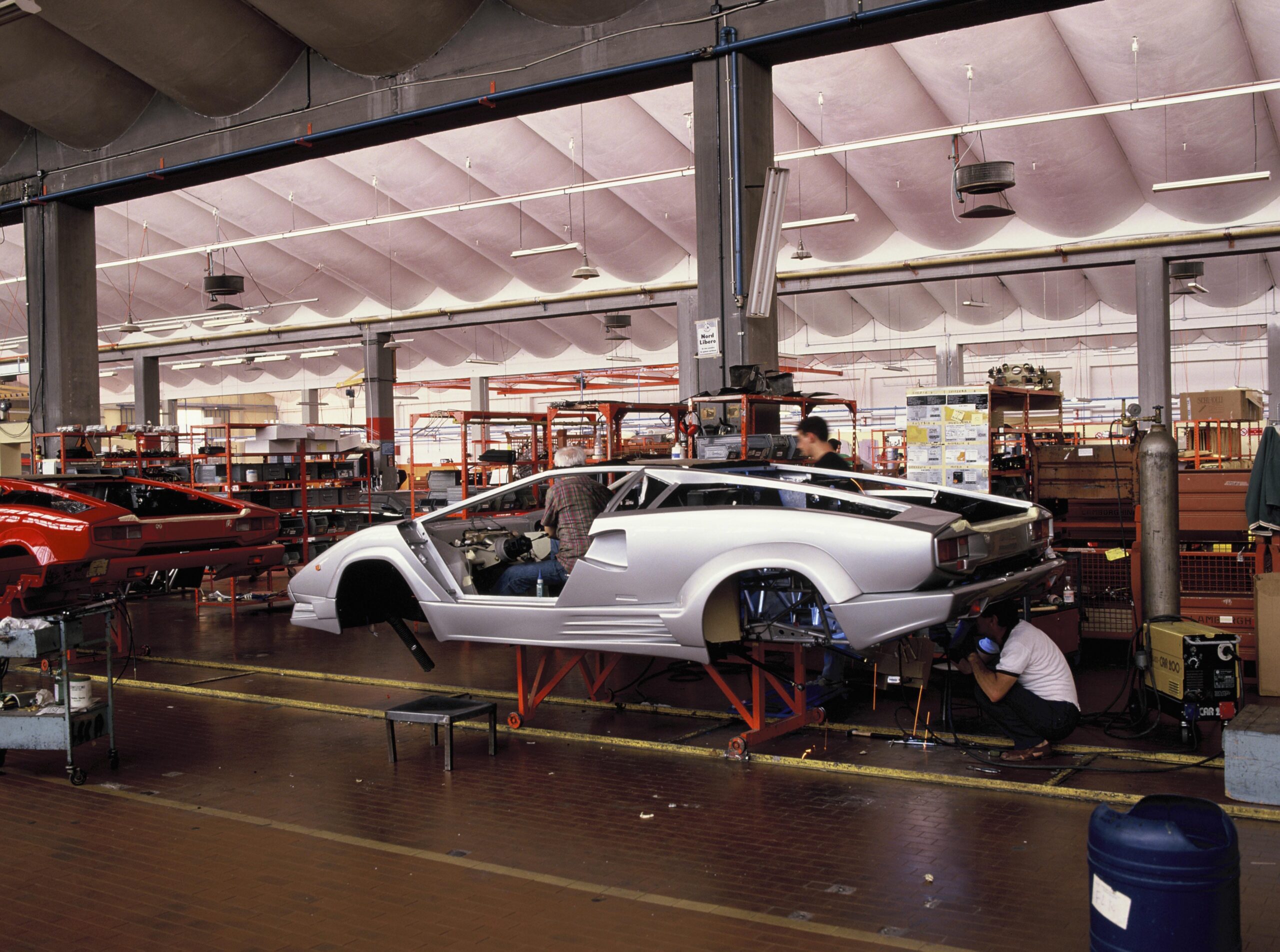 The Lamborghini Countach LP 500 was presented at the Geneva Motor Show on 11 March 1971, as an idea car, and its immediate success made the decision to make it a production car an easy one. It took several prototype cars and three years of technical development and intense road testing to get the production model, the Countach LP 400, ready. While the car was being developed, work was going on at Sant’Agata Bolognese to create the production line where the Countach would be produced. This was another way in which the Countach was revolutionary: for the first time in Lamborghini’s history, the bodywork would be made in-house. Up to that point, Lamborghini cars had been made in two different places, with the mechanical parts produced by Lamborghini, and the bodywork built by external coachbuilders and then sent to Sant’Agata Bolognese to be put together with the frame and mechanical parts. The decision to bring the production of the bodywork in-house at the Lamborghini factory had an immediate and significant impact on the growth of the company.
