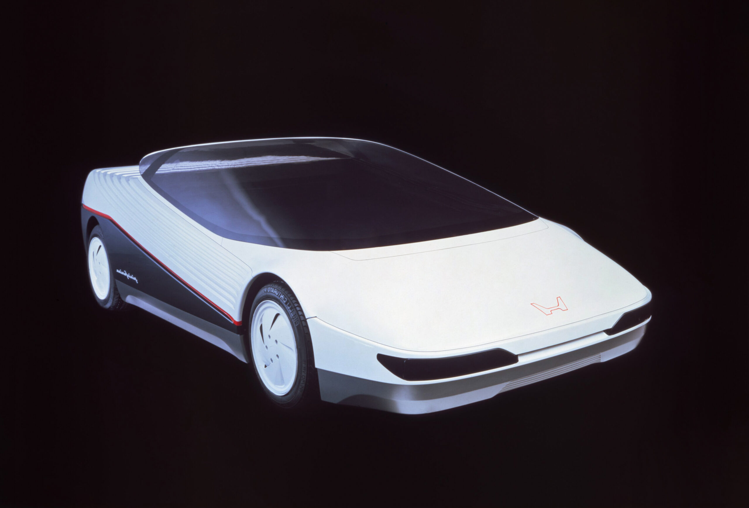 The HP-X employed advanced aerodynamics including “ground effects” and innovative cooling solutions for its mid-mounted 2.0-liter DOHC 24-valveV6 engine, which was based on a Honda F2 racing engine. There are no doors, instead the futuristic concept features a jet-fighter style removable single-piece Perspex canopy. The rear of the canopy extends into a fairing with two main functions – improving the car’s streamline appearance and serving as a driver-controlled air brake.Additionally, the HP-X explored the cutting-edge use of alternative materials including honeycomb panels, carbon fiber and Kevlar to reduce weight and improve performance.