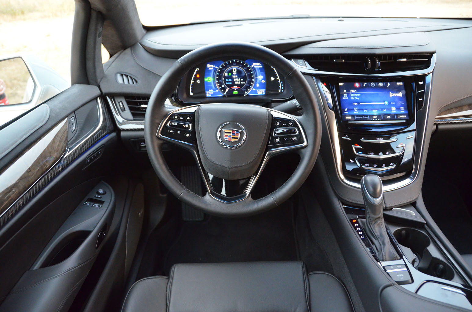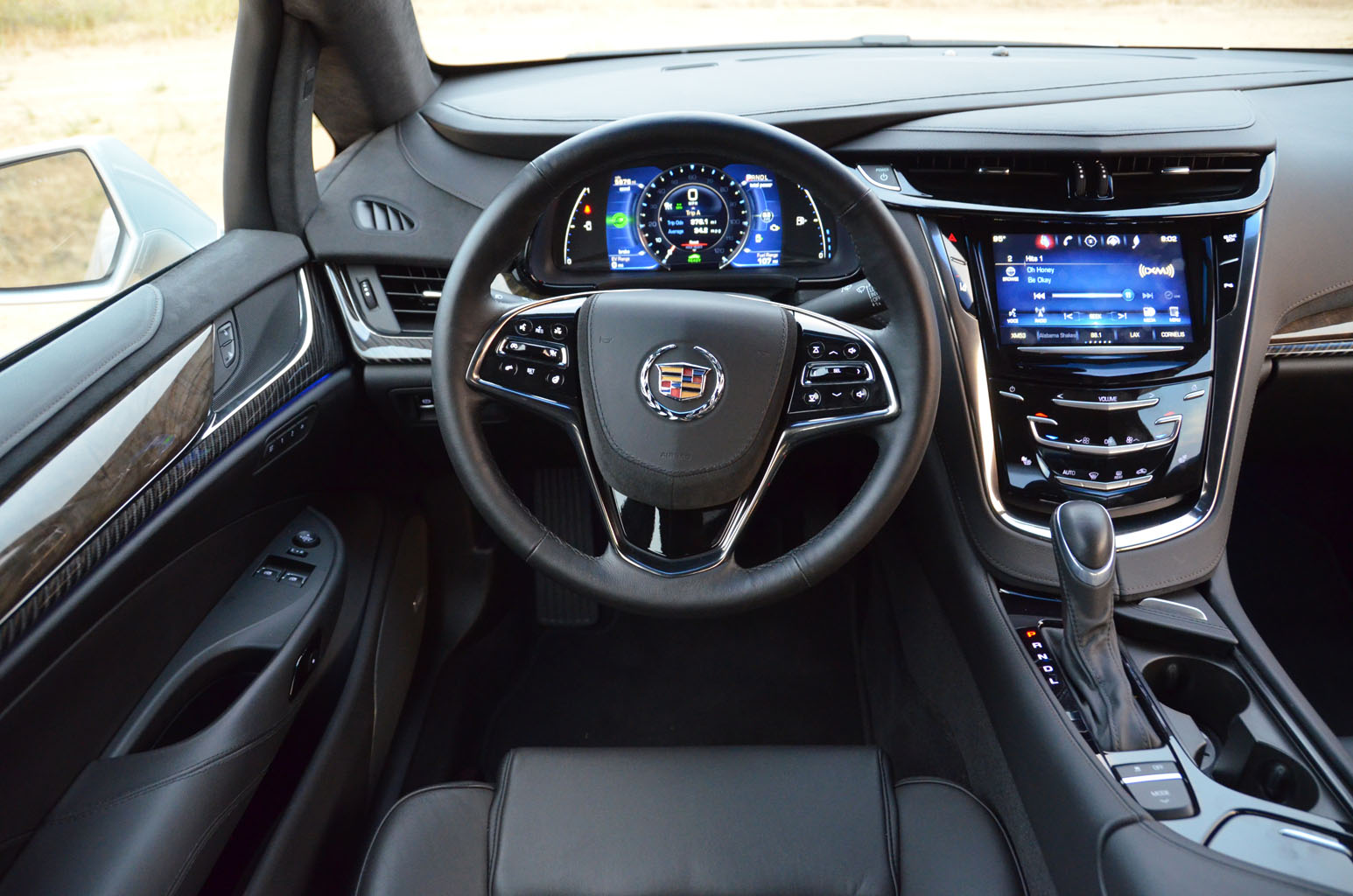 When we took delivery of our media vehicle it was “THE thing to have. It has the good looks, the excellent stance, to low and wide proportions, the taut Cadillac house style lines and surfacing.. All in all a very nice product. Getting into the car it shows the known Cadillac opulence, nice leather treatments, interesting combinations with wood and carbon textures, good driving position also for long distances, and an IP that is very familiar to Cadillac drivers, so nobody would doubt that this was an actual Cadillac product.