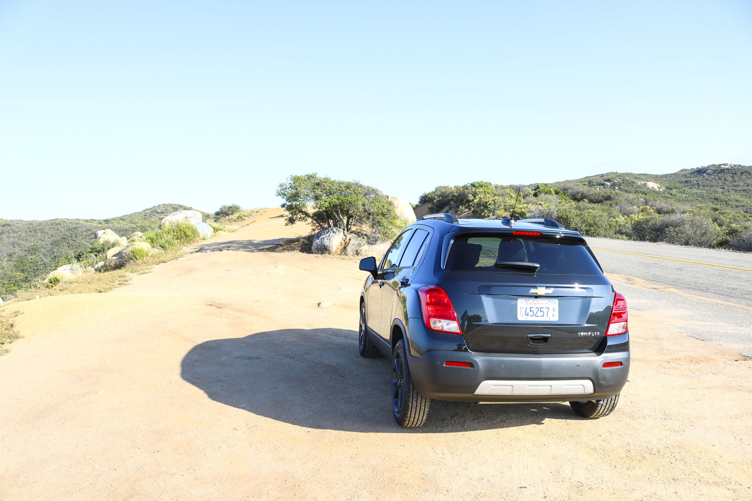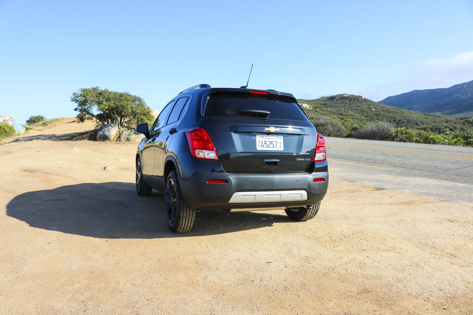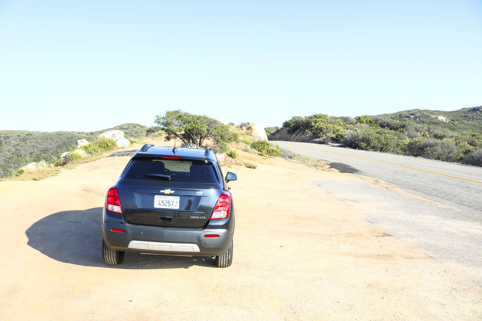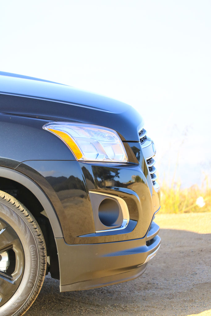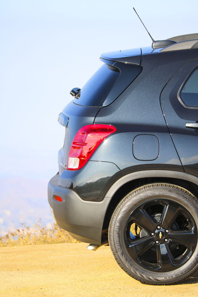 Significantly difficult to photograph in the bright California sunshine due to its black color, this Chevrolet Trax LTZ offered a lot of different impressions. The biggest one for me was the size. From seeing the images and videos, this is quite a cute little car to zoom around town with… NO!! This is not small at all. In fact, when I stand next to it with my 6’4″, the car is still not small. I fit in it comfortably, and I wouldn’t necessarily in a small car at all.