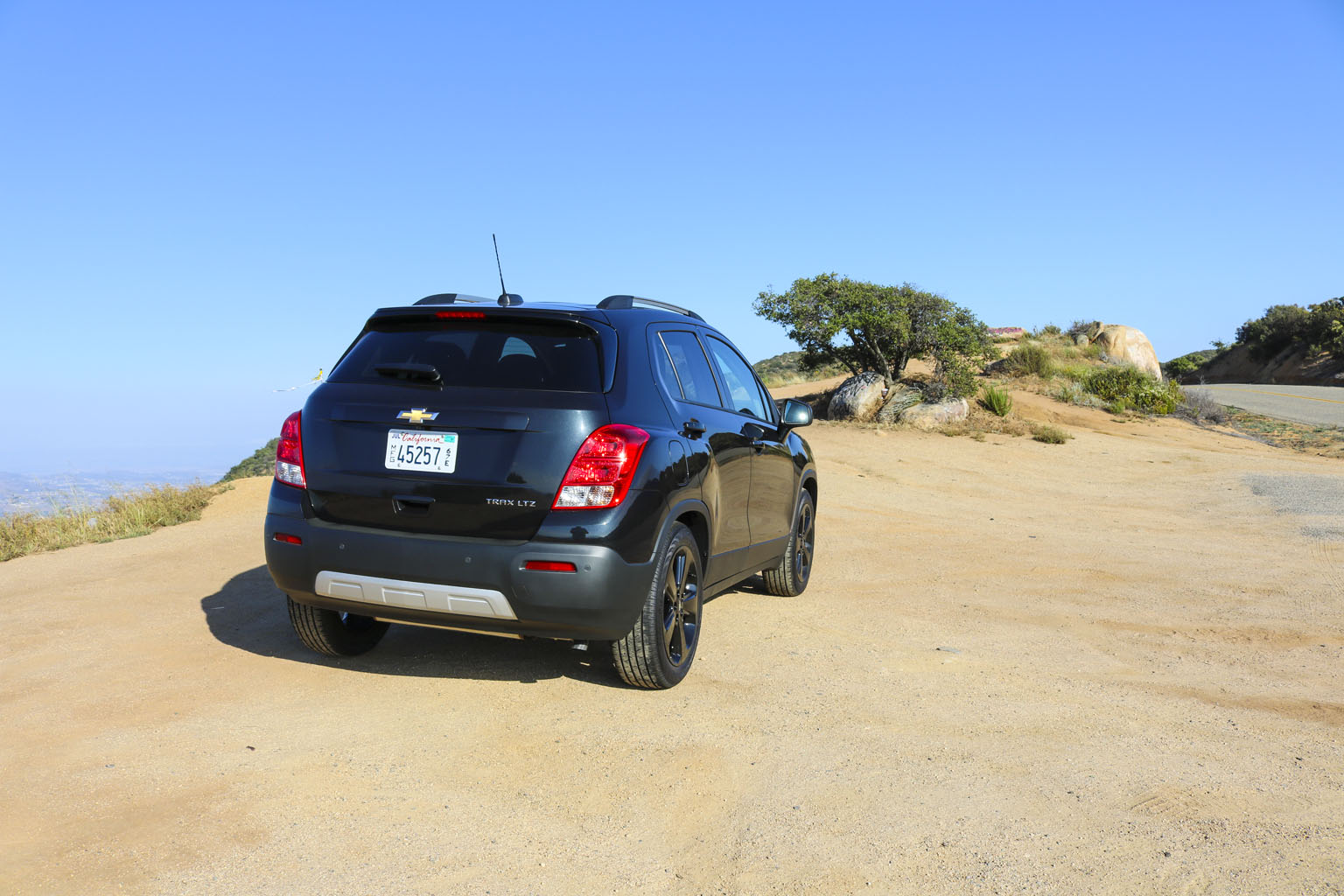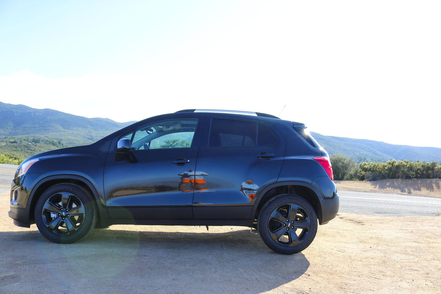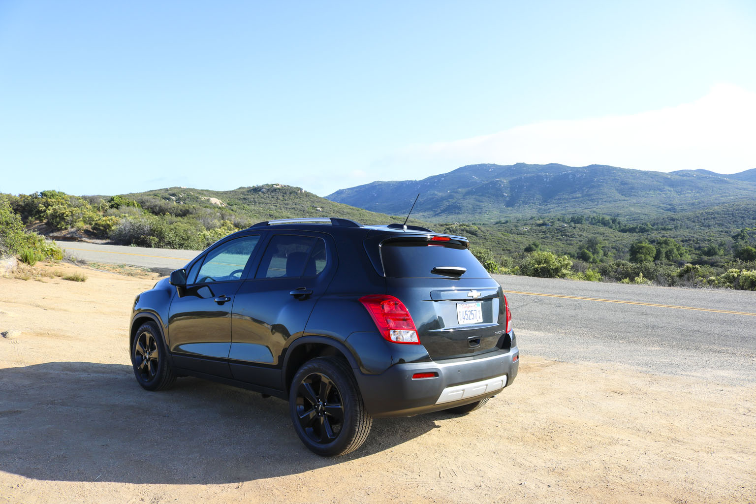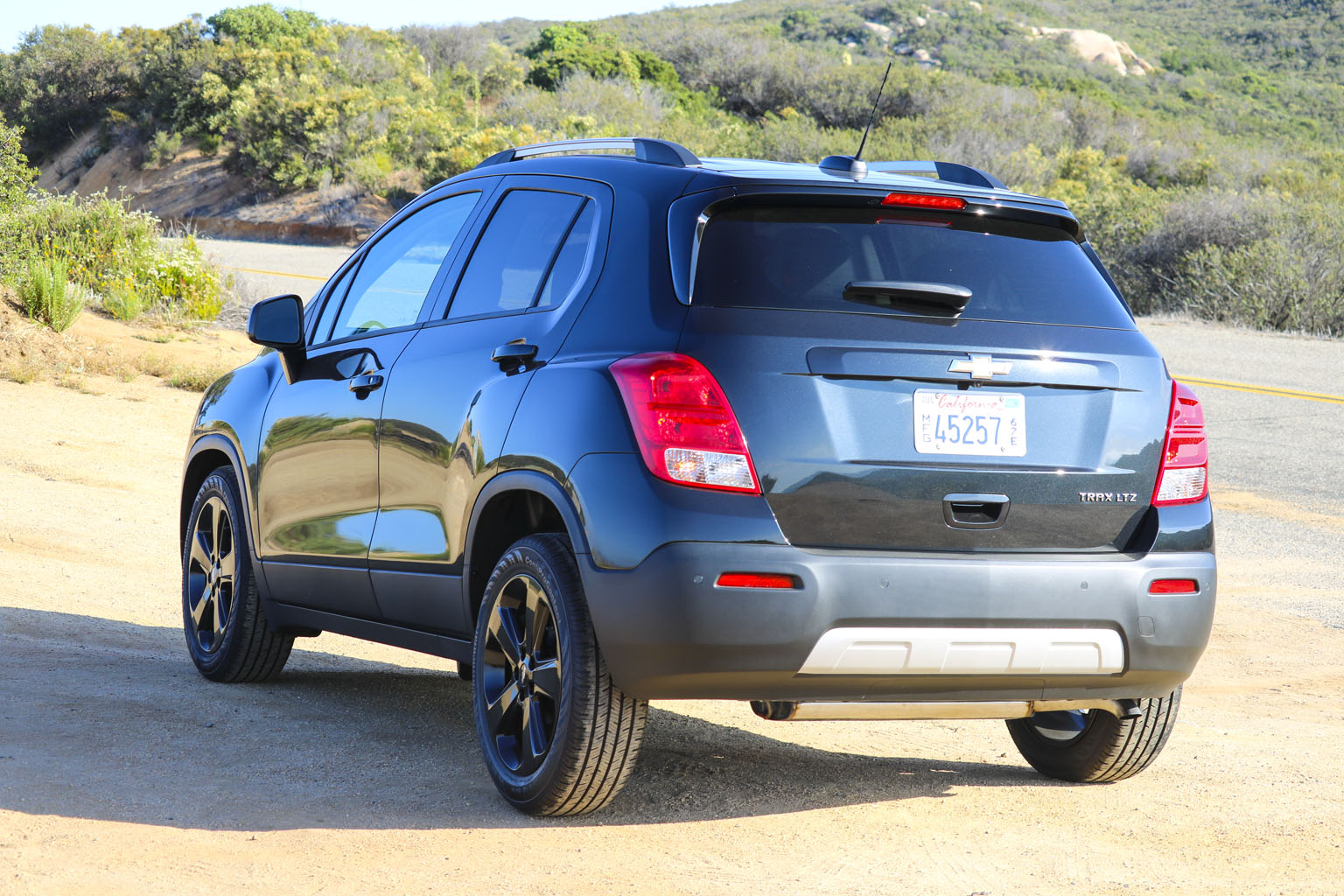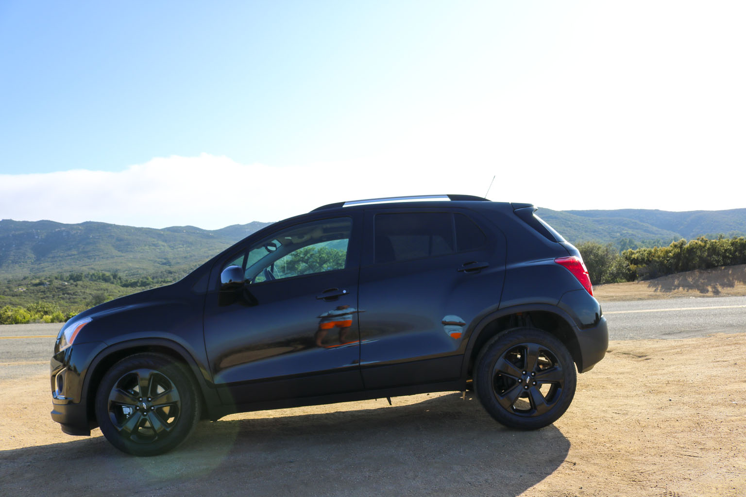 Significantly difficult to photograph in the bright California sunshine due to its black color, this Chevrolet Trax LTZ offered a lot of different impressions. The biggest one for me was the size. From seeing the images and videos, this is quite a cute little car to zoom around town with… NO!! This is not small at all. In fact, when I stand next to it with my 6’4″, the car is still not small. I fit in it comfortably, and I wouldn’t necessarily in a small car at all.