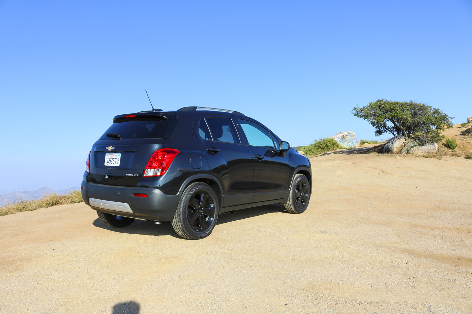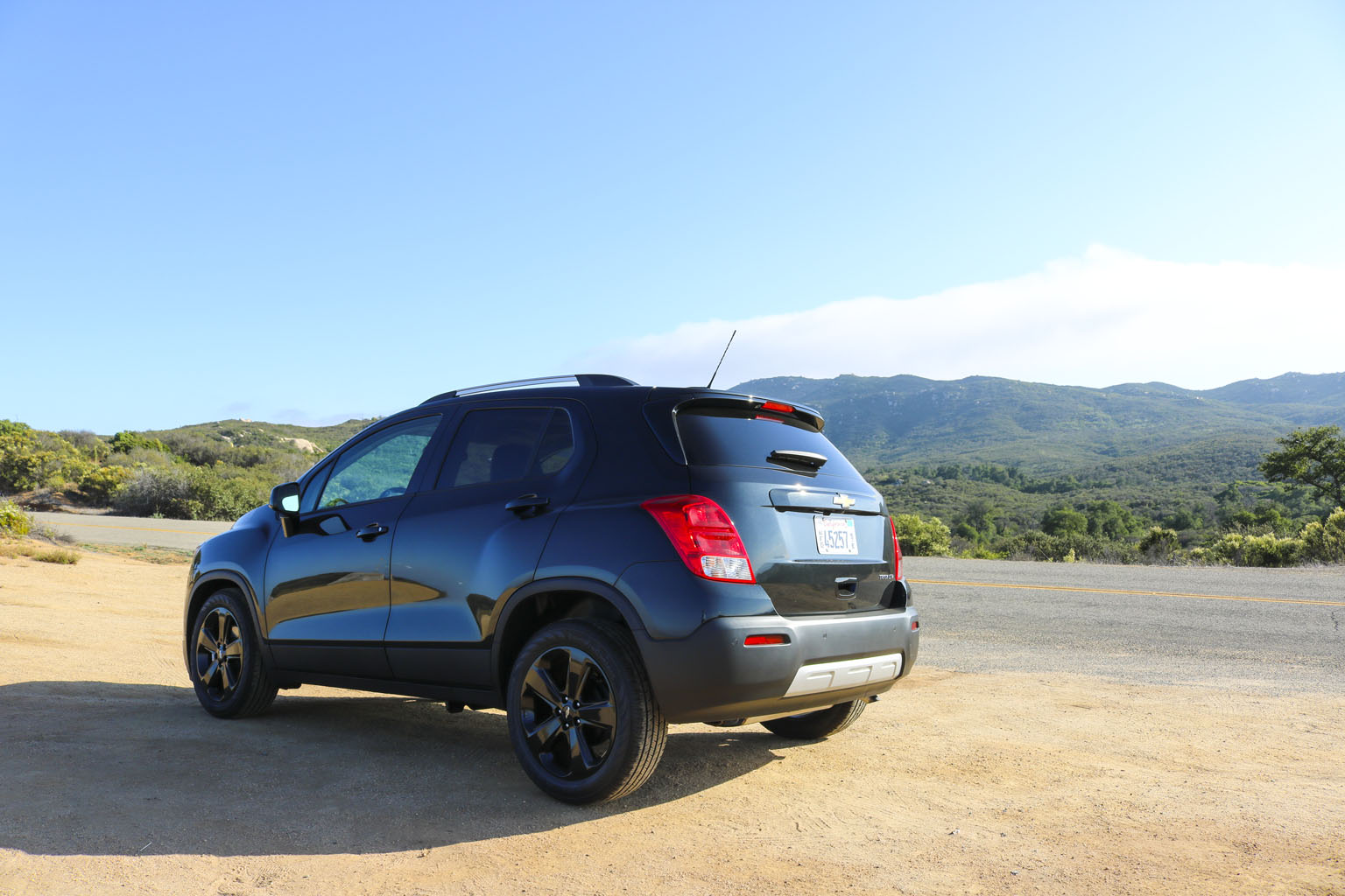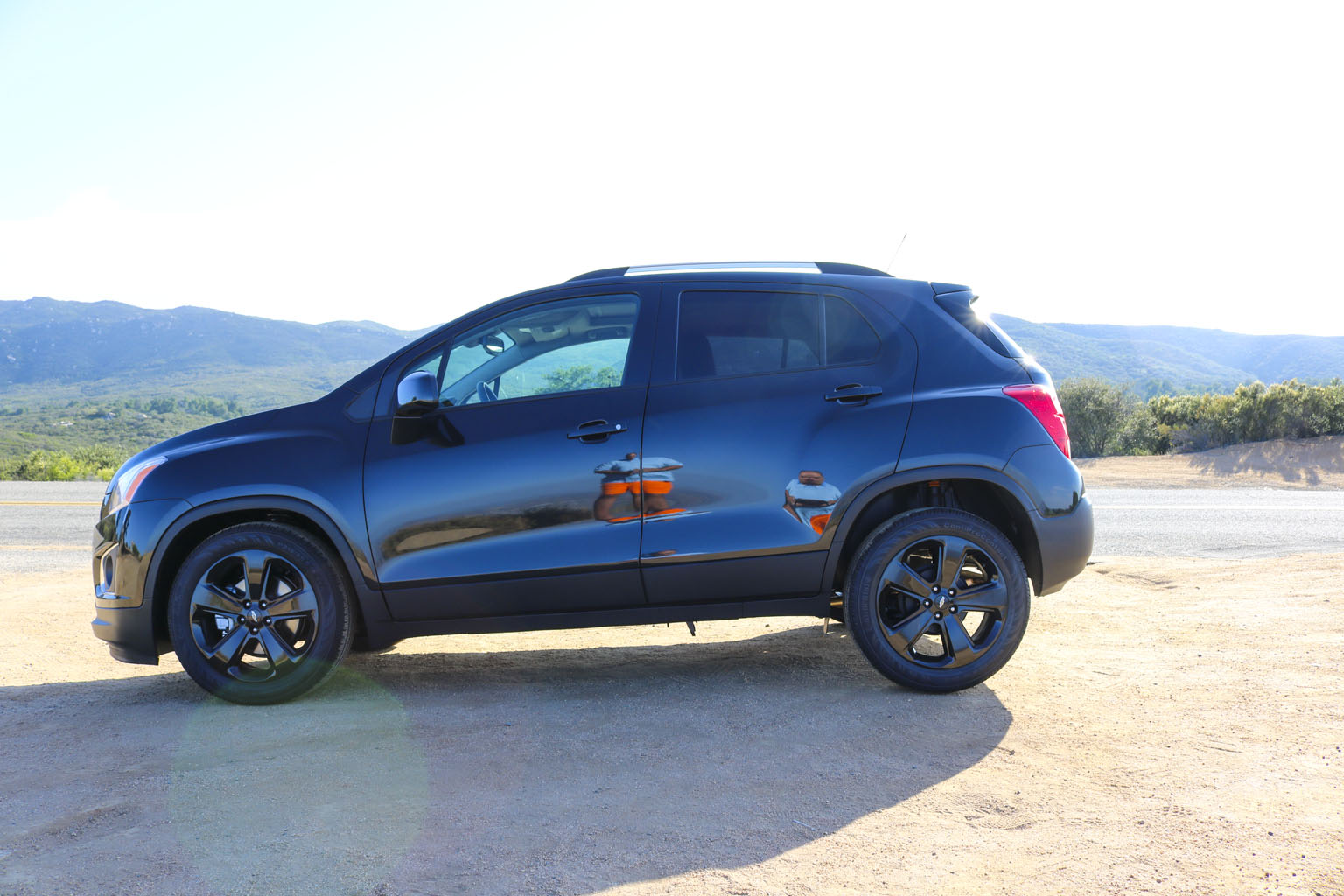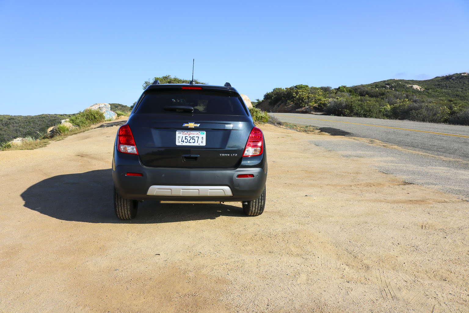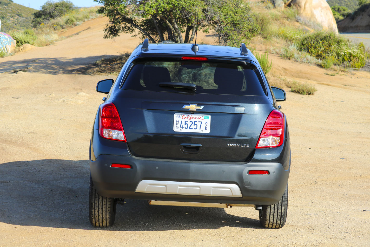 Significantly difficult to photograph in the bright California sunshine due to its black color, this Chevrolet Trax LTZ offered a lot of different impressions. The biggest one for me was the size. From seeing the images and videos, this is quite a cute little car to zoom around town with… NO!! This is not small at all. In fact, when I stand next to it with my 6’4″, the car is still not small. I fit in it comfortably, and I wouldn’t necessarily in a small car at all.
