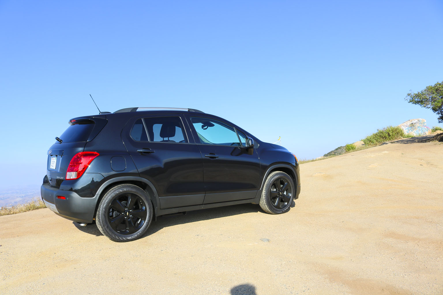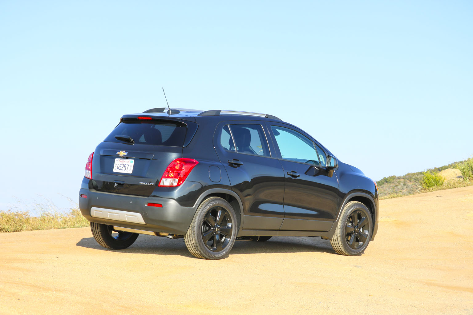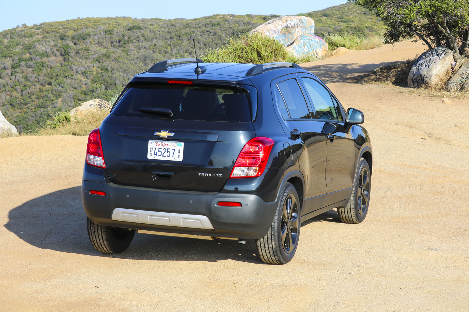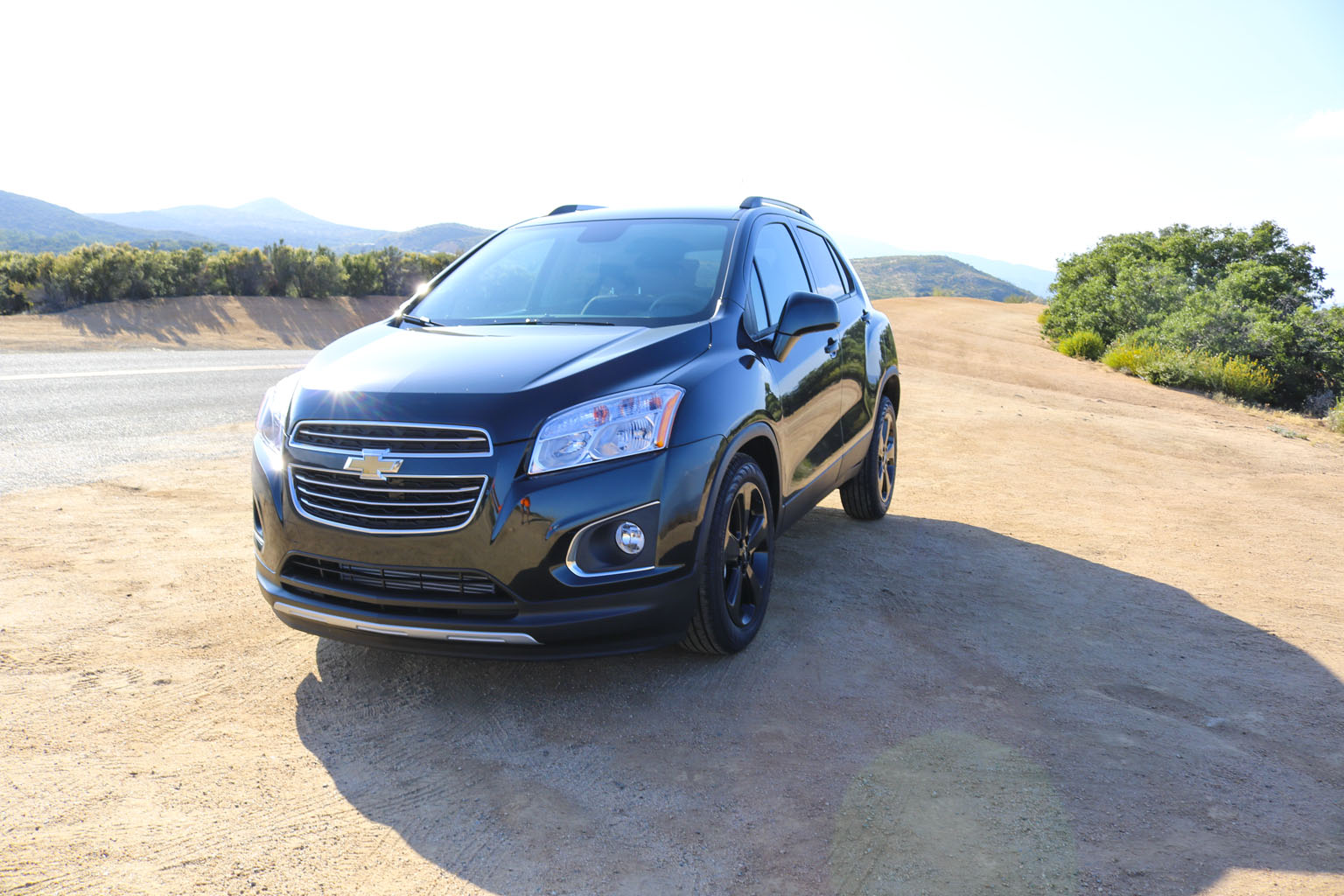 Significantly difficult to photograph in the bright California sunshine due to its black color, this Chevrolet Trax LTZ offered a lot of different impressions. The biggest one for me was the size. From seeing the images and videos, this is quite a cute little car to zoom around town with… NO!! This is not small at all. In fact, when I stand next to it with my 6’4″, the car is still not small. I fit in it comfortably, and I wouldn’t necessarily in a small car at all.