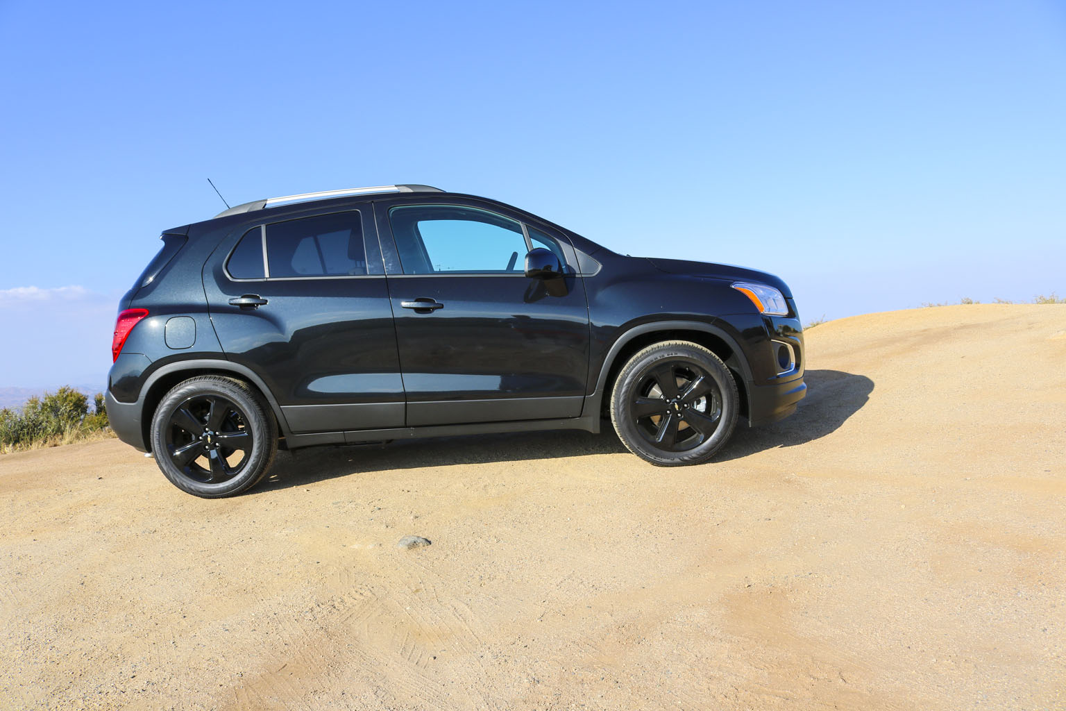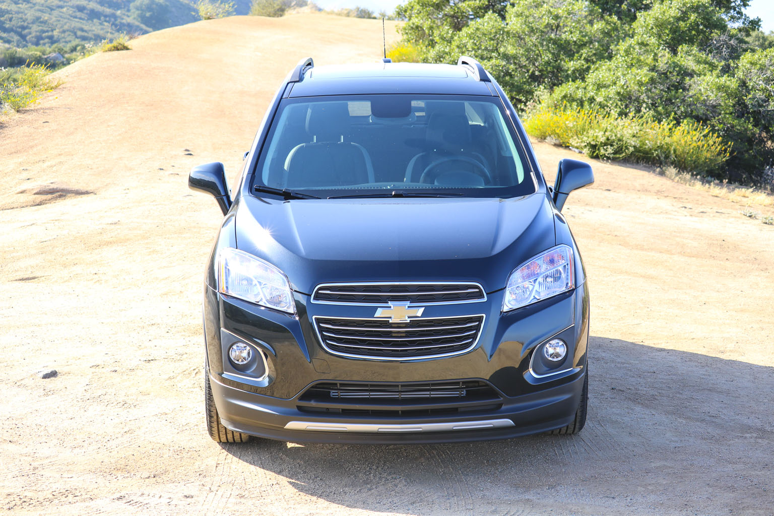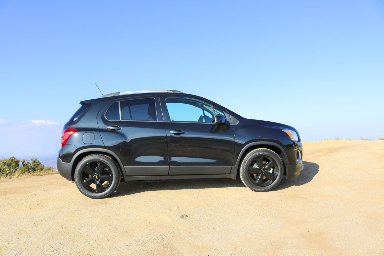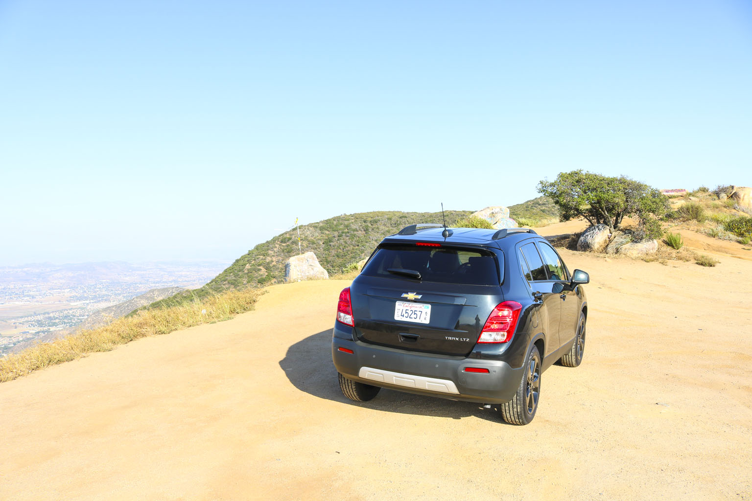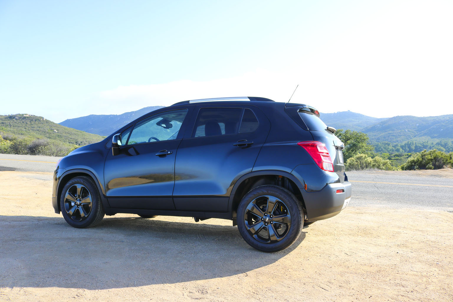 Significantly difficult to photograph in the bright California sunshine due to its black color, this Chevrolet Trax LTZ offered a lot of different impressions. The biggest one for me was the size. From seeing the images and videos, this is quite a cute little car to zoom around town with… NO!! This is not small at all. In fact, when I stand next to it with my 6’4″, the car is still not small. I fit in it comfortably, and I wouldn’t necessarily in a small car at all.