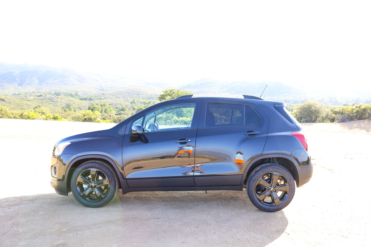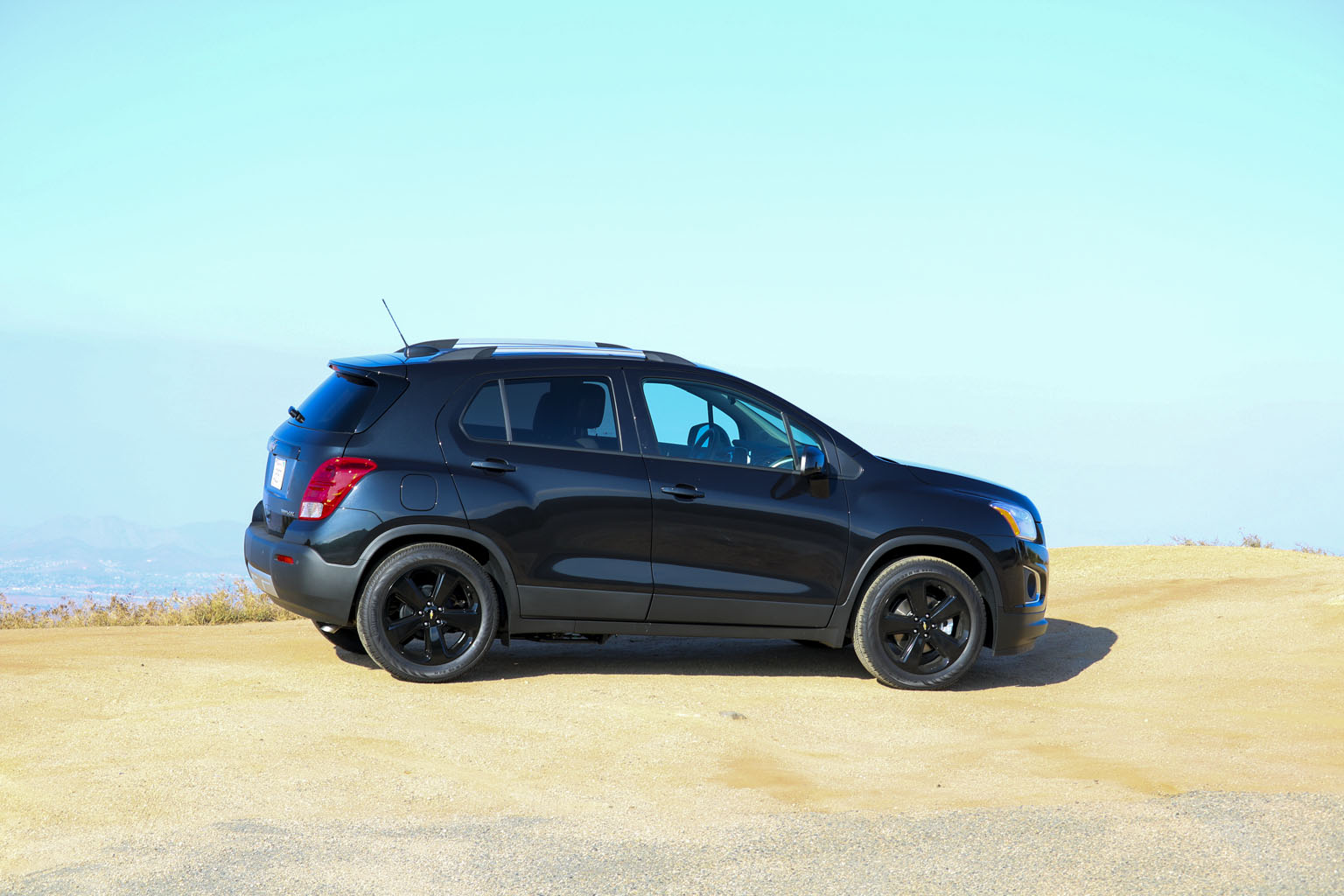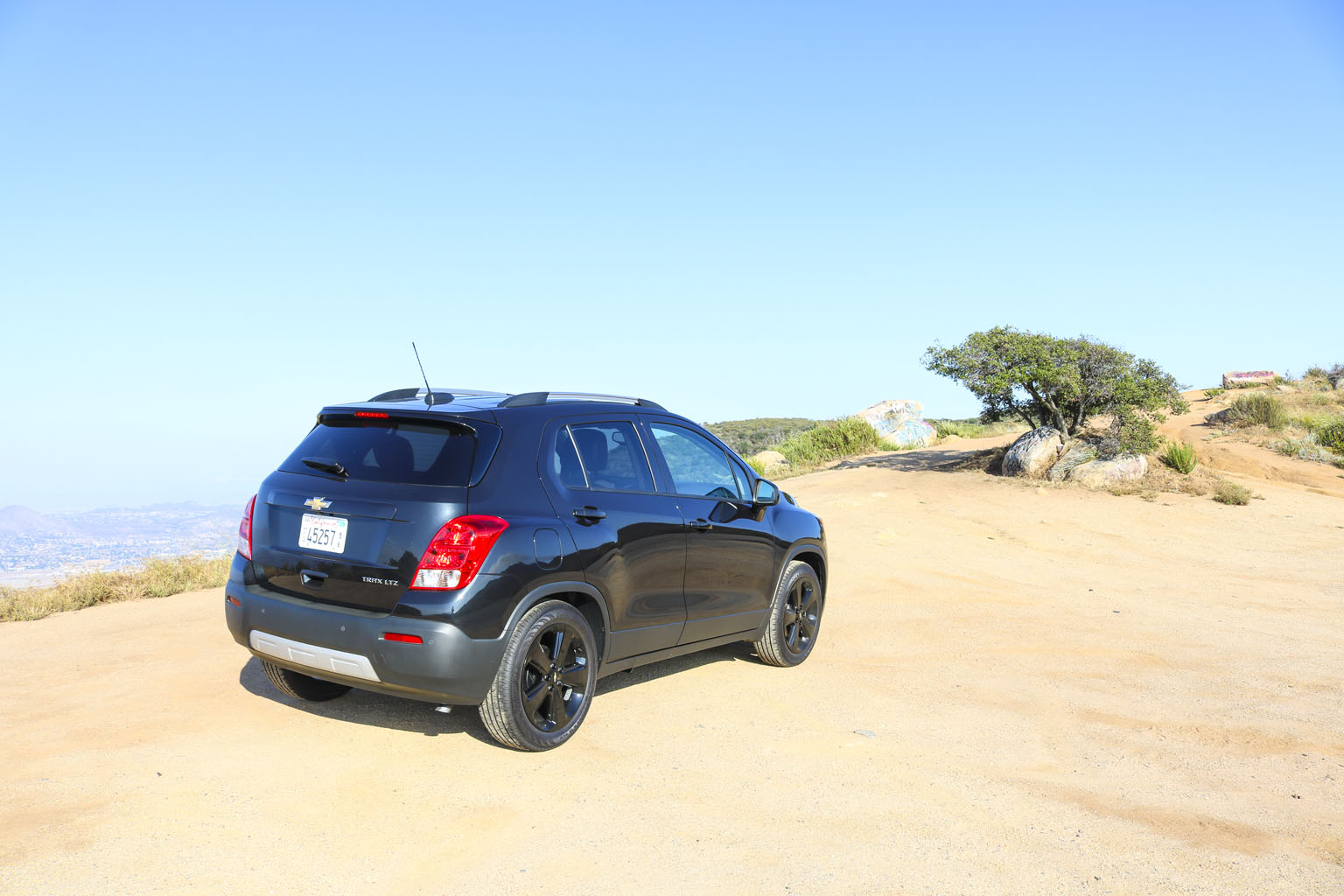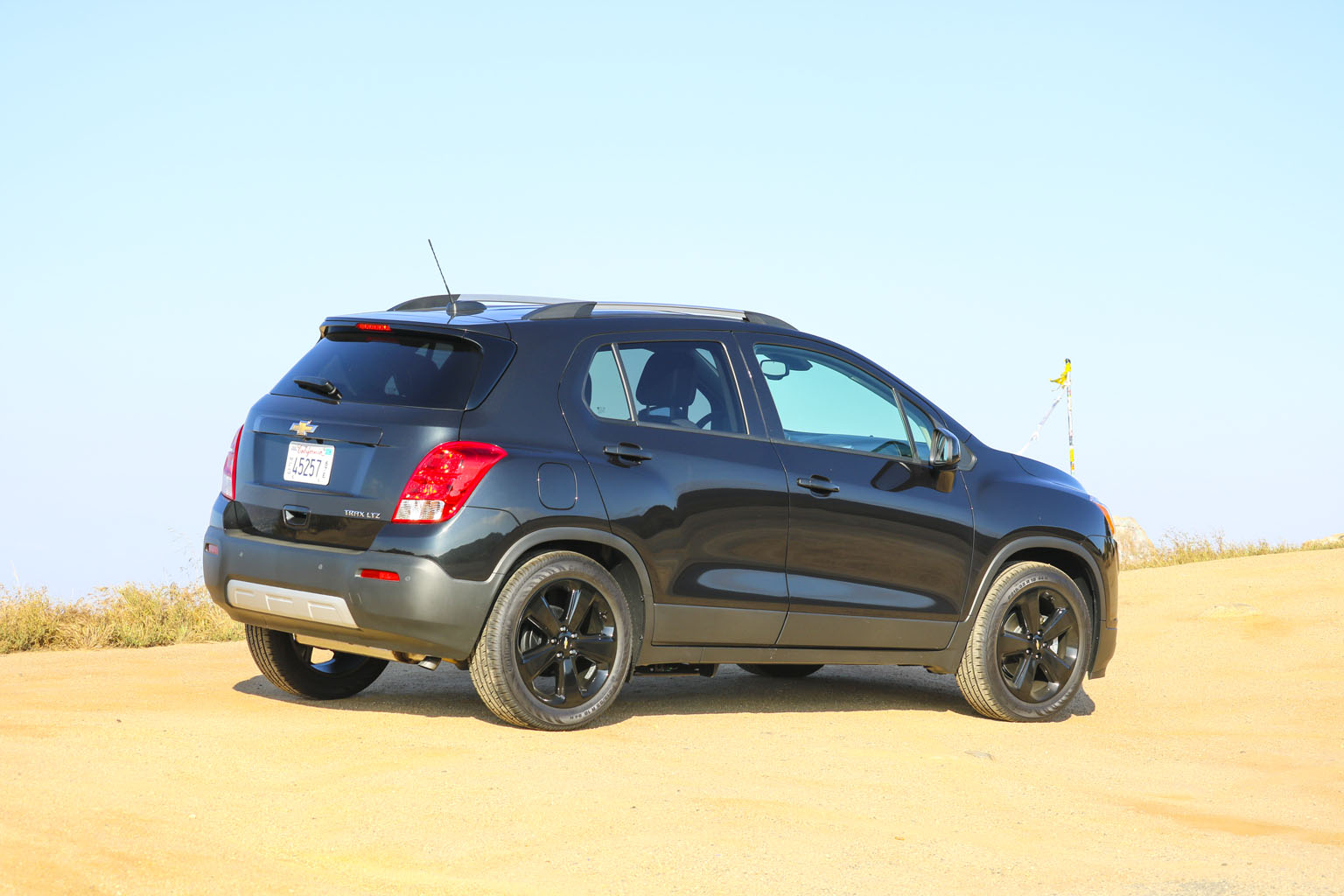 Significantly difficult to photograph in the bright California sunshine due to its black color, this Chevrolet Trax LTZ offered a lot of different impressions. The biggest one for me was the size. From seeing the images and videos, this is quite a cute little car to zoom around town with… NO!! This is not small at all. In fact, when I stand next to it with my 6’4″, the car is still not small. I fit in it comfortably, and I wouldn’t necessarily in a small car at all.