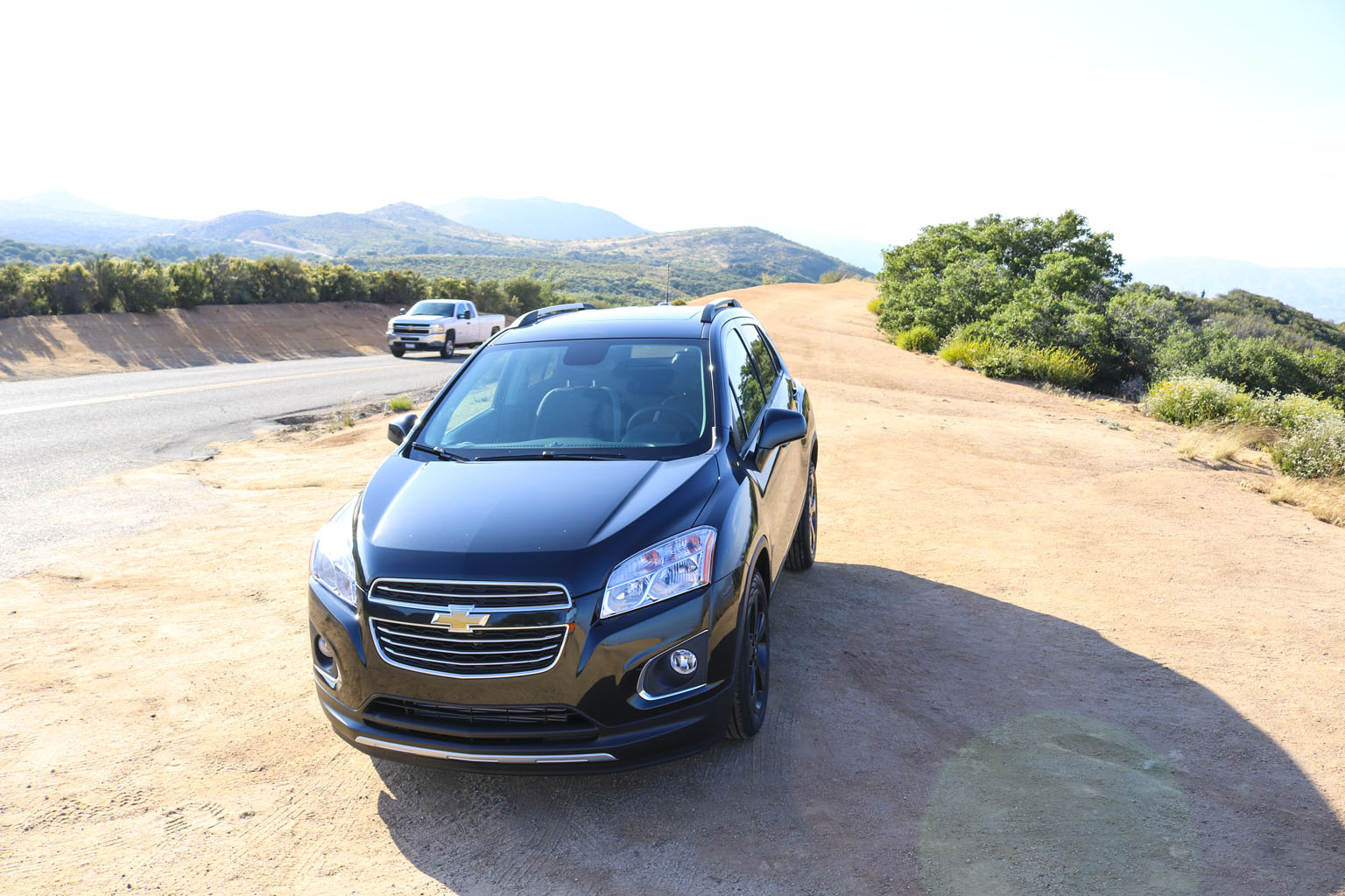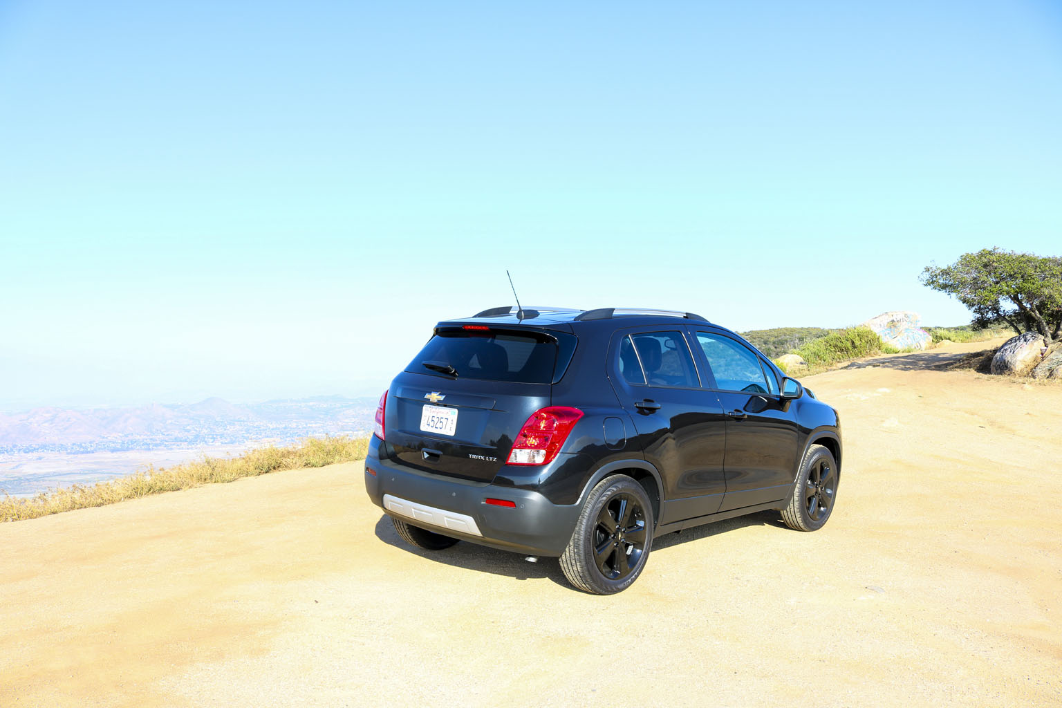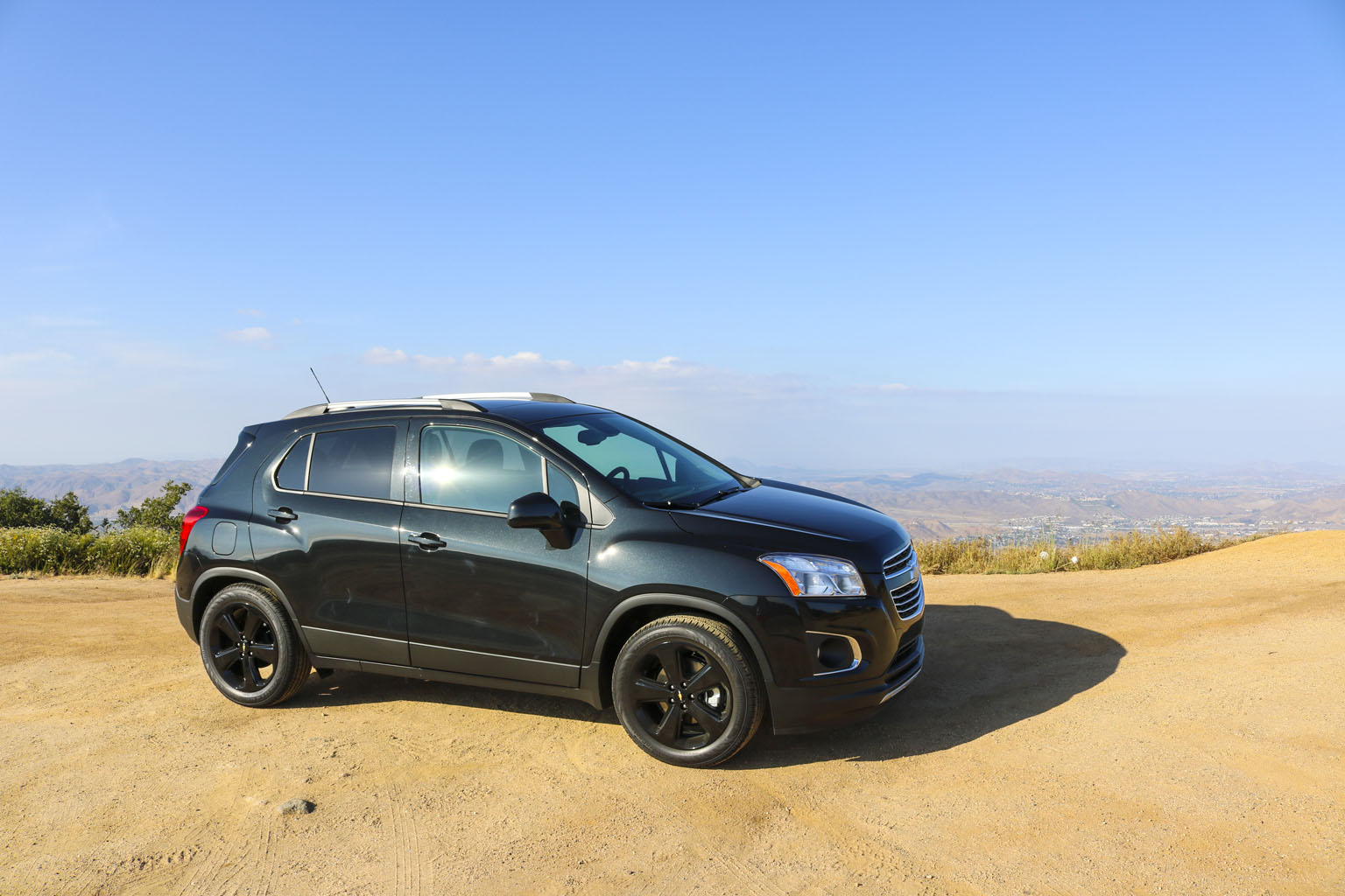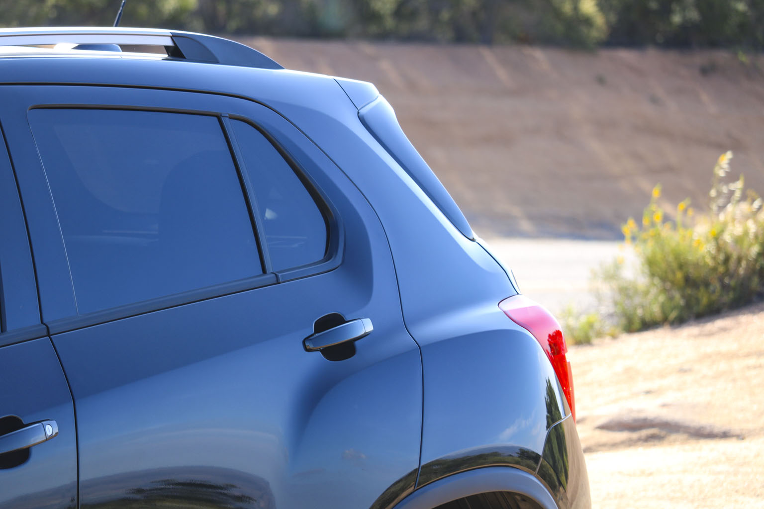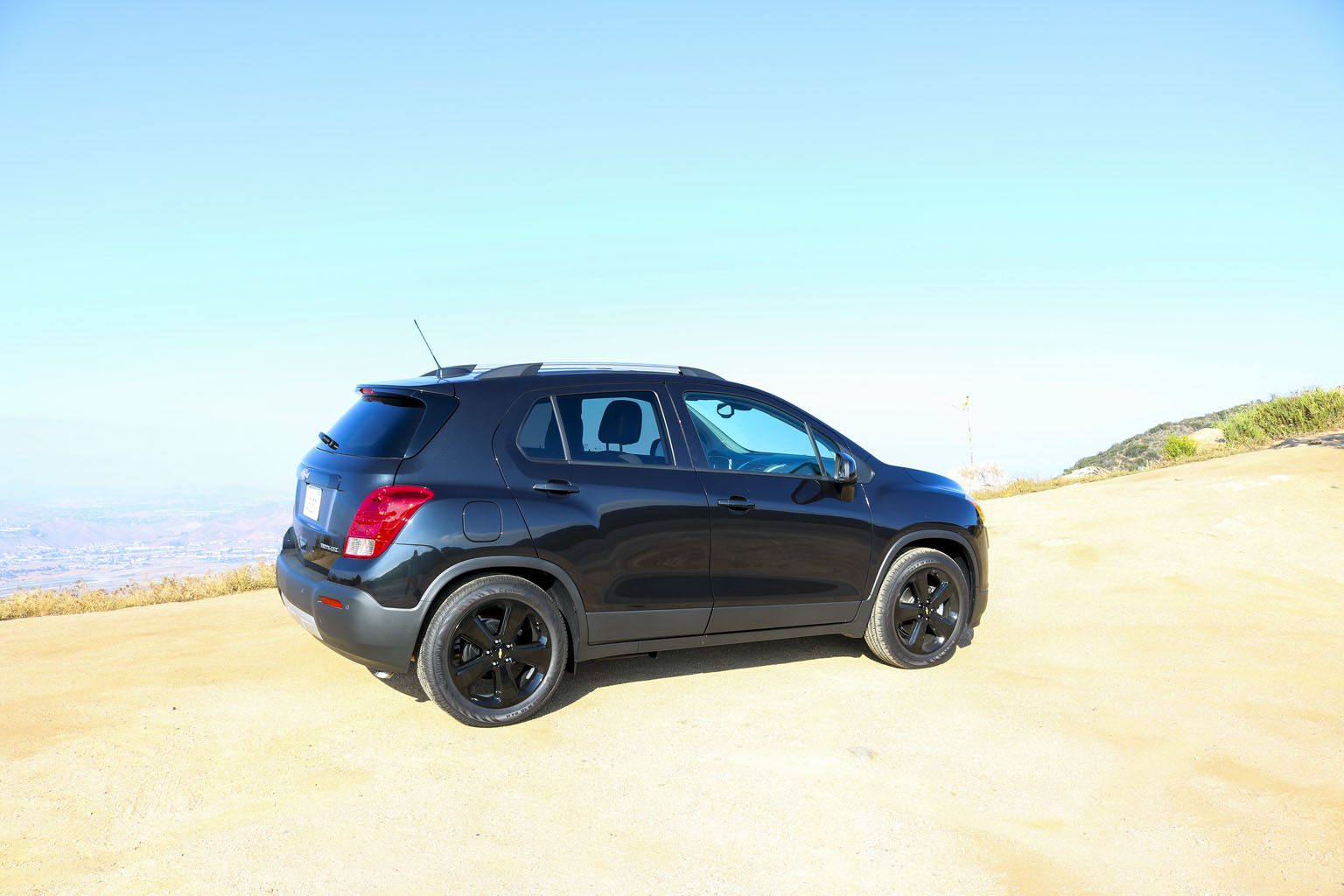 Significantly difficult to photograph in the bright California sunshine due to its black color, this Chevrolet Trax LTZ offered a lot of different impressions. The biggest one for me was the size. From seeing the images and videos, this is quite a cute little car to zoom around town with… NO!! This is not small at all. In fact, when I stand next to it with my 6’4″, the car is still not small. I fit in it comfortably, and I wouldn’t necessarily in a small car at all.
