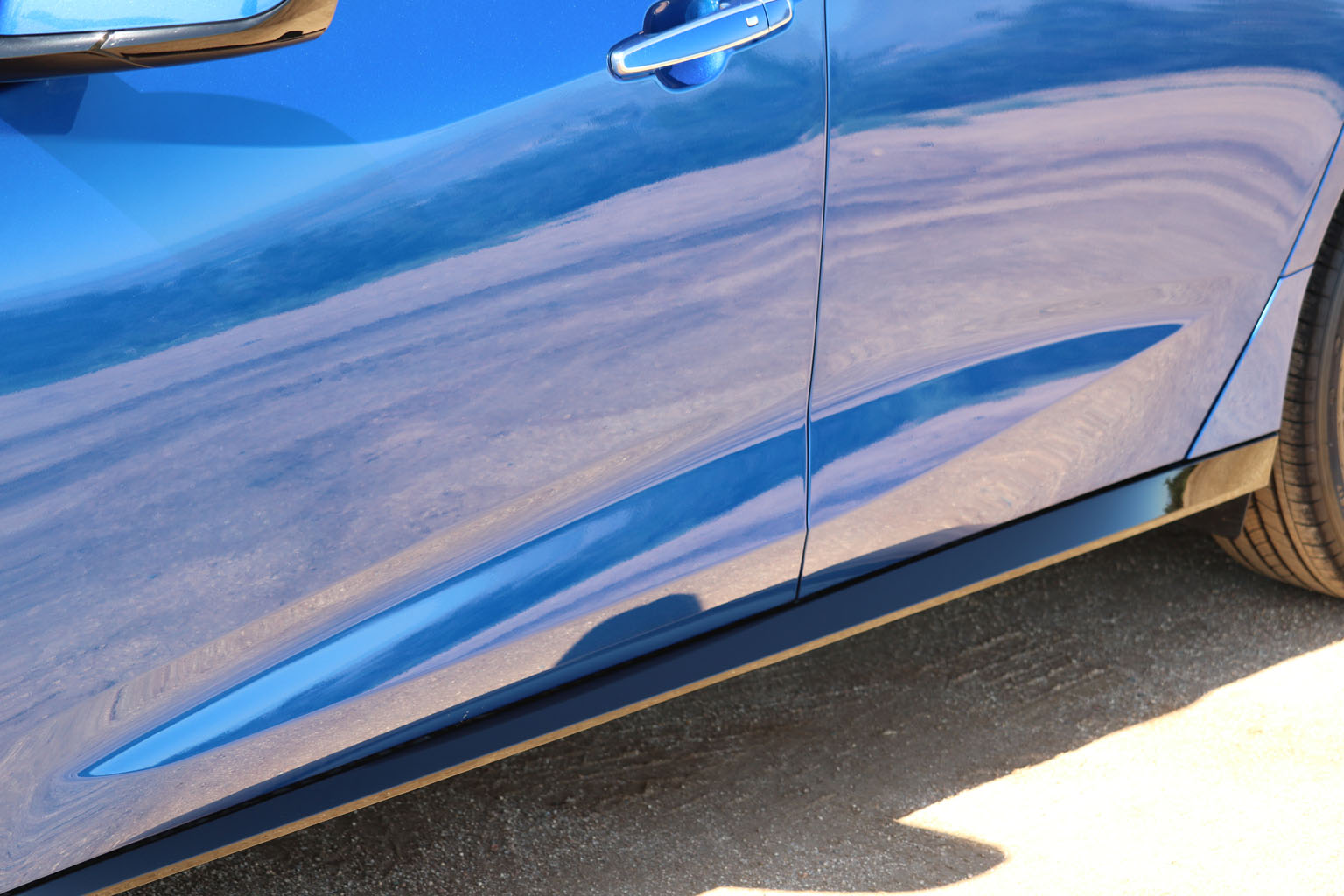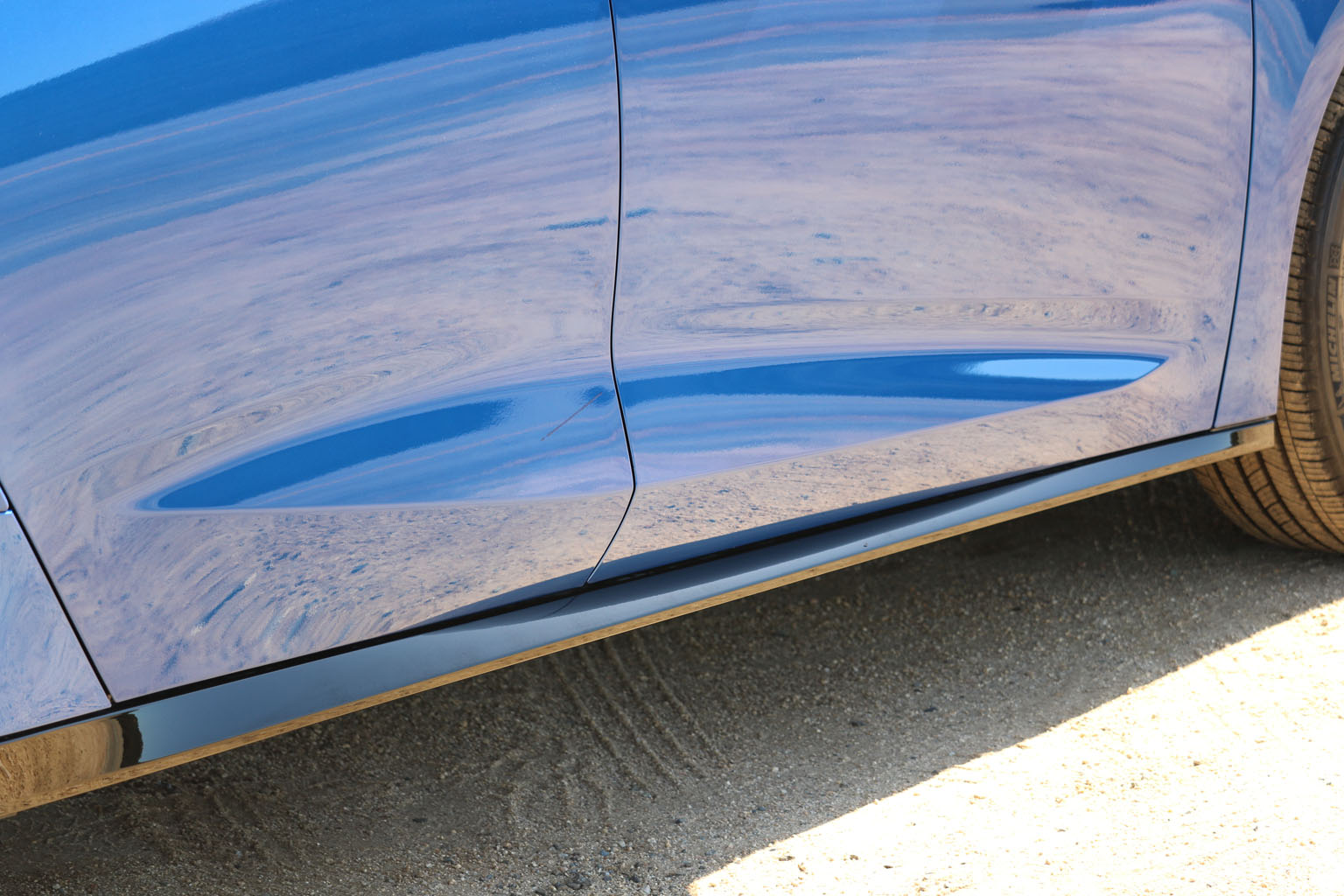 One small concern I have is the overall center line. It seems that the highest point is too far forward, too centrally placed, which would not be bad if it was followed by a more subtle downward curve behind it, but instead that curve seems to almost break at that center point. It doesn’t only hurt the overall view, it also compromises interior headroom in the rear. Carrying that height of the center on for a little longer and bending it down more gradually wouldn’t reap havoc on the aerodynamics, and it would improve the usability of the car.