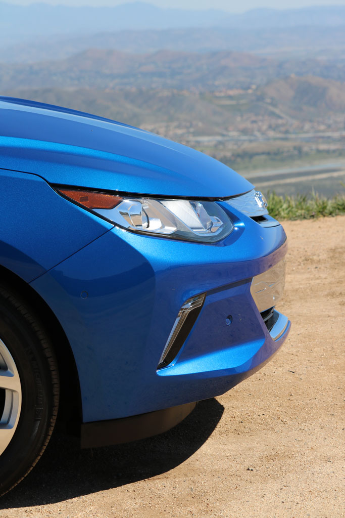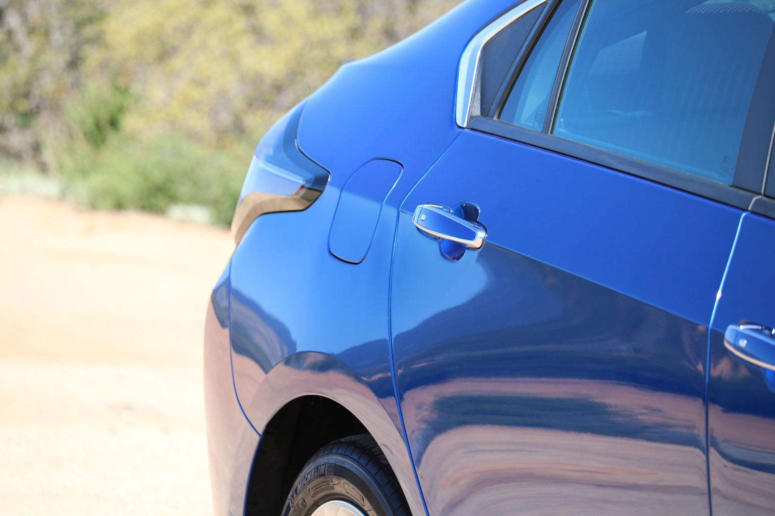 I had really been looking forward to driving the new Chevrolet Volt. I remember not being too convinced of the exterior design on the previous generation, especially the blacked out areas below the side windows to me were too far fetched. I have seen the new Volt go by a few times already and I was pleasantly surprised. A closer look only confirmed how much more appealing this Volt is. I liked the general sculpting on the exterior surfaces, with some interesting changes in surface going on, and the attention to details seemed to be just right as well. The headlight units as well as the repeated Chevrolet bowtie in the shielding on upper and lower grille do make it stand out.