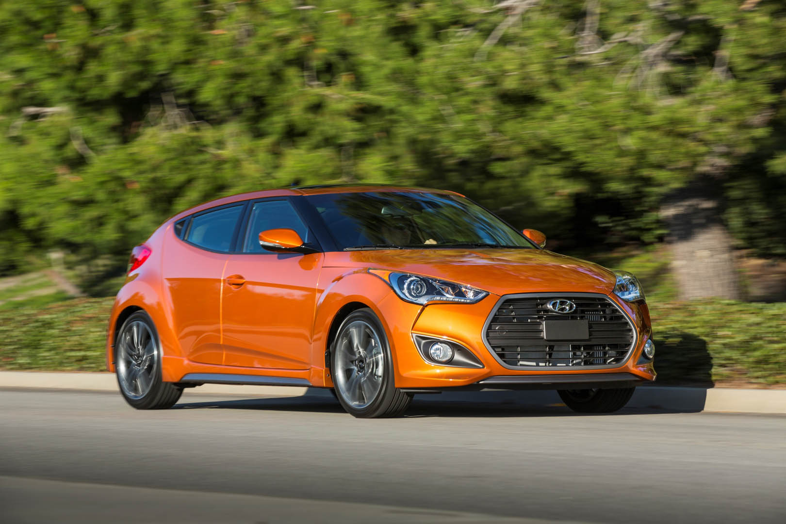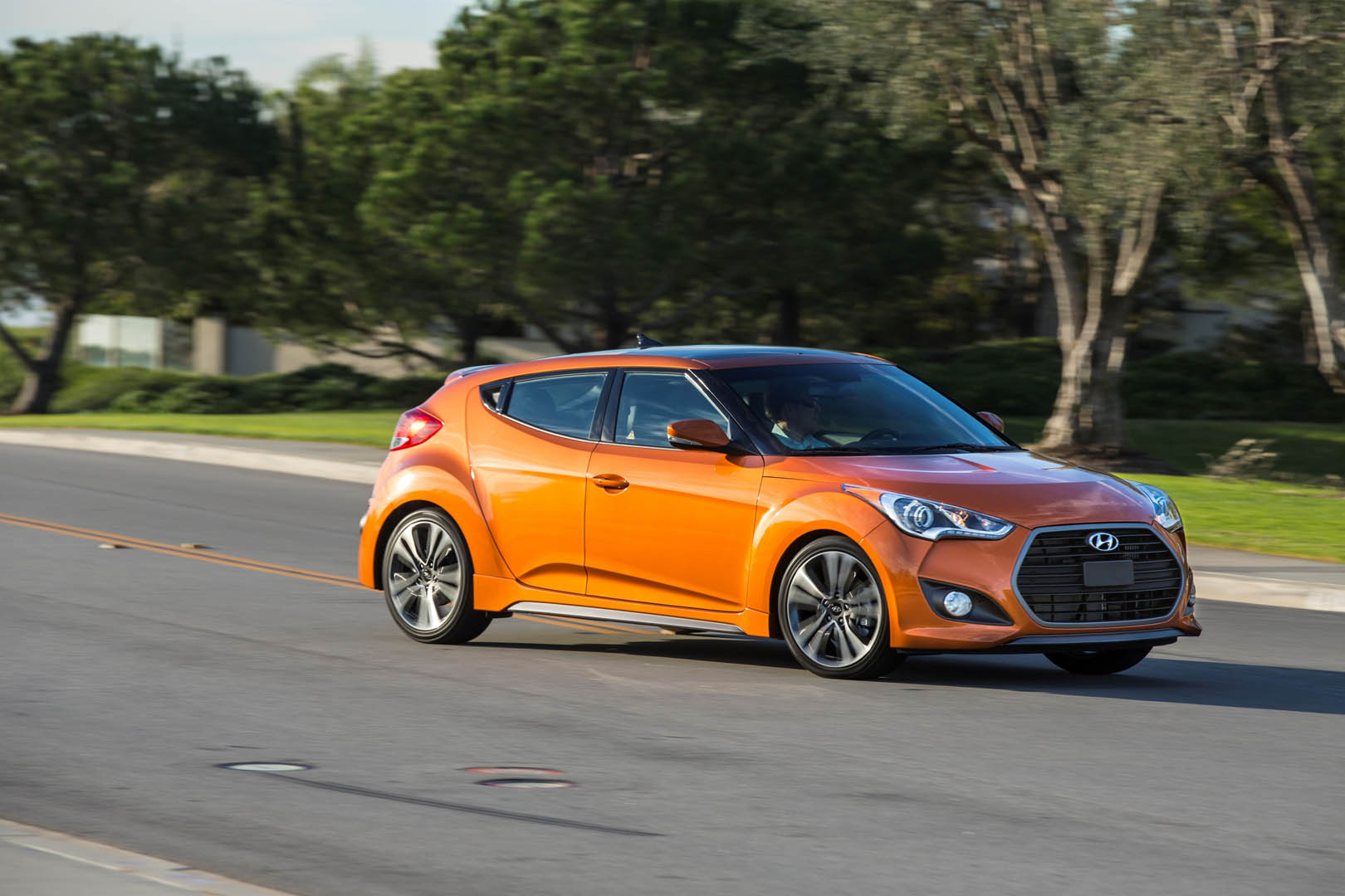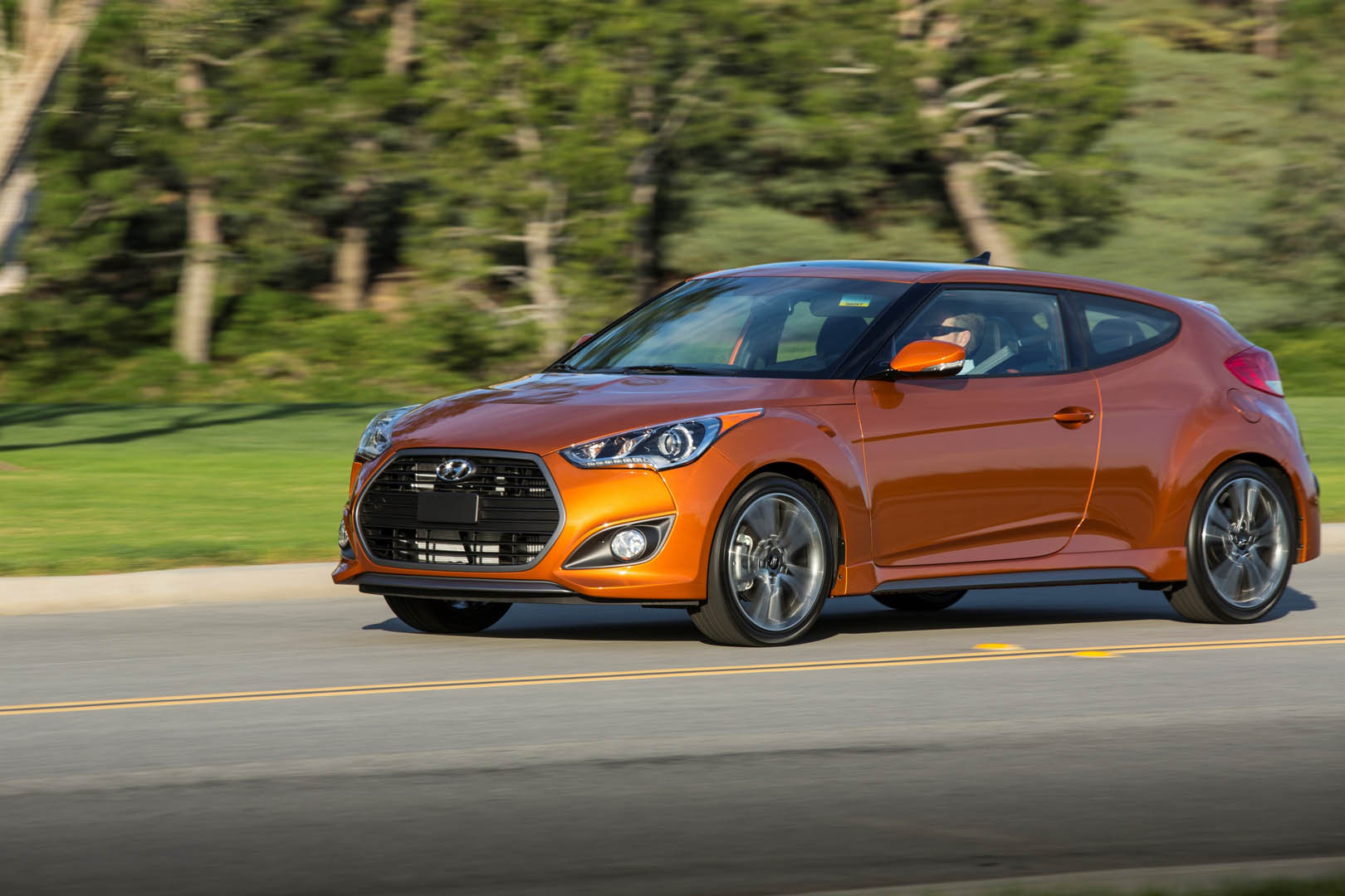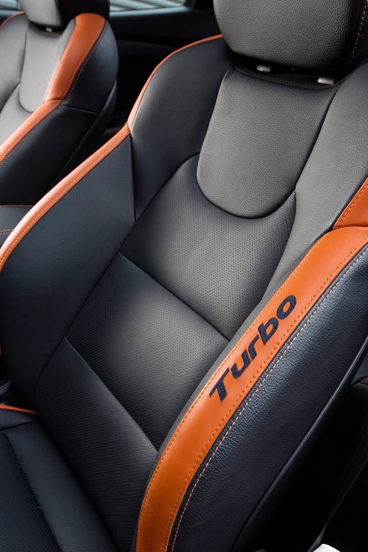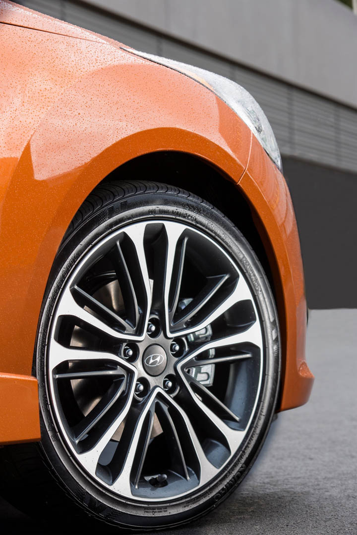 The exterior has been updated with the latest Hyundai design identity featured on the front and the rear, and the color and trim has helped to keep the Veloster a modern and interesting alternative. The orange interior touches combined with the choice in material really move it in a much higher perceived category than it really is.