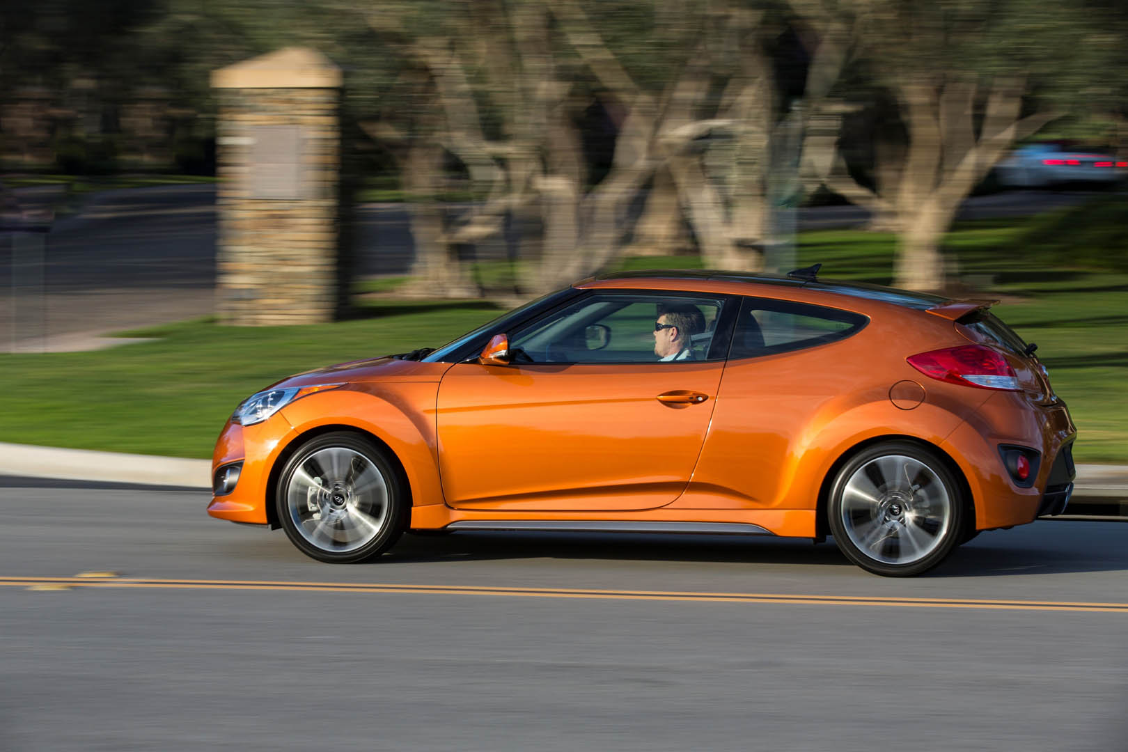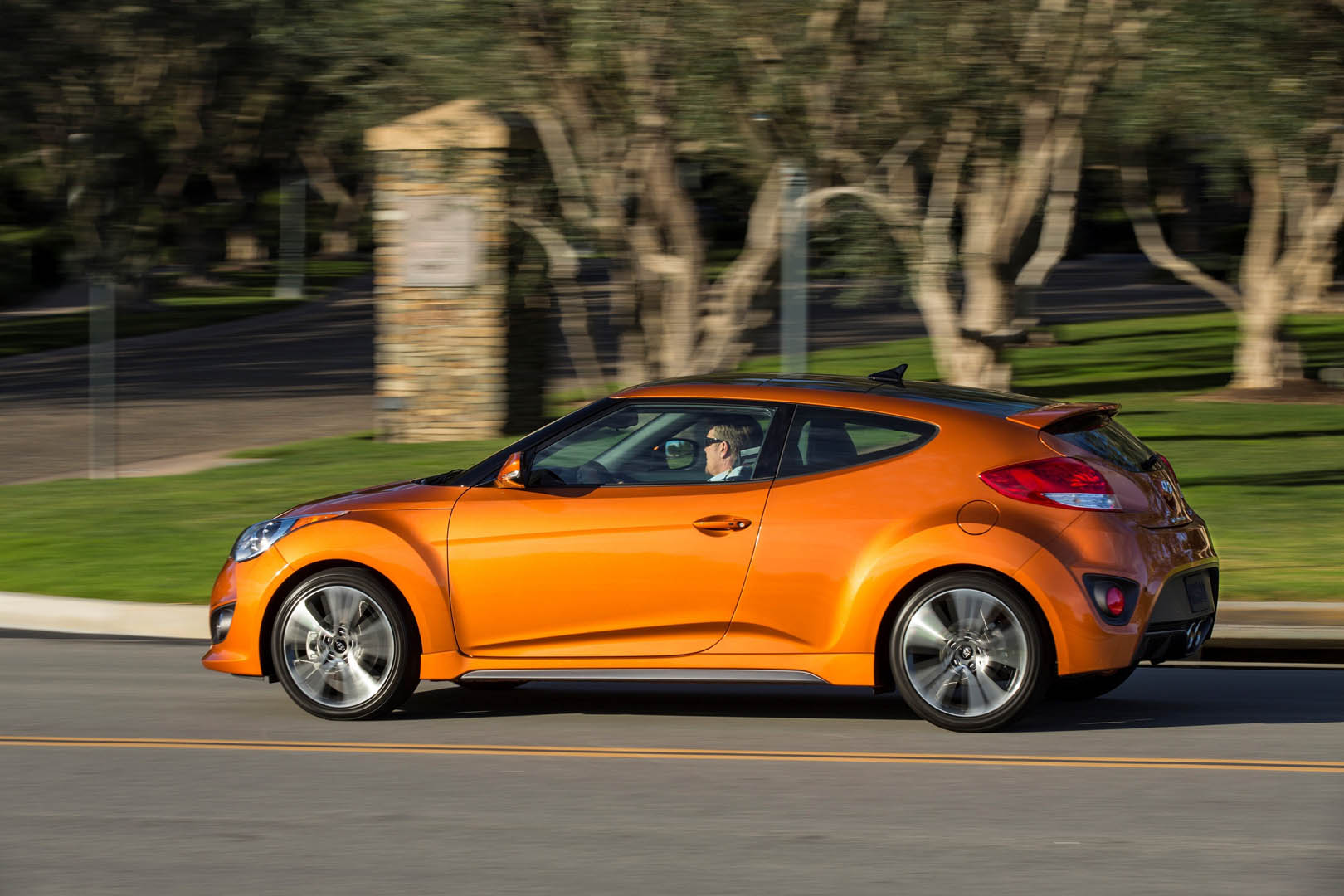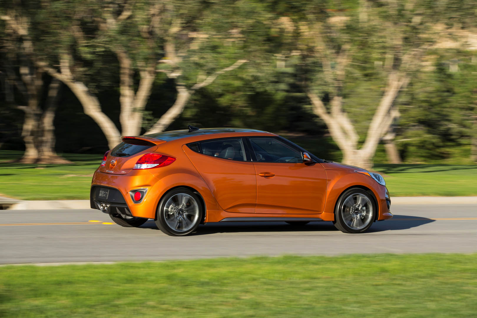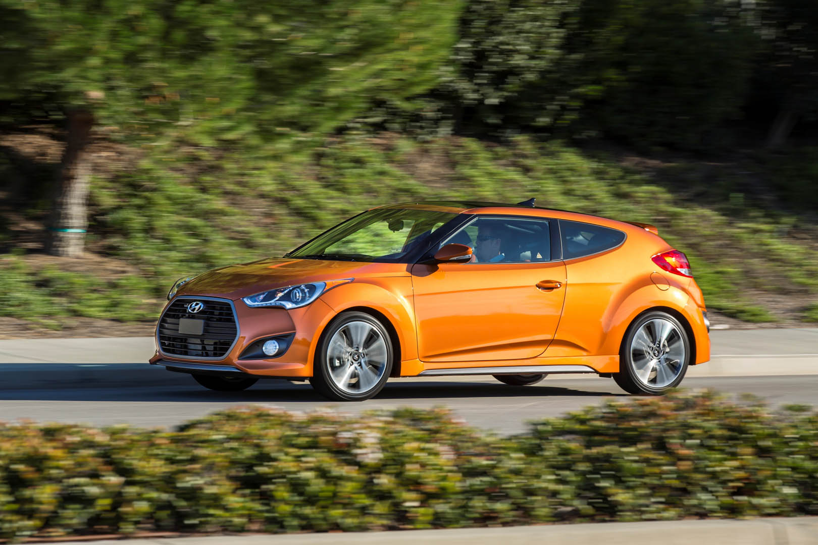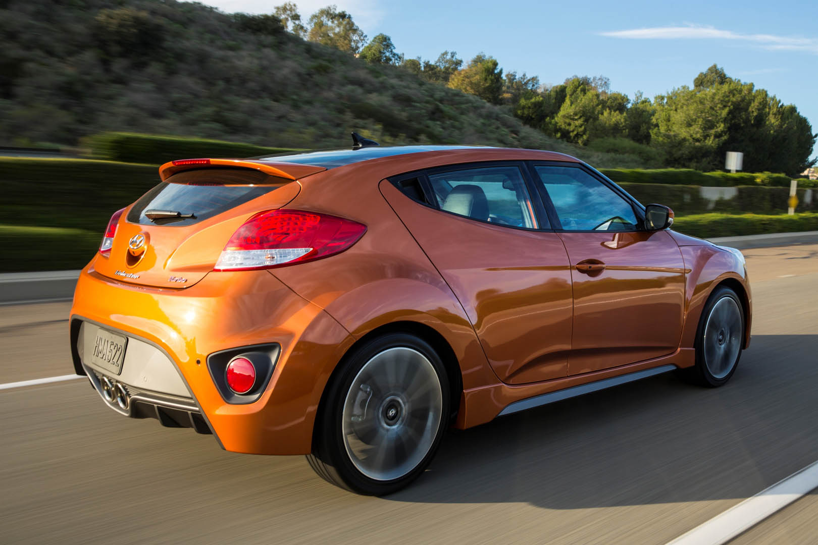 The exterior has been updated with the latest Hyundai design identity featured on the front and the rear, and the color and trim has helped to keep the Veloster a modern and interesting alternative. The orange interior touches combined with the choice in material really move it in a much higher perceived category than it really is.