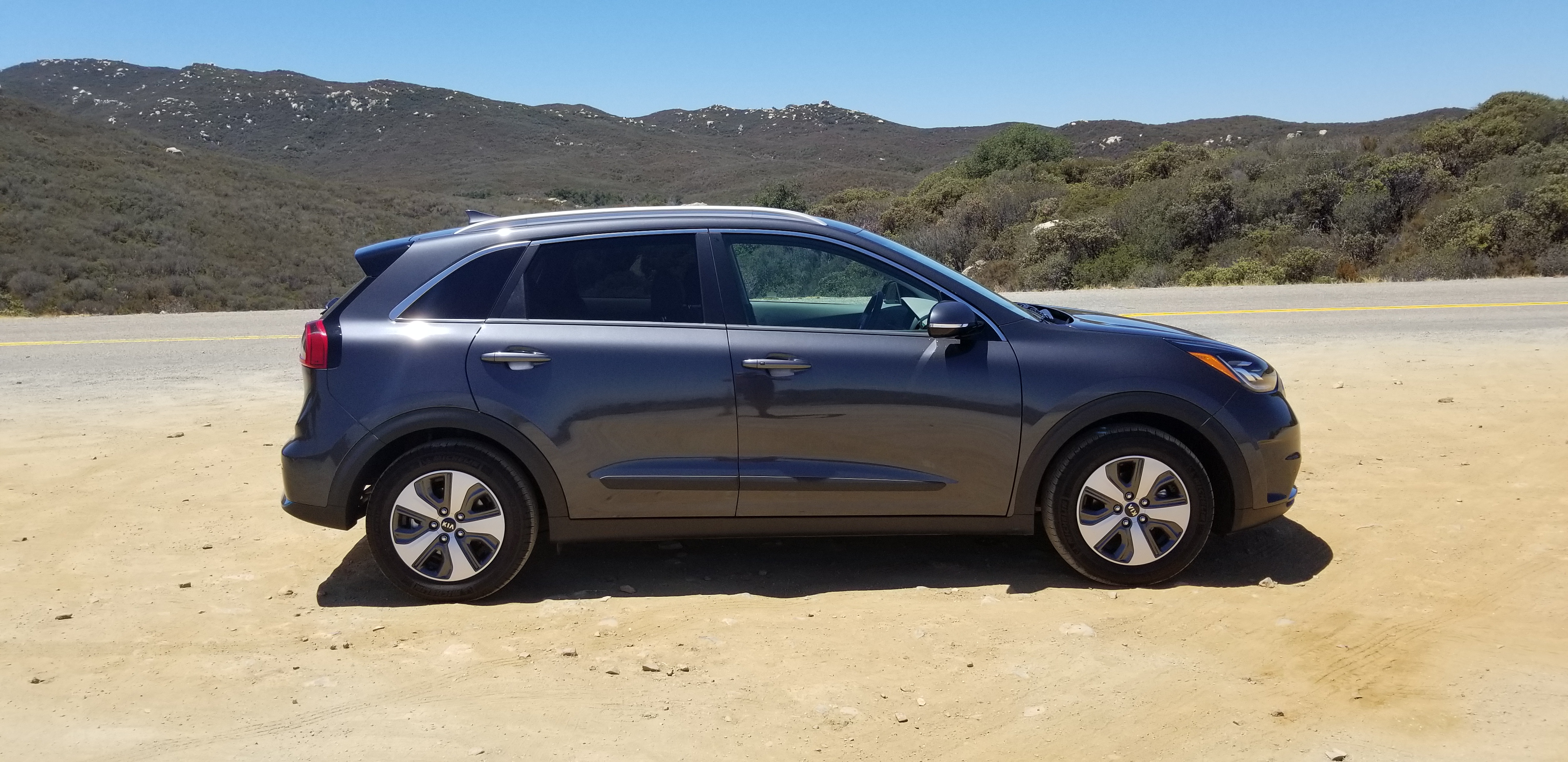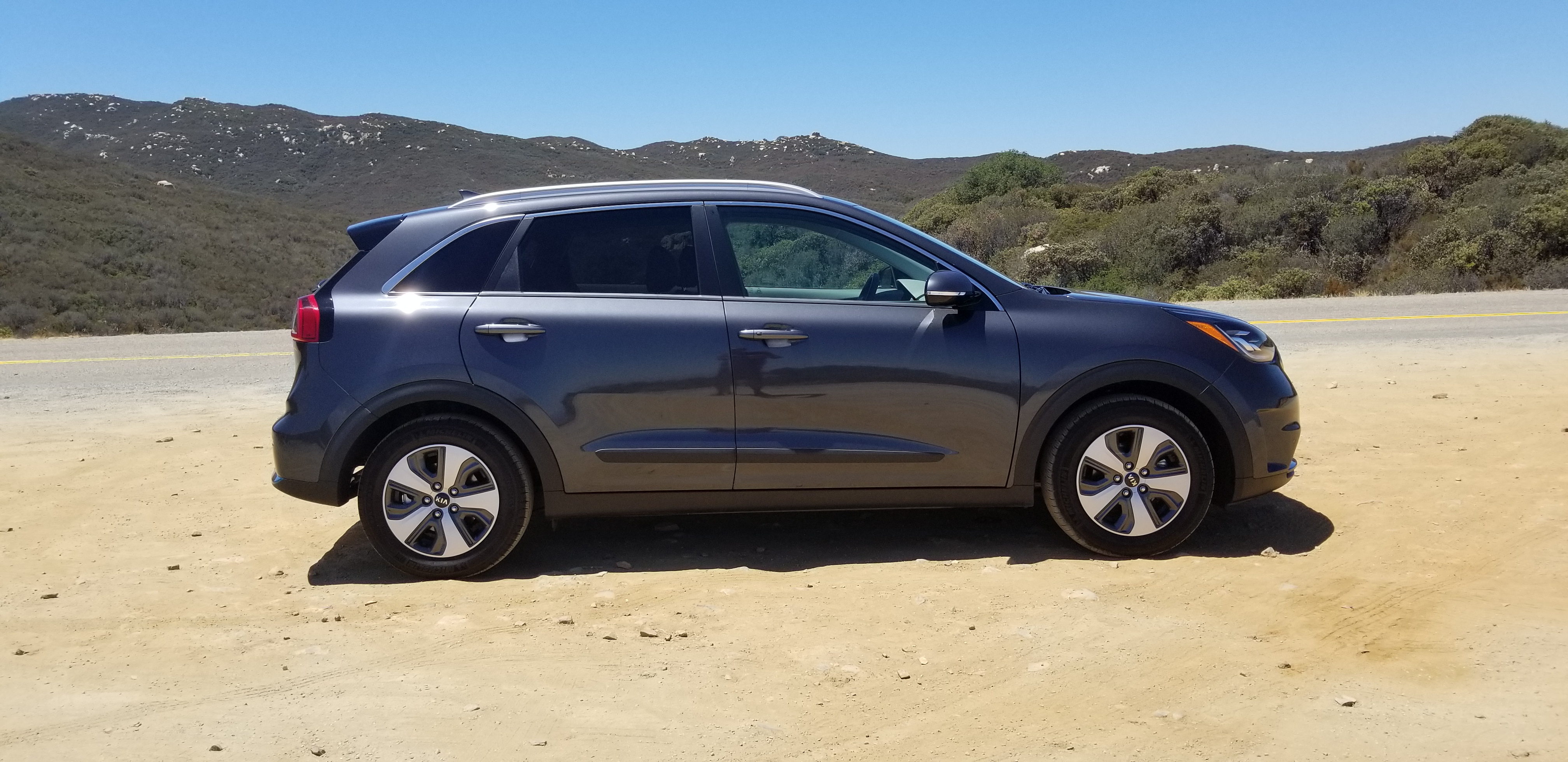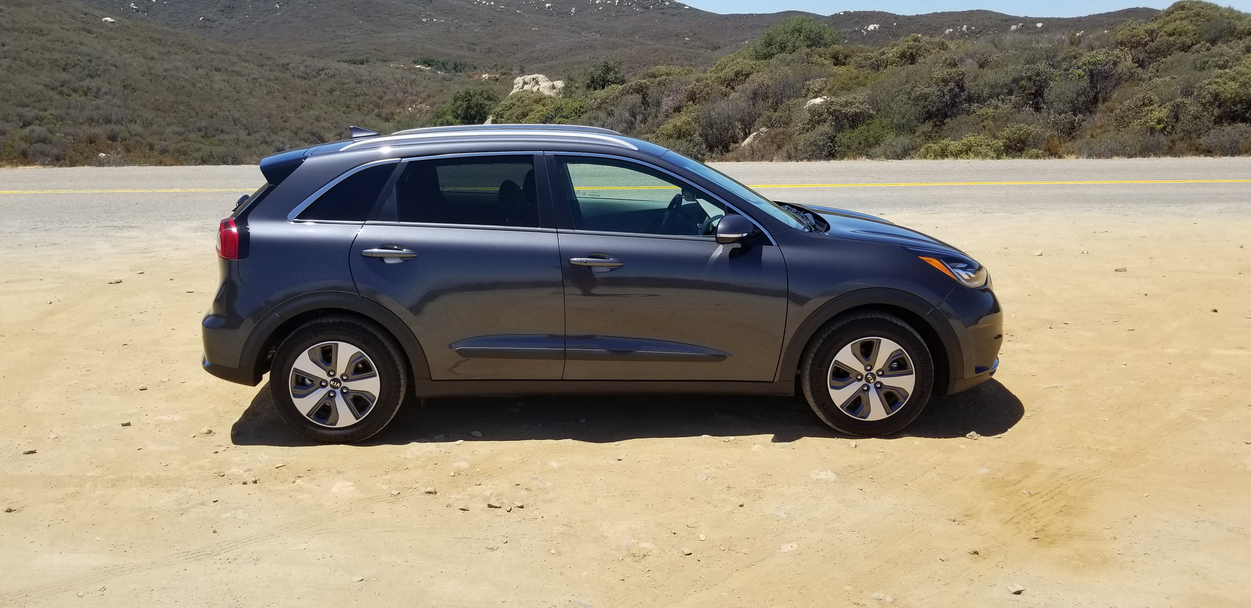 So I could try it out for myself here in this Kia Niro, and indeed, with a full charge and a full tank my range was well close to the 500 miles range, which is perfect in my opinion. Of course it shares a lot of the technology with the Hyundai Ioniq, and I have been really enthsiastic about that one already, but this is a different vehicle all together. It is not sleek and round like the Ioniq, it is functional and aesthetically more conservative, but also in its build it seems to have more substance, be built with better materials, thicker, more quiet. Perceived quality level is a lot higher to me. With the Ioniq I heard a lot of noise from the rear wheel wells, in the Kia Niro I did not have that issue at all.