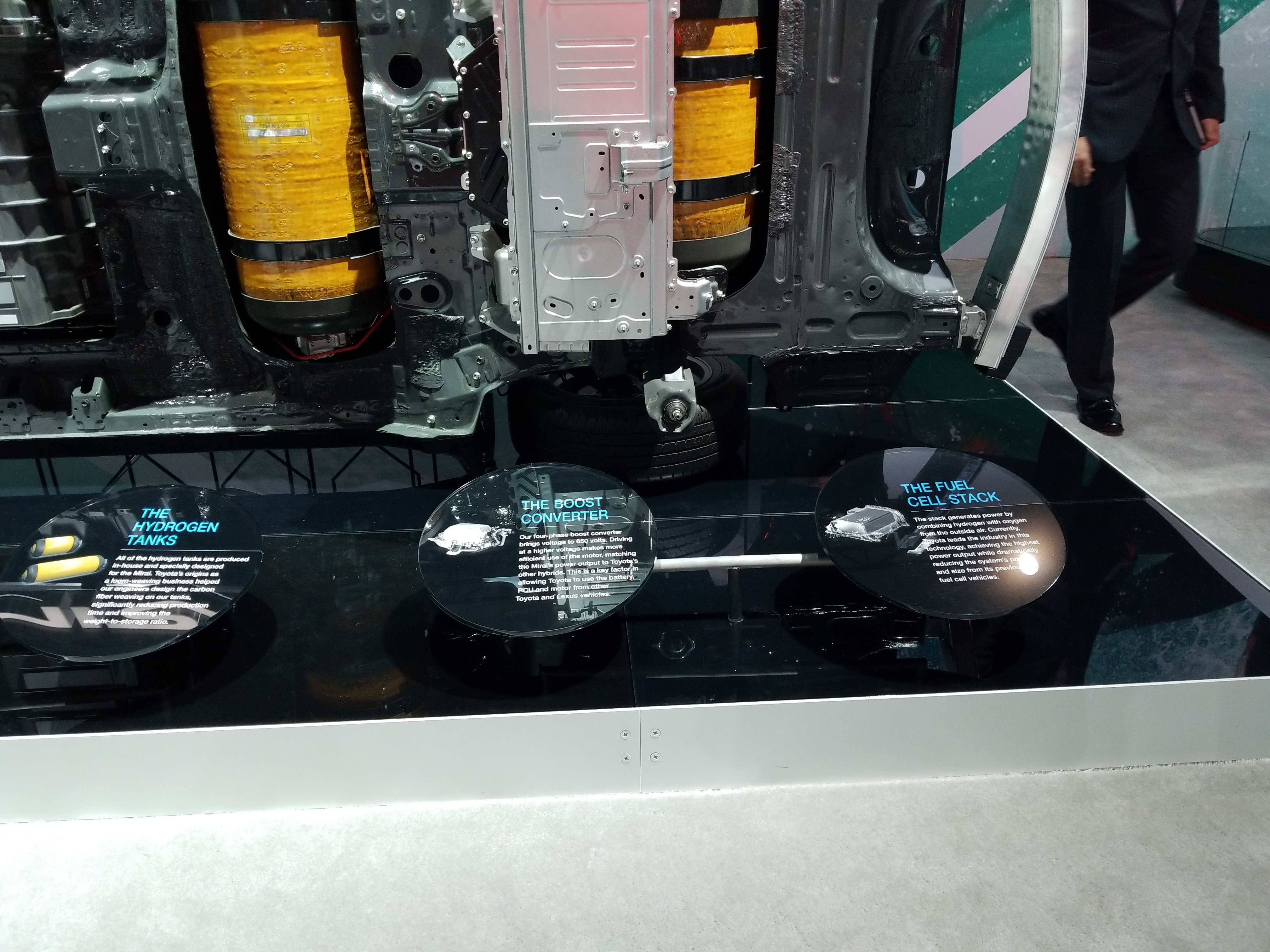 Since one of the arguments for the design was that the layout underneath possibly warranted the design to be rather tall and narrow, I also uploaded some images we took at the LA Auto Show of the underpinnings for the Toyota Mirai, just to give you a look at what is hidden underneath.