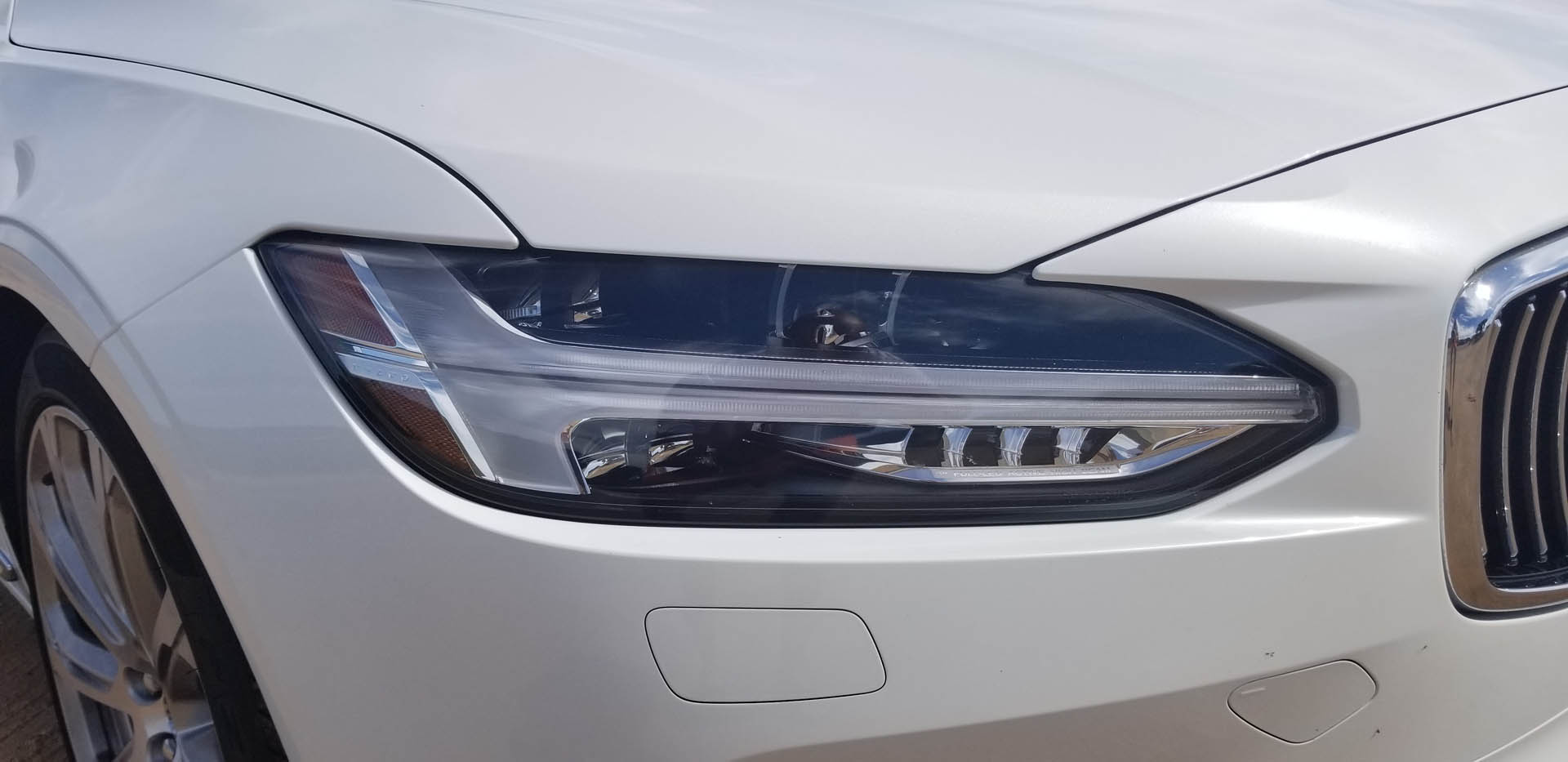 The body section is left very clean but very strong, with a beautiful, almost Jaguar like sculpture, timeless and sexy. The front lights are eye catching day and night. As the indicators during day time and as running lights during the darker hours, it is always really clear there is a Volvo approaching.., fast. The way the grille is tied in flush is a vast change from my old days too, but it does work well here, still very pronounces but impressively flush. Nothing fake there.