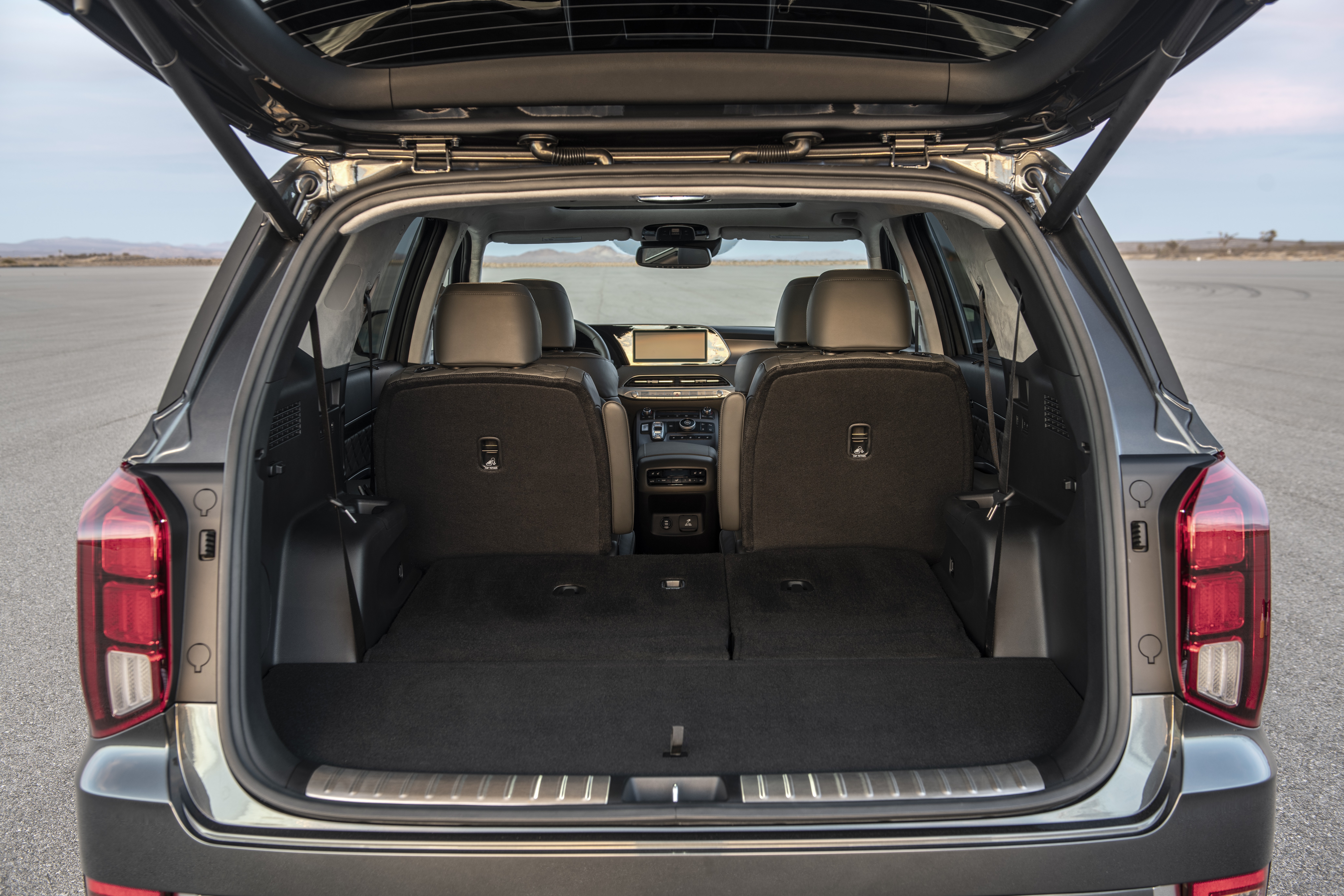 On the inside, Palisade has more interior first and second row legroom than Pilot, Pathfinder, and Explorer. It also has more cargo room behind the third row than Highlander, Pilot and Pathfinder. As an added convenience, Palisade offers a power liftgate to access the rear cargo area with ease, even when the driver may be carrying items that make it difficult to open the liftgate. The Palisade power liftgate lift height is also height adjustable, ensuring an easy reach to close the liftgate.