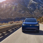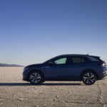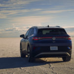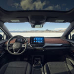 The ID.4 will available in six exterior colors—Glacier White Metallic, Mythos Black Metallic, Moonstone Grey, Scale Silver Metallic, Blue Dusk Metallic and King’s Red Metallic. All models come with a body color roof and black roof rails as standard. AWD models add a tow hitch and towing capacity of 2,700 lbs with a braked trailer, while Pro S models add a panoramic fixed-glass roof and power-folding side mirrors with diamond-pattern puddle lamp signature. Pro S models, when outfitted with the Gradient Package, and 1st Edition ID.4 models upgrade to a black roof and rear spoiler, while the C-pillars, roof line, roof rails, and accents shine in bright silver. The limited 1st Edition models also feature unique badging, black mirror caps, and a tow hitch with towing capacity of 2,200 lbs with a braked trailer; when painted in Glacier White Metallic, the matte black moldings are replaced with slate grey elements.