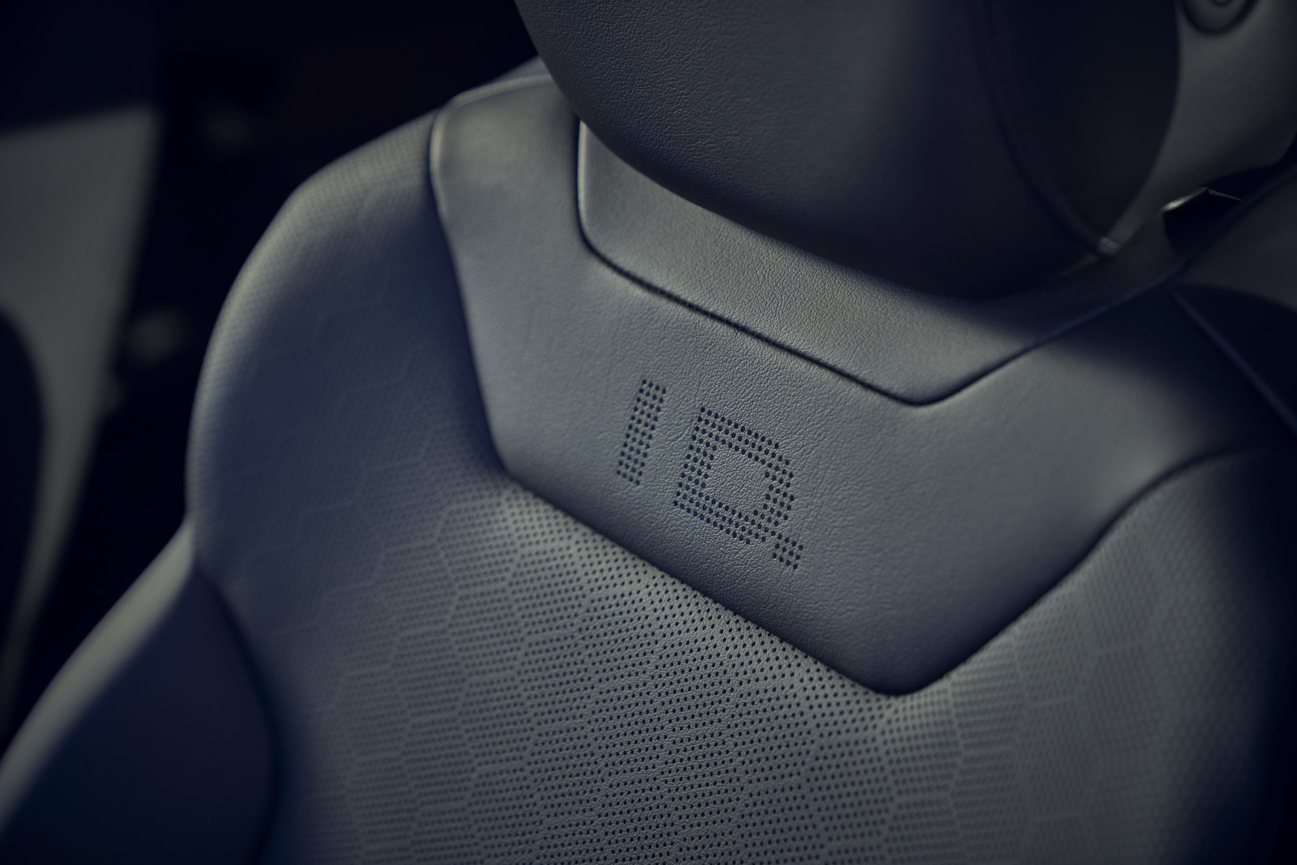 The steering wheel, steering column, and the housings for the display and control panels in the doors are finished in Black on Pro and Pro S models. These are finished in Electric White on 1st Edition models. Seats in the ID.4 are finished in black cloth on Pro models and Lunar Gray or Galaxy Black leatherette on Pro S and 1st Edition models. Leatherette seats are perforated for added comfort and feature a hexagonal pattern.