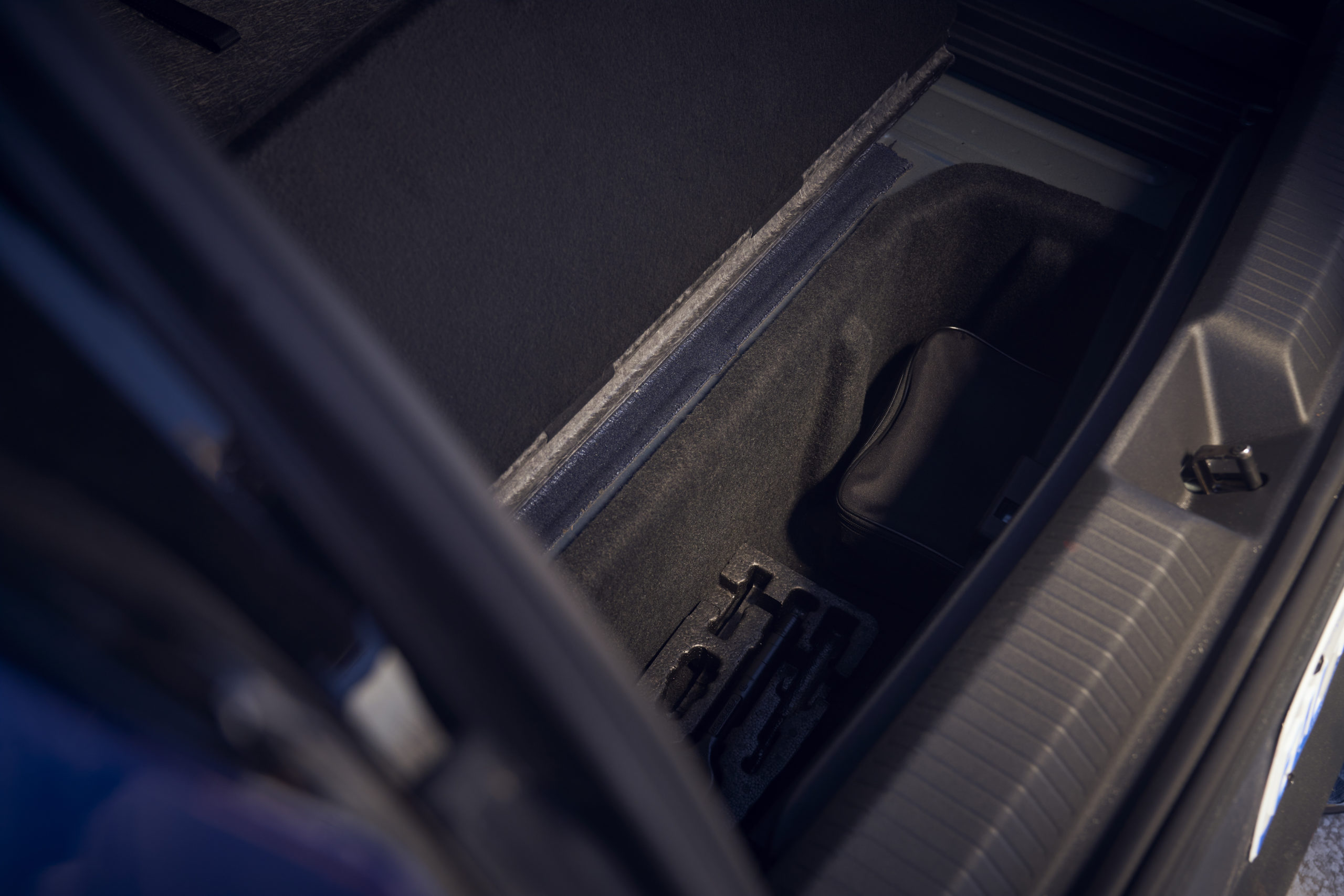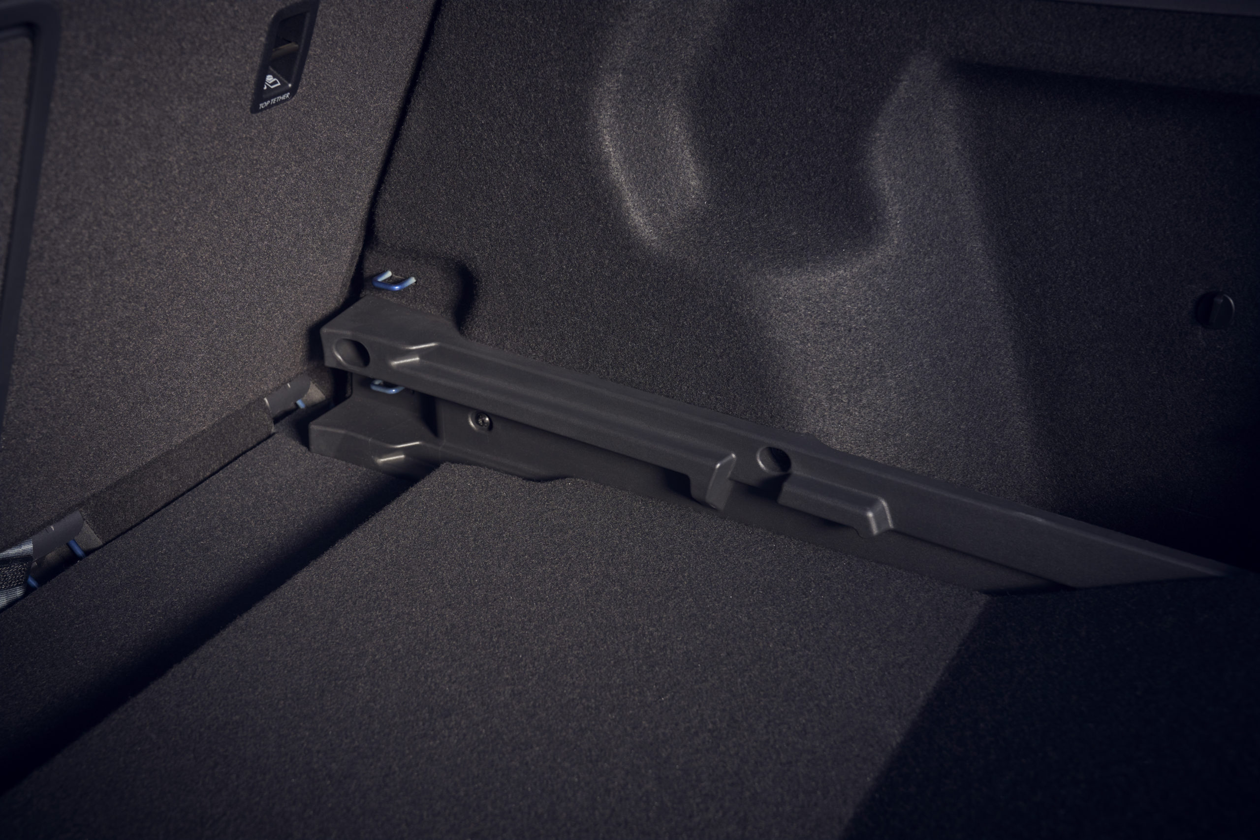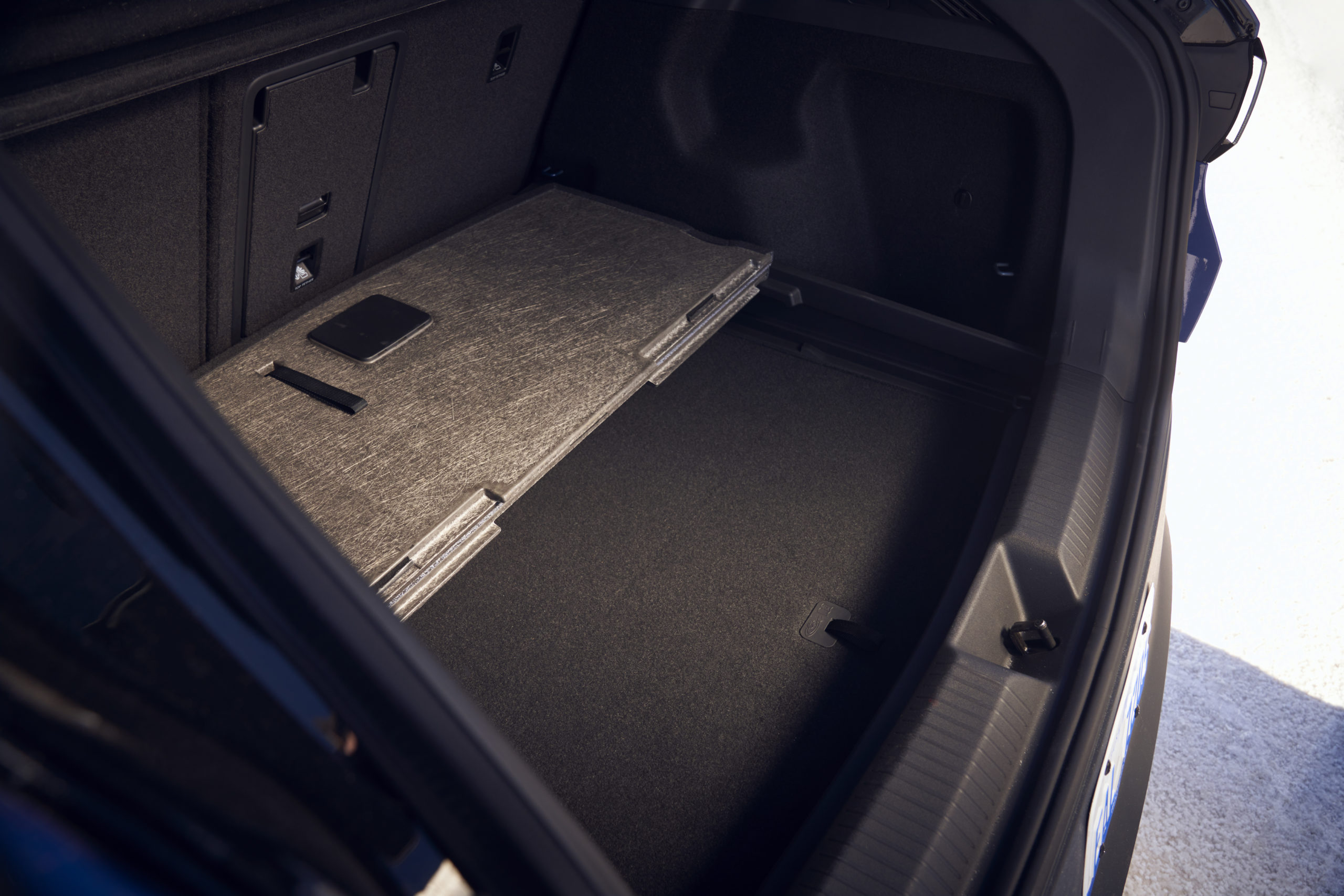 ID.4 features plenty of storage options and ways to make using them easy. In addition to the configurable center console, all models feature spacious stowage areas in the doors, and each door has a bottle holder. Pro S models feature cell phone pockets in the backs of the front seats for rear seat passengers as well as a center armrest with two more cupholders, for a total of eight pre-configured beverage holders. All ID.4 models feature a below-floor storage compartment in the cargo hold, where owners can store the household charging cord and other small items. Pro S models add three cargo-area features: an adjustable trunk floor, a power tailgate with Easy Open & Close, and a ski pass-through. The first allows for a flat load floor with rear-seats down, but can be repositioned a few inches down to allow for larger items, and the second opens and closes the tailgate with a simple foot movement when the key is on the operator, to allow easy access when hands are full. A button in the cockpit allows the driver to open and close the tailgate from inside the vehicle.