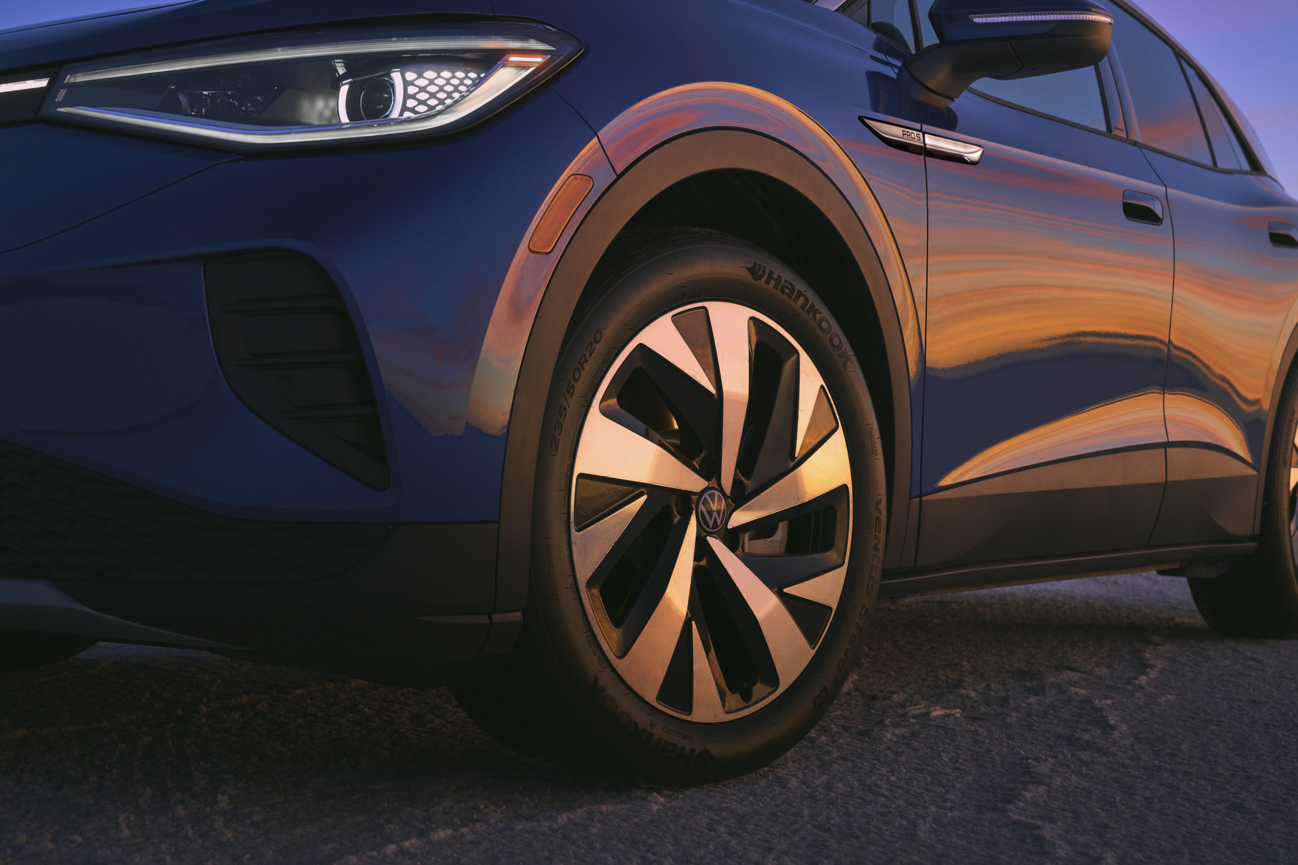A combination of brake types is used on ID.4. It features disc brakes on the front wheels and drums at the rear—the difference being specific to electric vehicle needs. As EVs rely on regenerative braking, disc brakes on the rear can be less effective than drums after long periods of not being put to heavy use. The discs on the front of the ID.4 models are 13.4 inches in diameter on rear-wheel-drive models and 14.1 inches on AWD models.