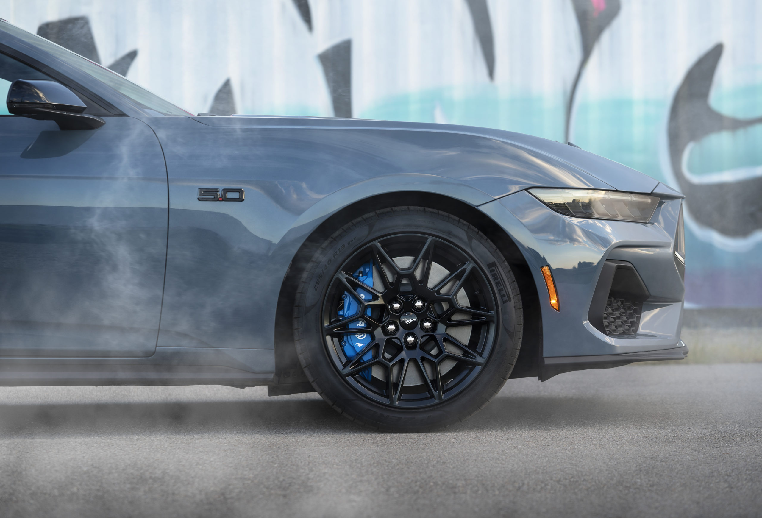 The all-new Mustang launches with 11 exterior color options including two new shades, Vapor Blue and Yellow Splash, complemented by new stripe colors and designs. Customers also can choose from three Brembo brake caliper color options: Black, Red and Grabber Blue, plus an all-new lineup of alloy wheels, ranging from 17-inch standard size on base models to 19-inch for GT with optional 20-inch alloy wheels.