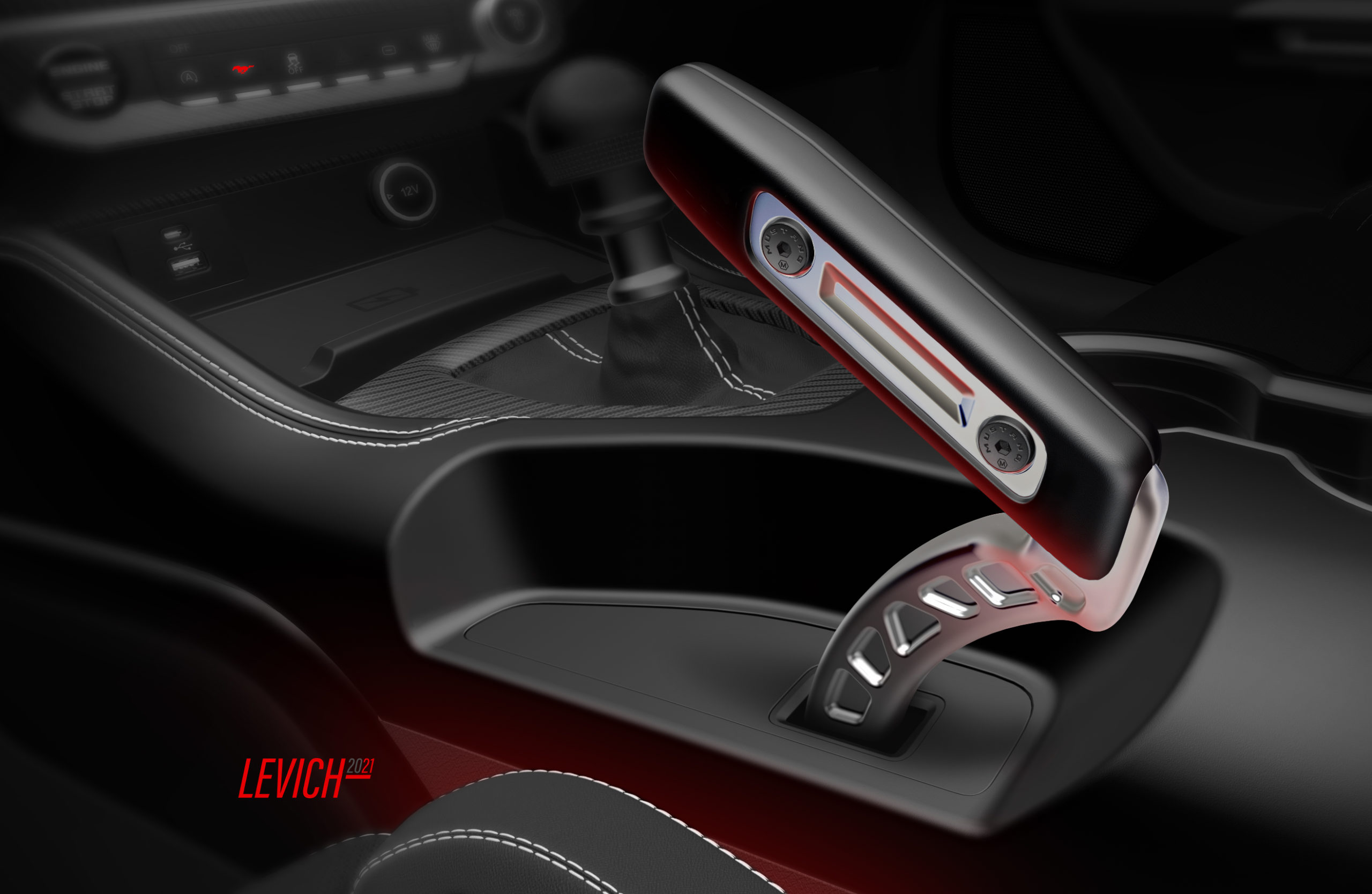 A segment-first electronic drift brake takes new technology to the racetrack, unlocking the rear-wheel-drive drifting capability of Mustang with the visual appeal and functionality of a traditional, mechanical hand brake. The Performance Electronic Parking Brake comes standard with the Performance Pack on all Mustang models, engineered for novice drivers to learn and improve their drift skills while also providing expert drivers with a competition-ready system.