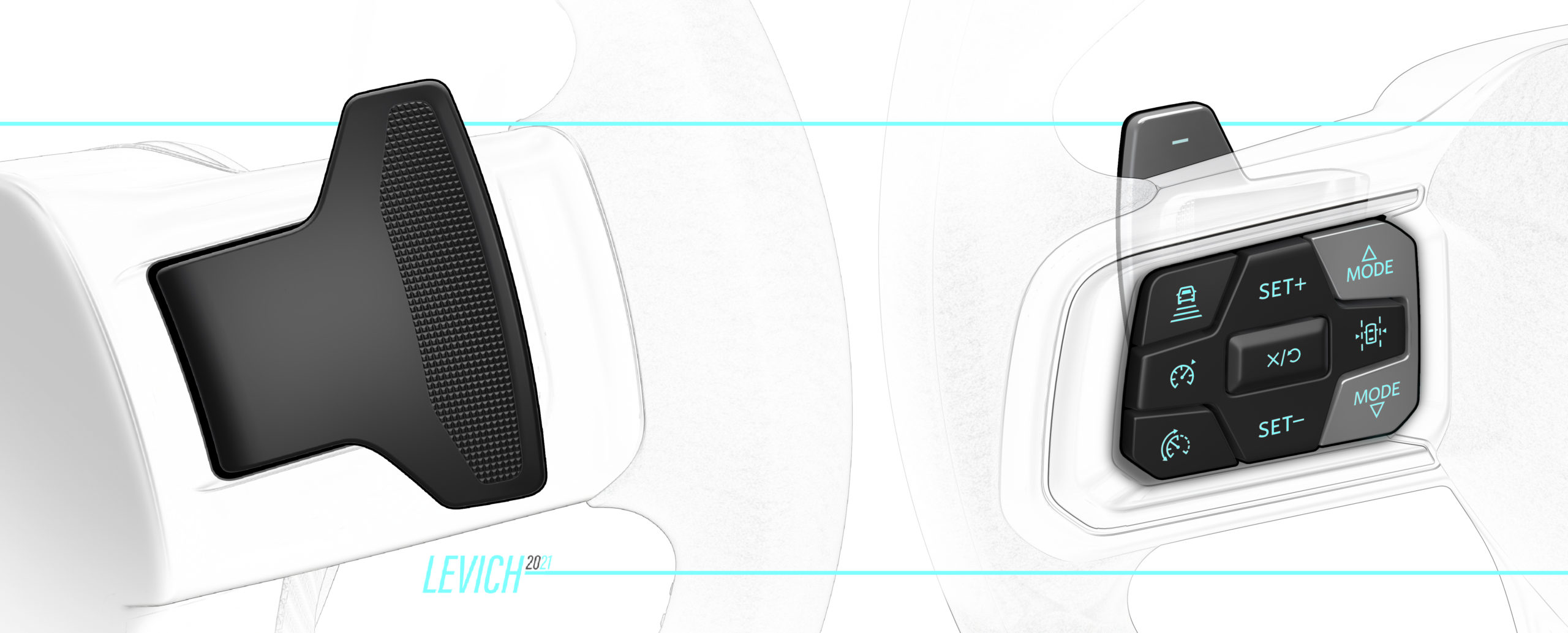 When choosing personalized drive mode settings, the car’s current setup is displayed on the center stack as real-time graphical renderings. Settings can be adjusted by simply swiping the graphic to rotate the car virtually in true gamified style.