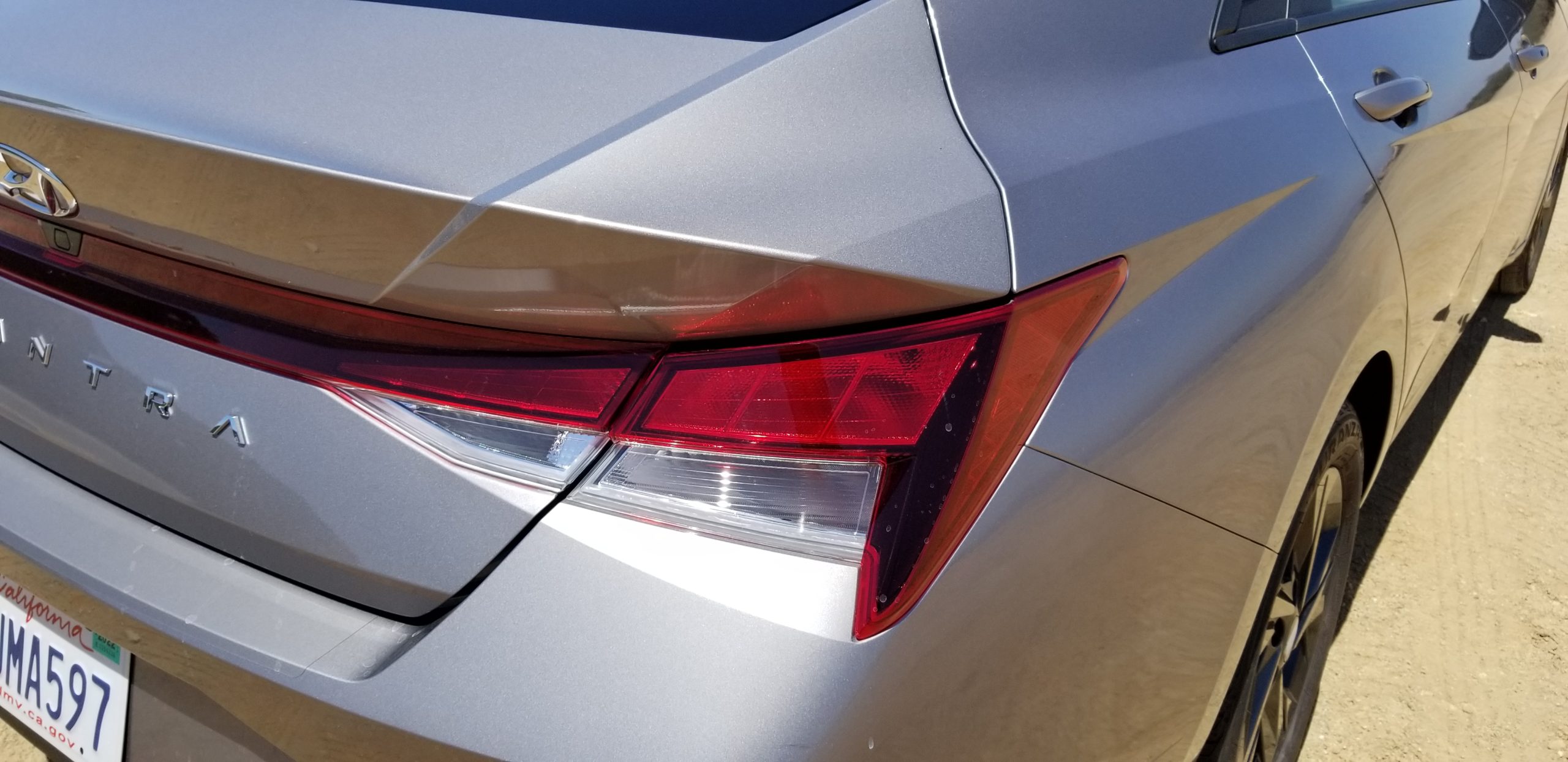 Moving to the side of the vehicle, you’ll notice the sharp character lines that run along the body, giving the Elantra a sense of dynamism and flow. The rear of the car is just as striking as the front, with a sculpted bumper and taillights that wrap around the sides of the vehicle.