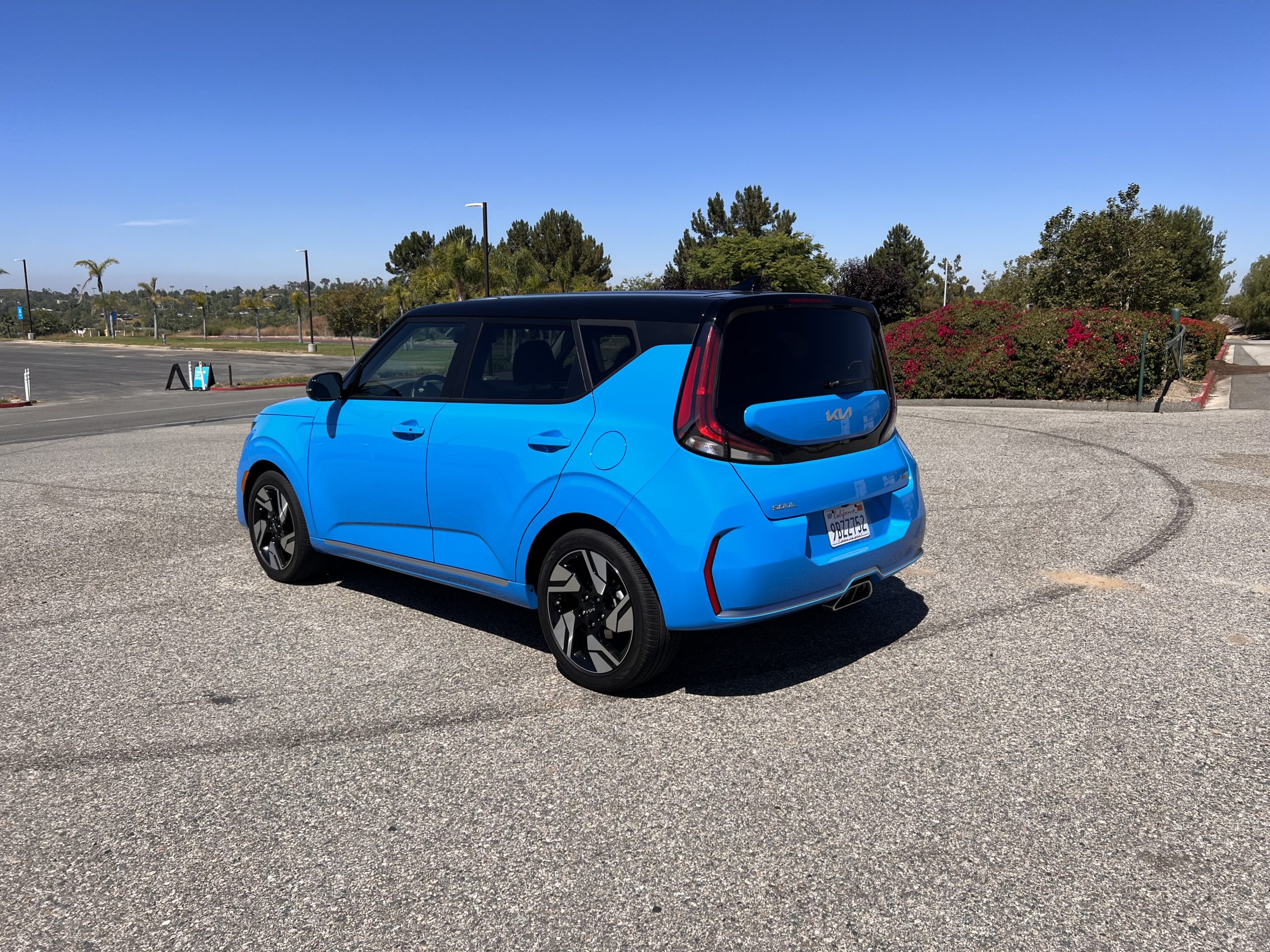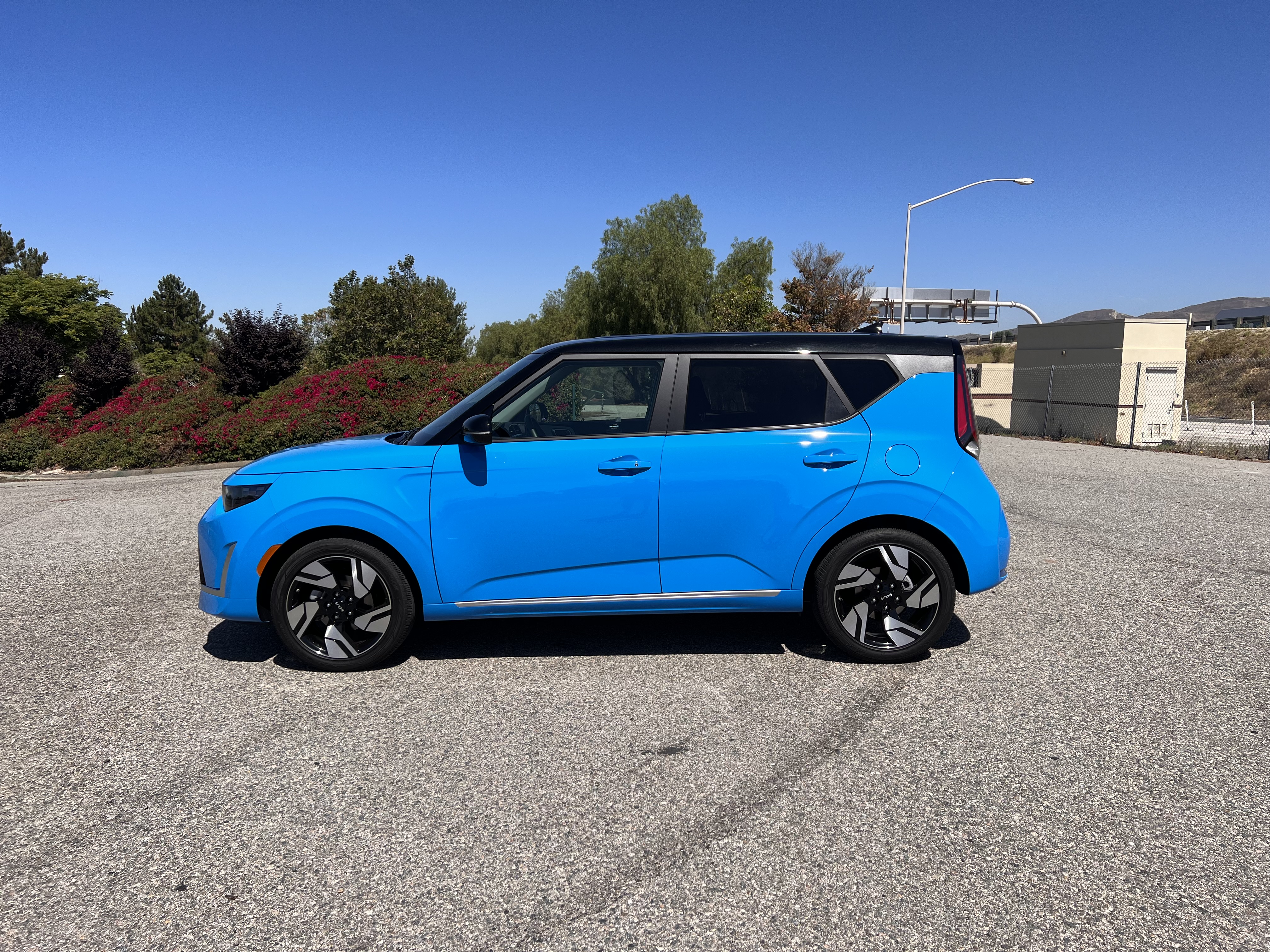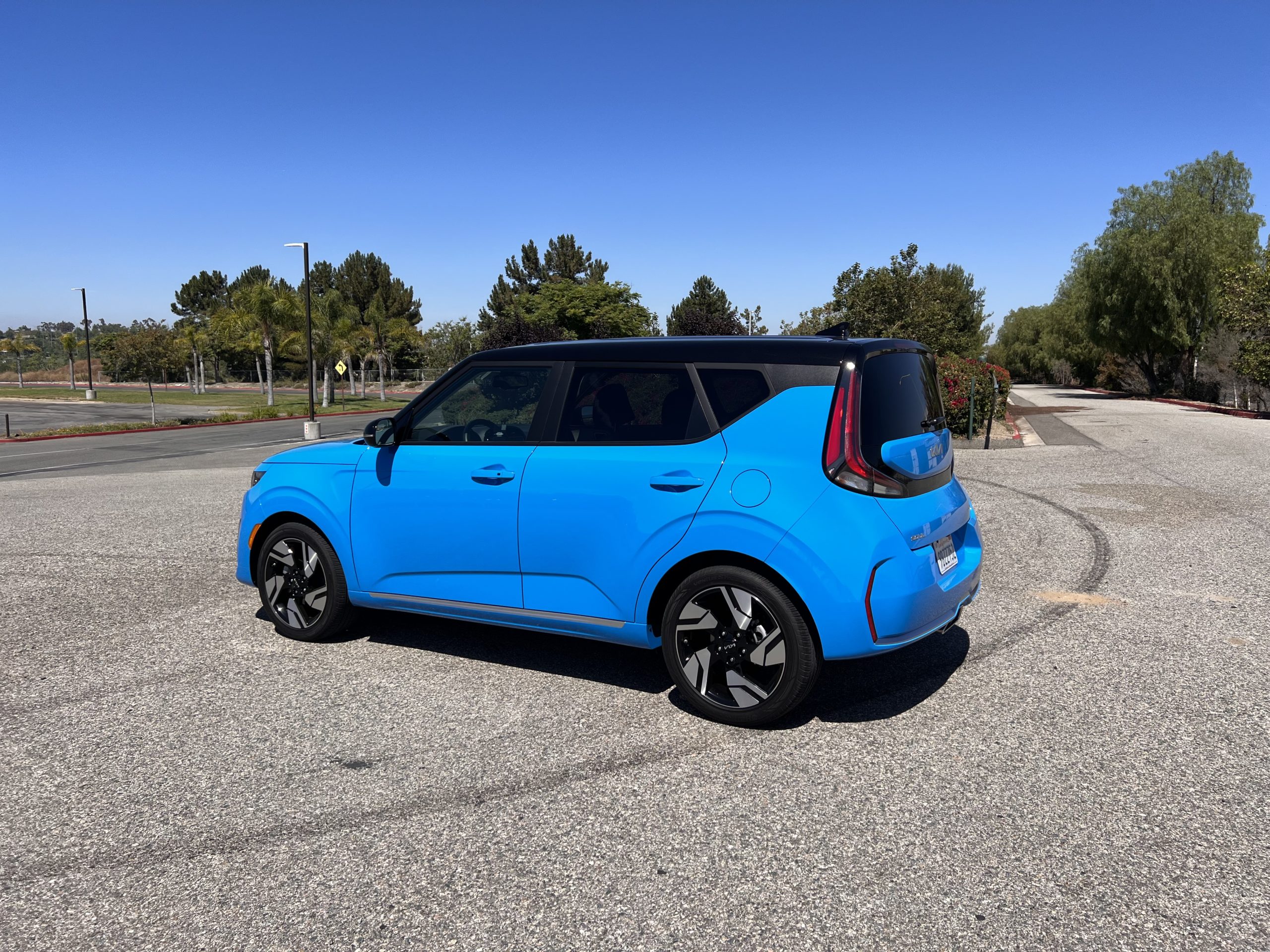 The side profile remains unmistakable with its sharp lines and bold character creases. The pronounced wheel arches and alloy wheel designs contribute to a sense of stability and urban ruggedness. The contrasting roof options allow for personalization, enhancing the Soul’s already dynamic visual appeal.