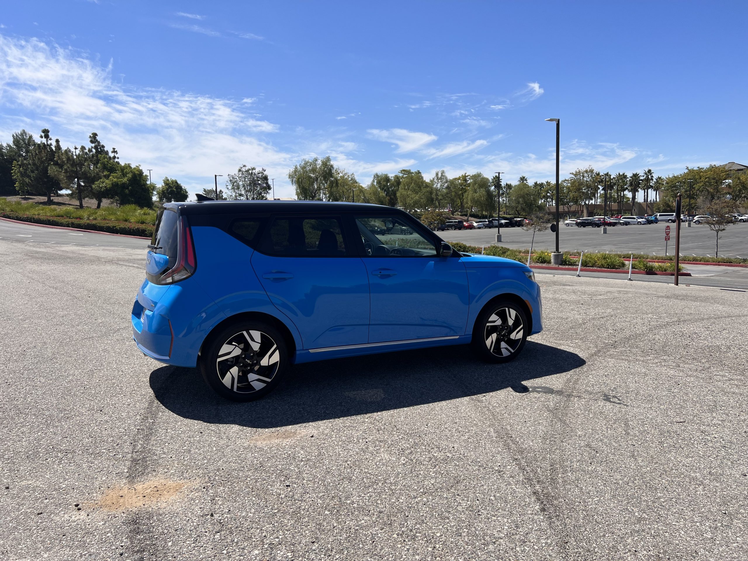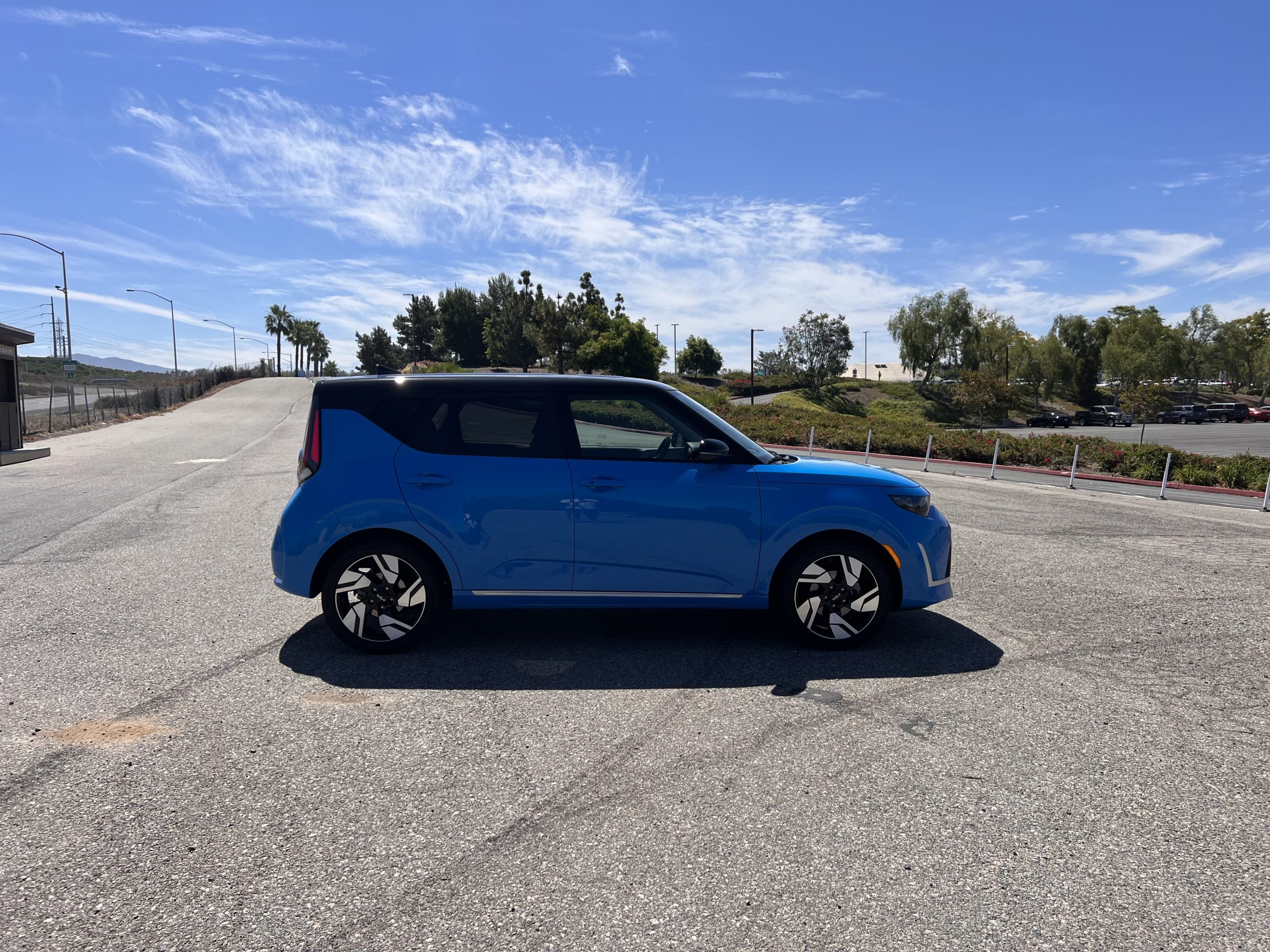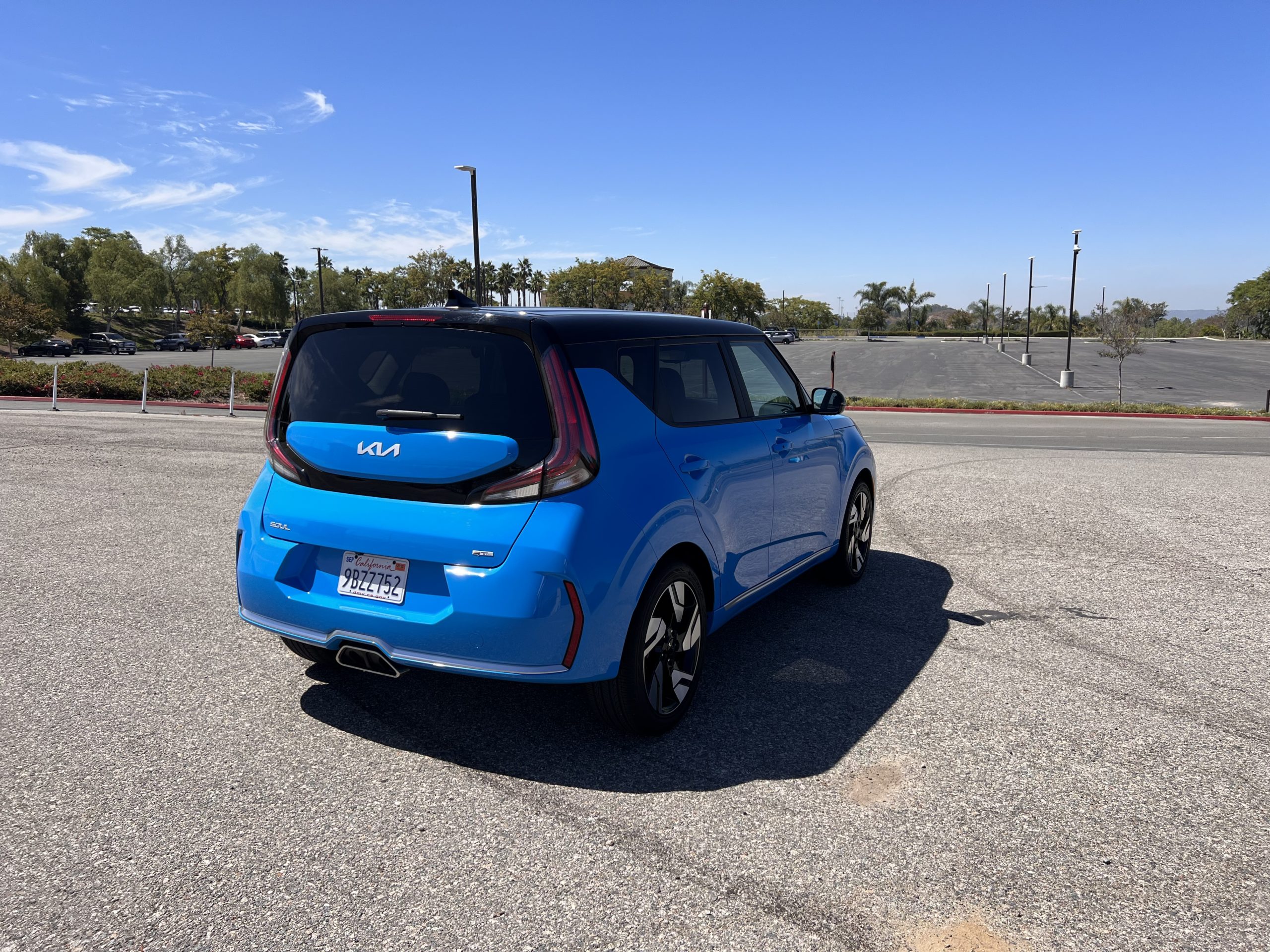 The side profile remains unmistakable with its sharp lines and bold character creases. The pronounced wheel arches and alloy wheel designs contribute to a sense of stability and urban ruggedness. The contrasting roof options allow for personalization, enhancing the Soul’s already dynamic visual appeal.