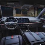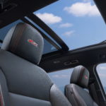 - Distinctive interior cues including a three-spoke, flat-bottom steering wheel, headrest detailing and a Jet Black theme with red accents