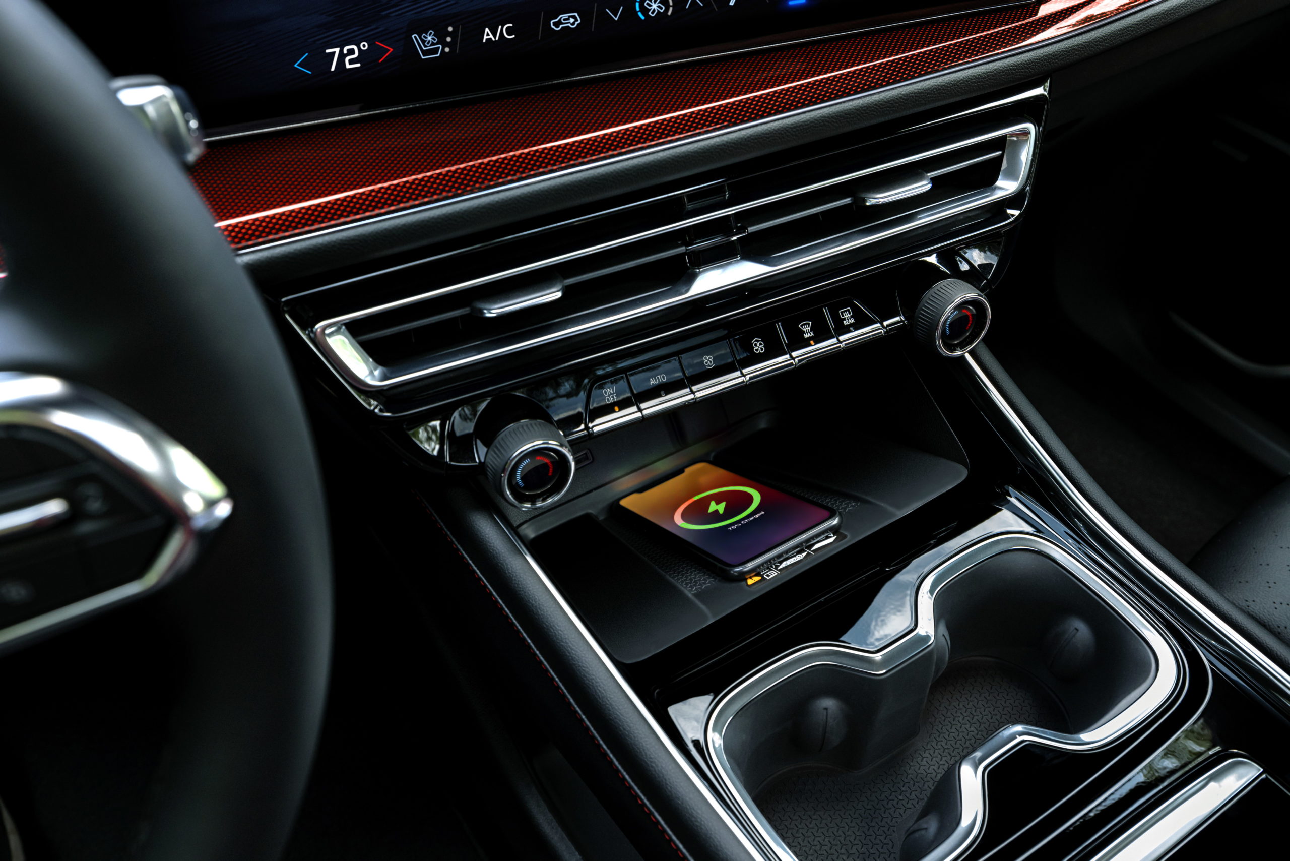 Display screens are the centerpiece of the cabin, starting with the best-in-class standard 17.7-inch-diagonal color touchscreen3. It’s more than two times larger than the largest available screen in the previous model and is the gateway to the Traverse’s connectivity. Wireless phone charging5 and Wi-Fi Hotspot4 are also available, and six USB ports6 are standard.