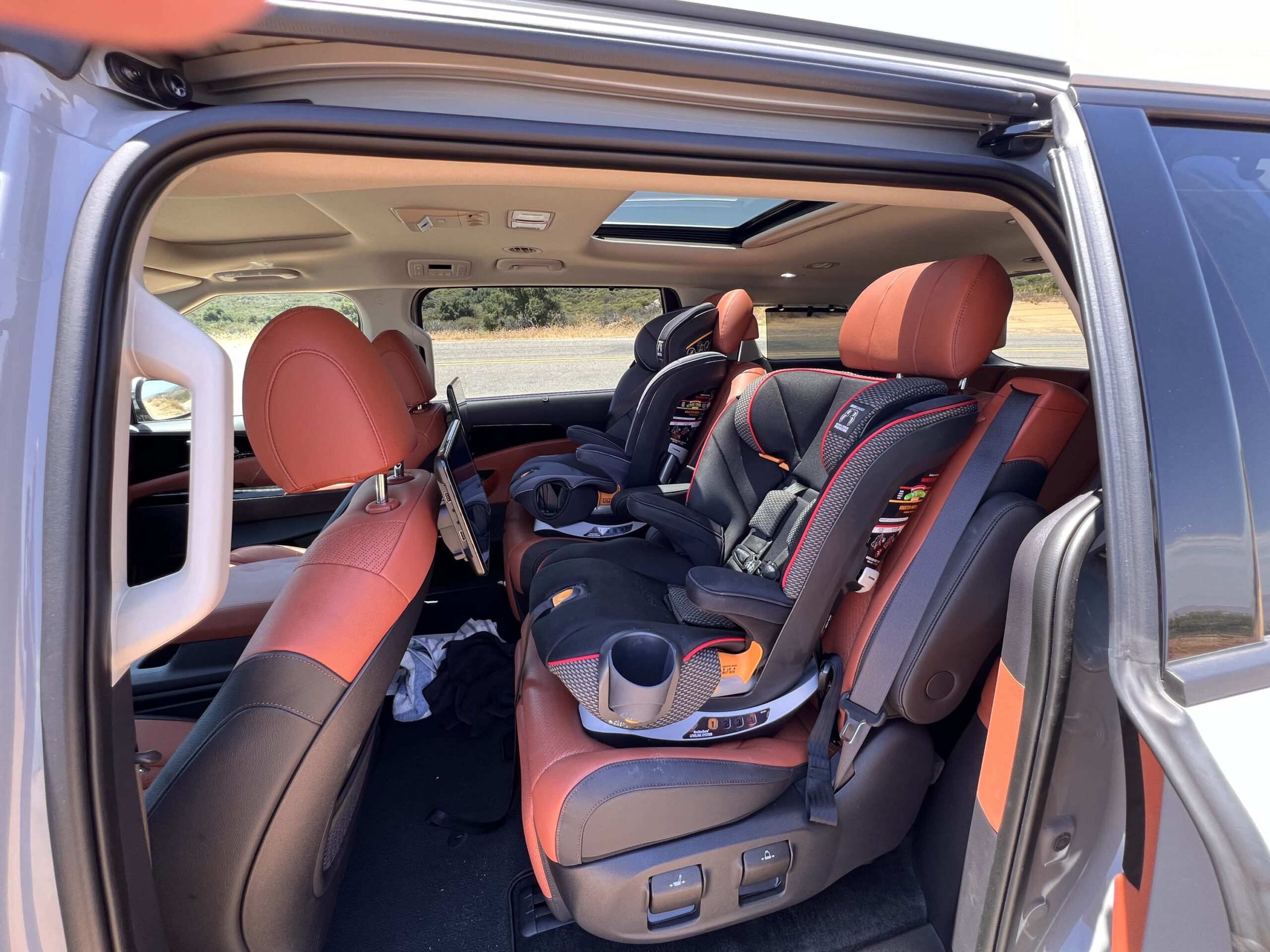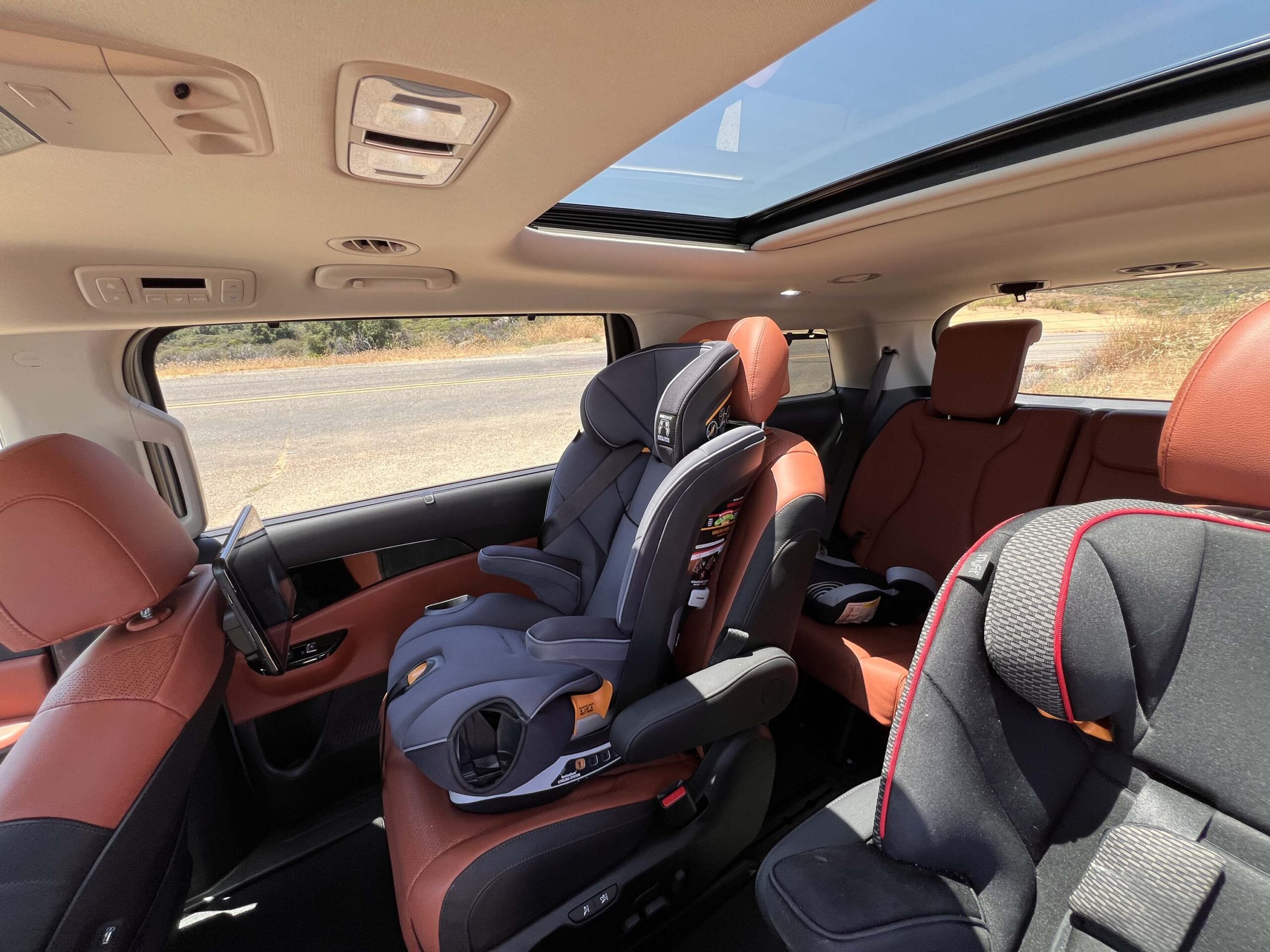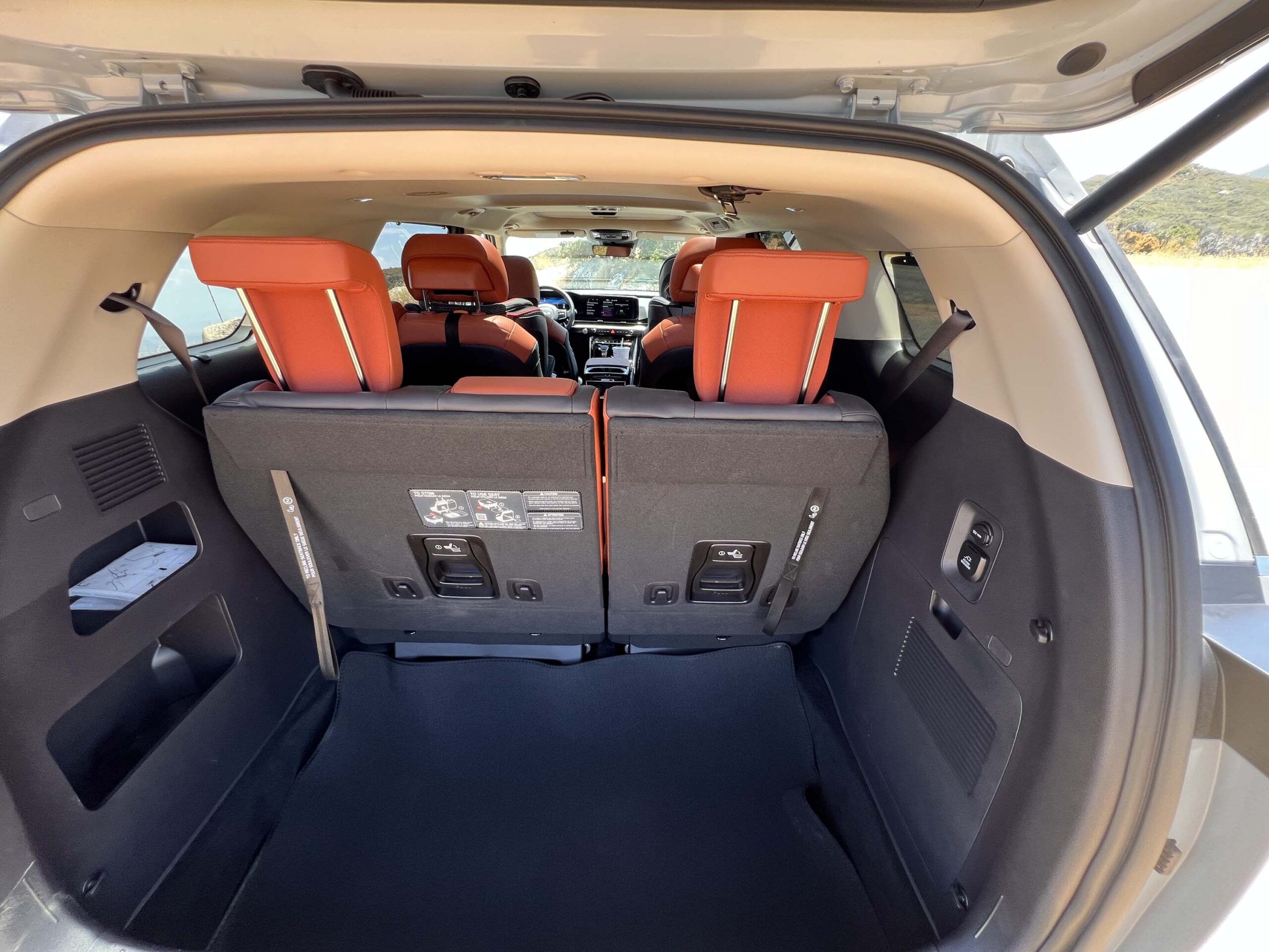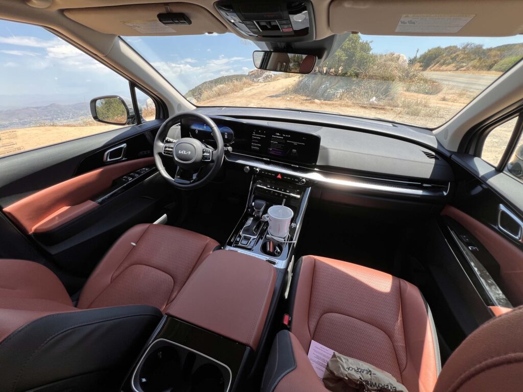 Coming from driving the Kia EV9 Land as well as the Kia Sorento most recently, it was interesting to be able to drive this 2024 Kia Carnival SX Prestige and compare them directly. Obviously the Carnival has the most interior space since it doesn’t have under floor batteries which limit the interior height, especially in the trunk area. It is also substantially larger than the Sorento, although, having said that, the Sorento did surprise us with what it could all carry with apparent ease!