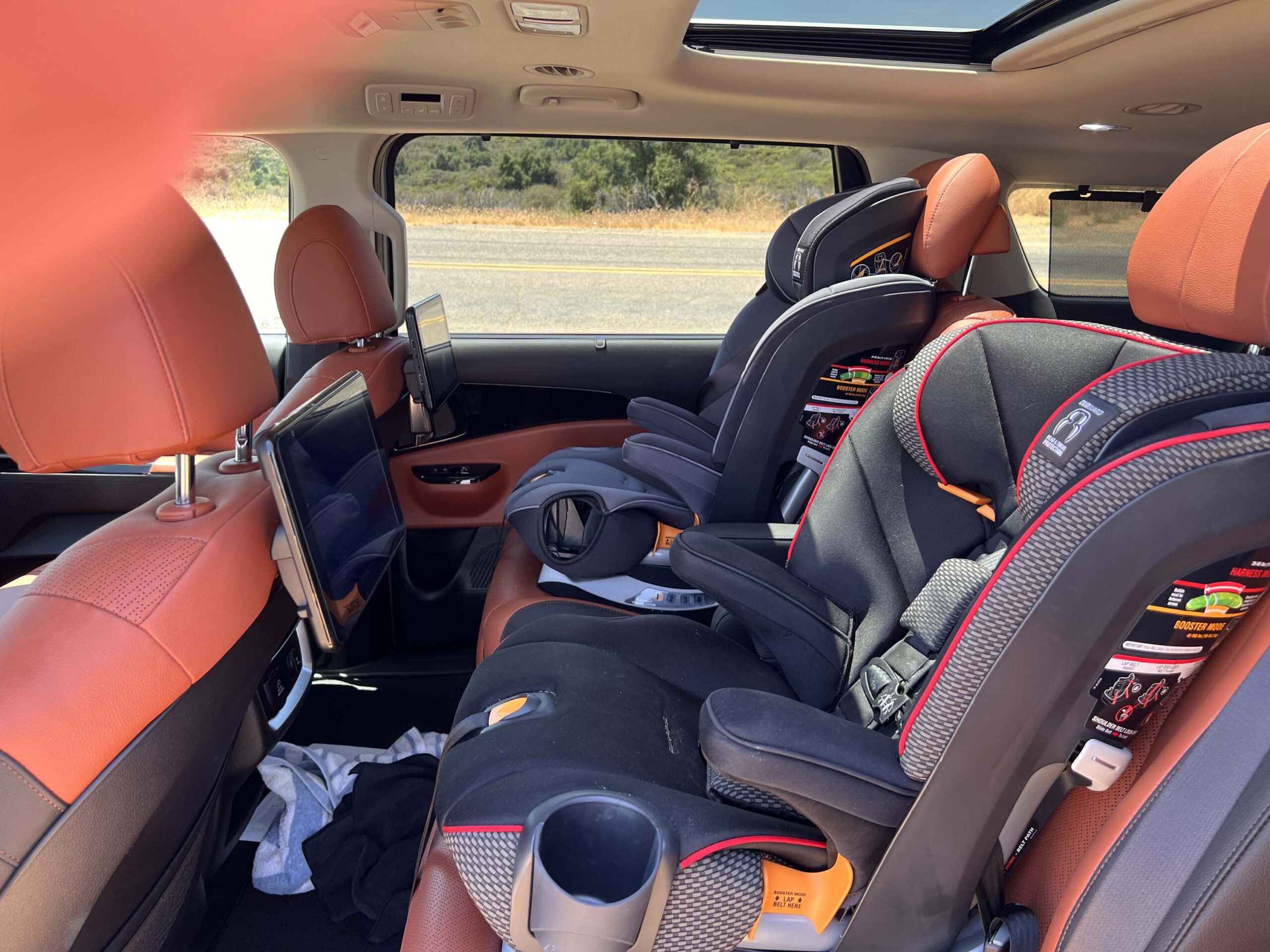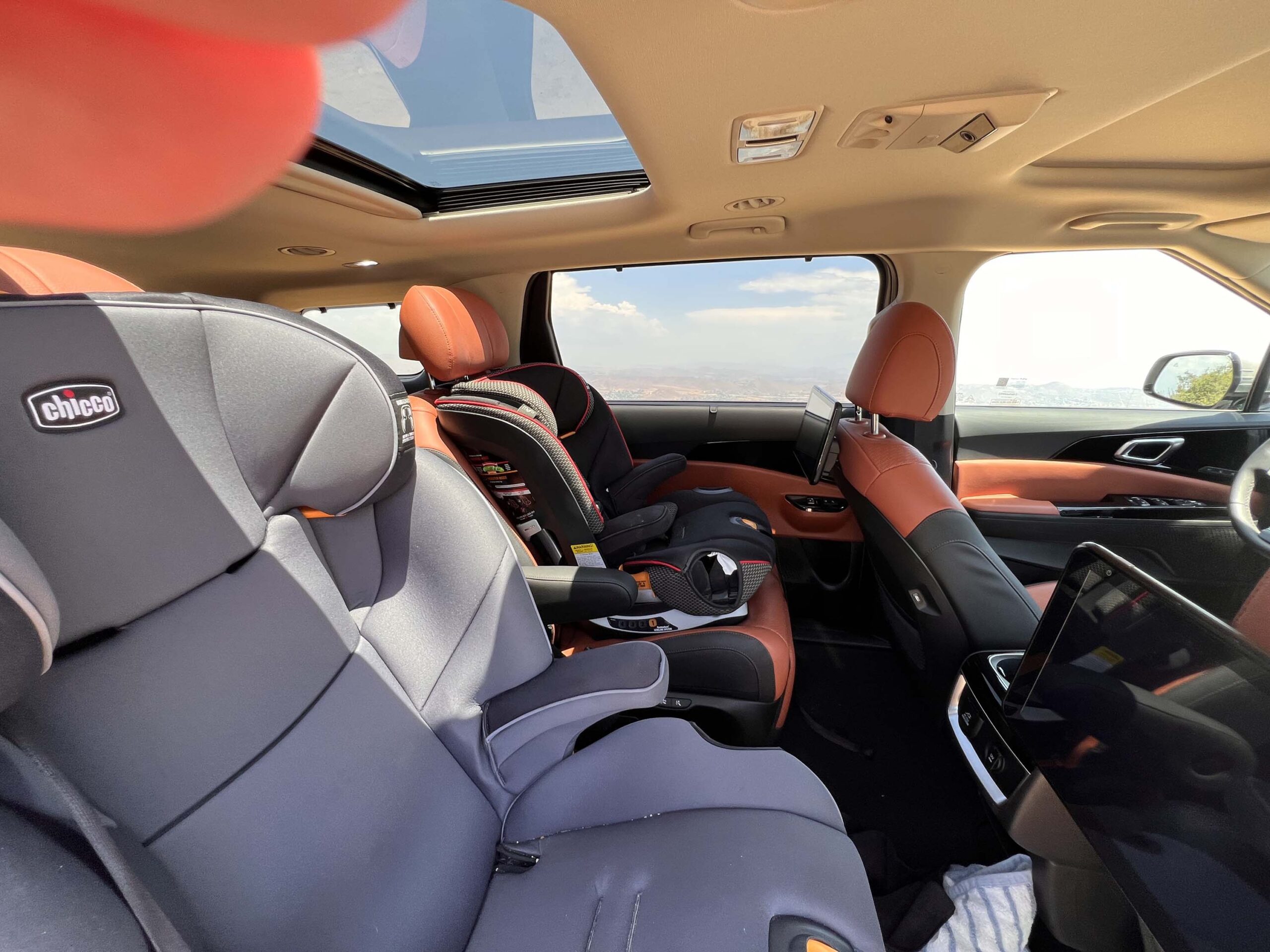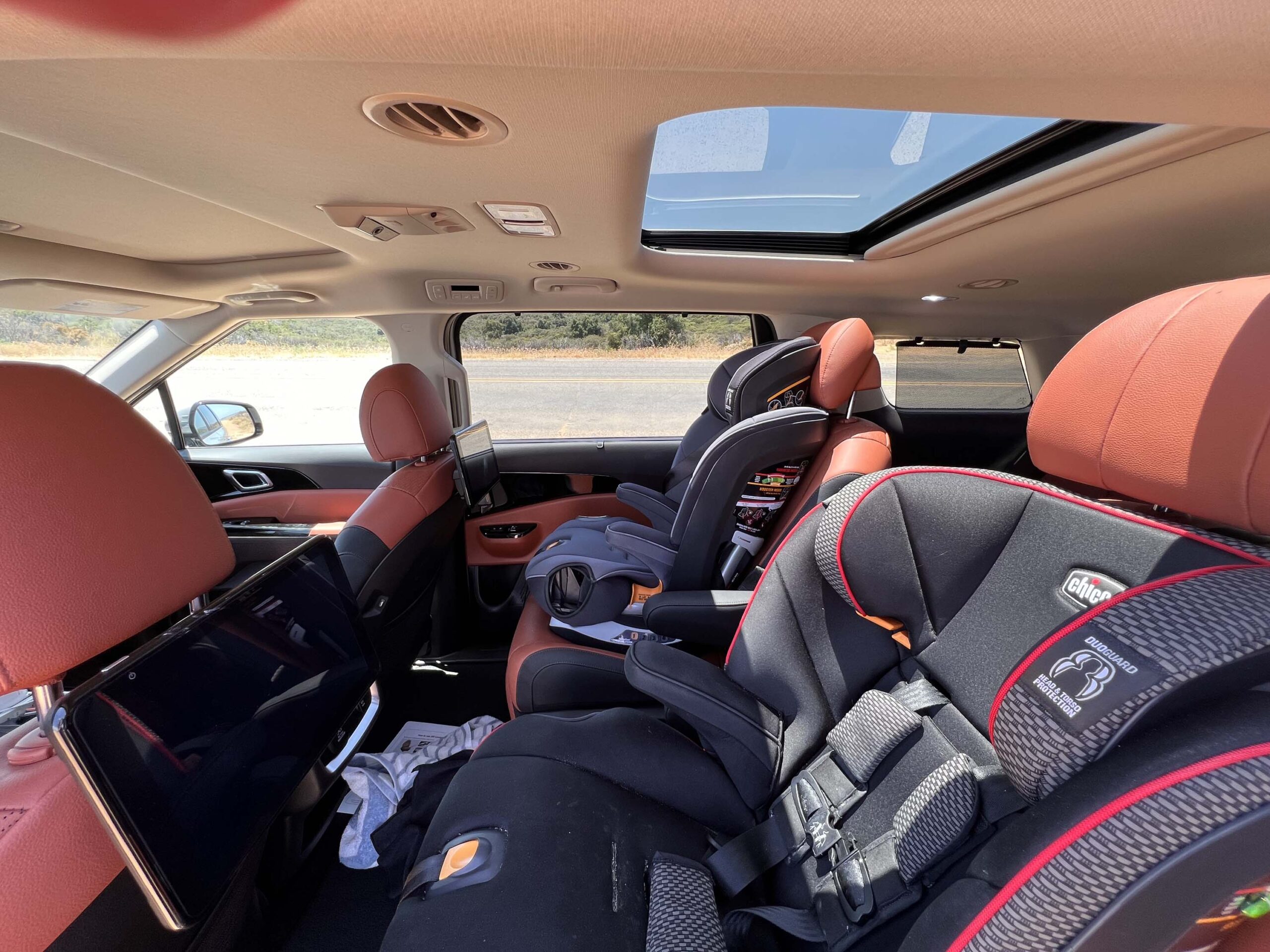 Coming from driving the Kia EV9 Land as well as the Kia Sorento most recently, it was interesting to be able to drive this 2024 Kia Carnival SX Prestige and compare them directly. Obviously the Carnival has the most interior space since it doesn’t have under floor batteries which limit the interior height, especially in the trunk area. It is also substantially larger than the Sorento, although, having said that, the Sorento did surprise us with what it could all carry with apparent ease!