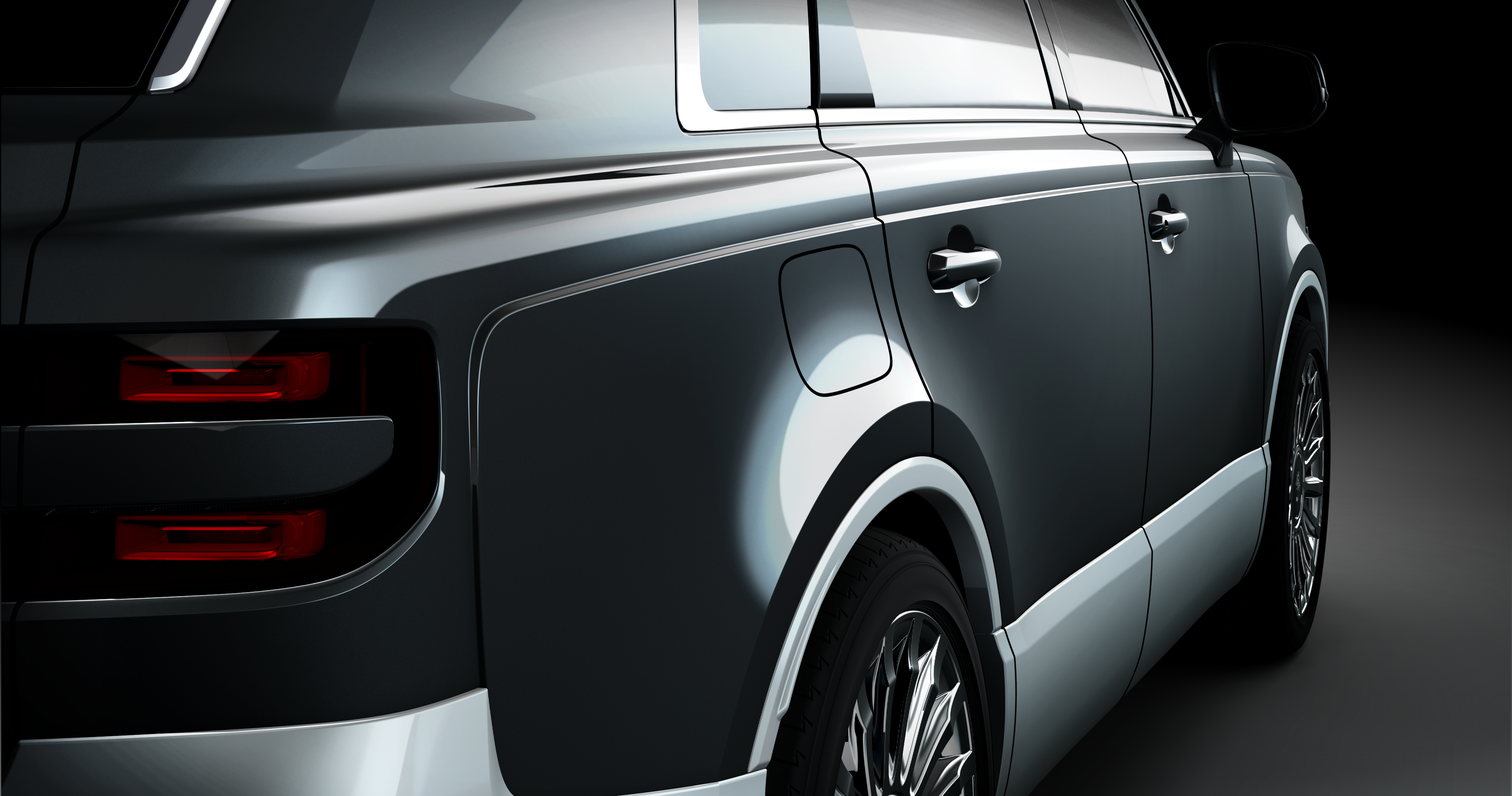 Characteristic chauffeur-driven car proportions, with a center of gravity at the rear, combined with an outline inspired by a loom shuttle motif, with kichomen*2 chamfering delineating generously sized, smooth-flowing door panels, to give expression to the unique Century worldview.